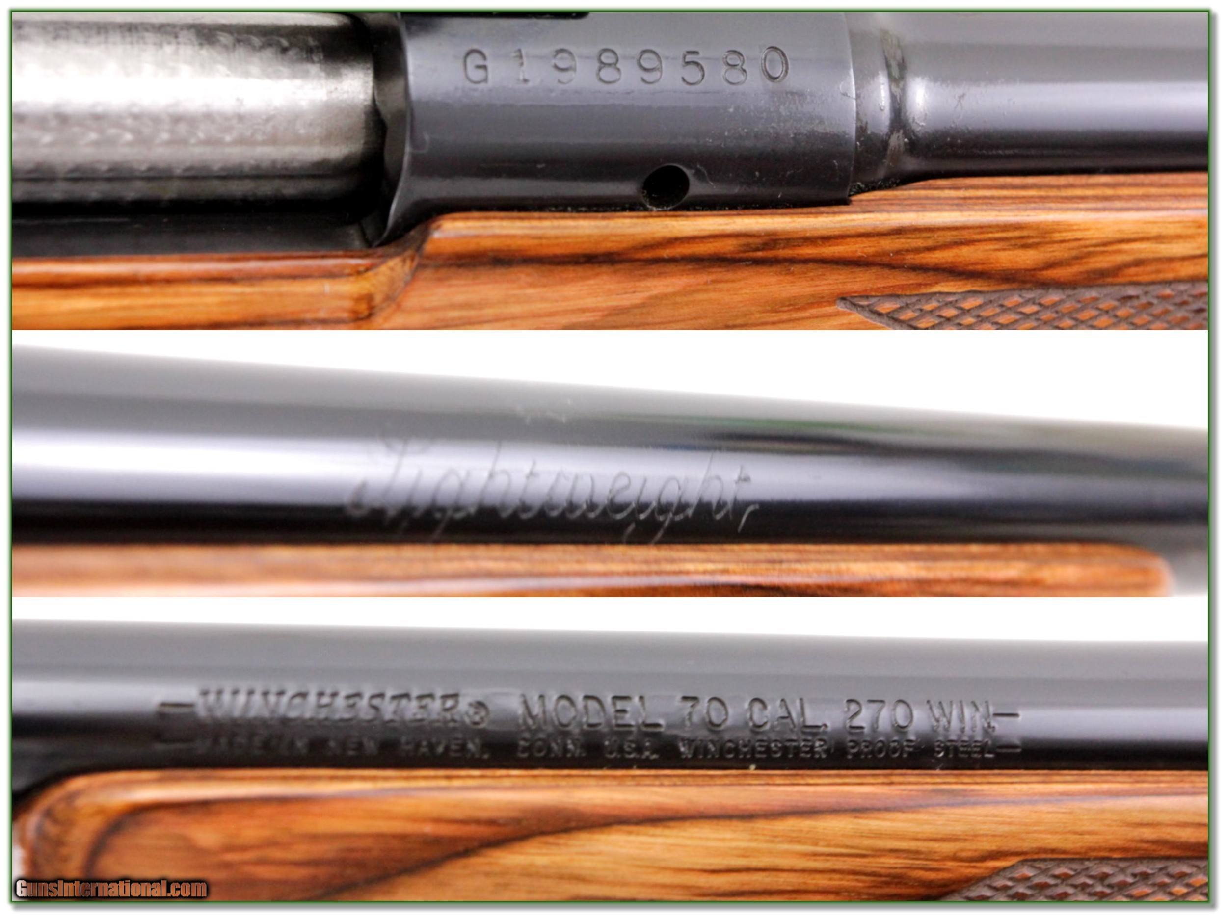 Description: This is a harder to find Winchester Model 70 Lightweight in 270 Win. It has a laminated stock, 22in barrel and 13.5in LOP. This is a New Haven made gun in excellent condition! It comes with bases and rings as seen. It will make a classic hunting gun or fine addition to your collection. I see just a few minor marks on the stock. Shipping with insurance is $39. Please email me with any questions or larger pictures. (Consign your quality firearms with Shooting Investments for only 12%! Let me know if you have any you would like to sell!) 19-1038 Payment: Payment is by Money Order, Cashiers Check or Personal Check. I can now also accept Credit Cards (MasterCard, Visa, Discover & American Express) with a 3% convenience fee. PayPal can be used for some items but never for firearms. Shipping: The shipping charge will be listed in each description. It is $39 for most firearms. Some heavy guns or those insured for over $2000 will be higher. Shipments to Alaska and Hawaii are higher because air shipment is required. Most firearms are shipped on Tuesday and Thursday and usually in 5 days of receipt of payment. We package all shipments carefully and insure them. Optics are shipped Priority Mail and most other non-firearm shipments are shipped First Class. Returns: Our return policy is simple. If for any reason you are not pleased with your purchase, you may return your item for a full refund of purchase price. Ammunition cannot be returned. It is important to us that you are happy. Guns cannot be fired or dissembled before returning them and they must be returned in the same condition as received. Notification of a return must occur with-in 3 days of receipt at your dealer. Shipping, convenience and dealer fees are not refundable and are the responsibility of the buyer. Lay-a-way: If needed, we offer a 60 day lay-a-way option on most firearms. It is 1/3 now, 1/3 in 30 days and 1/3 in 60 days. Lay-a-way firearm sales are final and if not completed the first payment cannot be returned. Consigning your firearms with Shooting Investments: We will help you get top dollar for your firearms. While most local guns shops charge 20% or more, our fee is only 12% with a minimum of $75. At your local gun shop it might take months to sell. Selling on-line provides instant access to thousands of interested buyers. You won’t find any other on-line dealer willing to sell your firearms for only 12% or listing every gun on 3 separate s. Selling through an House typically costs the seller 15% and the buyer an addition 15% (so 30%) and you have to wait several months to sell and longer to receive funds. If properly priced, we will sell your firearms in a few weeks. Send us an email or give us a call and we’ll explain how easy it is for you to get top dollar. Trading: Trading for use is really just buying your gun to re-sell. If you have a gun you want to trade, please email a picture and we will let you know what we can give or it. You will always get more if we sell it for you on consignment. Help for California Buyers: We are happy to ship to California. It is the buyer’s responsibility to make sure any item you buy is legal in your state. We are also happy to help with your purchase of a firearm from someone other than us. If you see a gun you would like to buy but the seller can’t or won’t ship to California they can ship to use and we’ll then ship it to your California dealer. The cost for this service is only $30 + shipping. Let us know if we can help! SOLD |