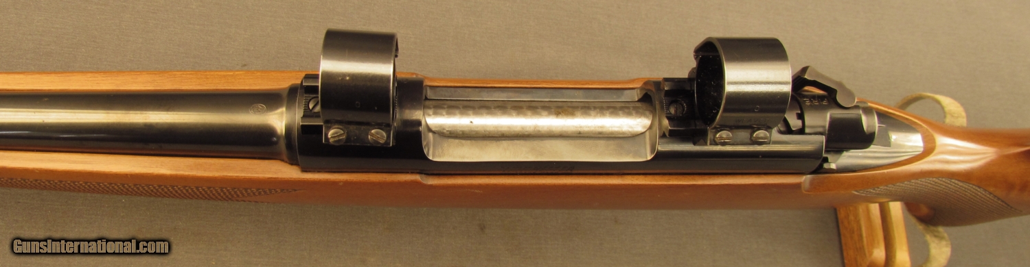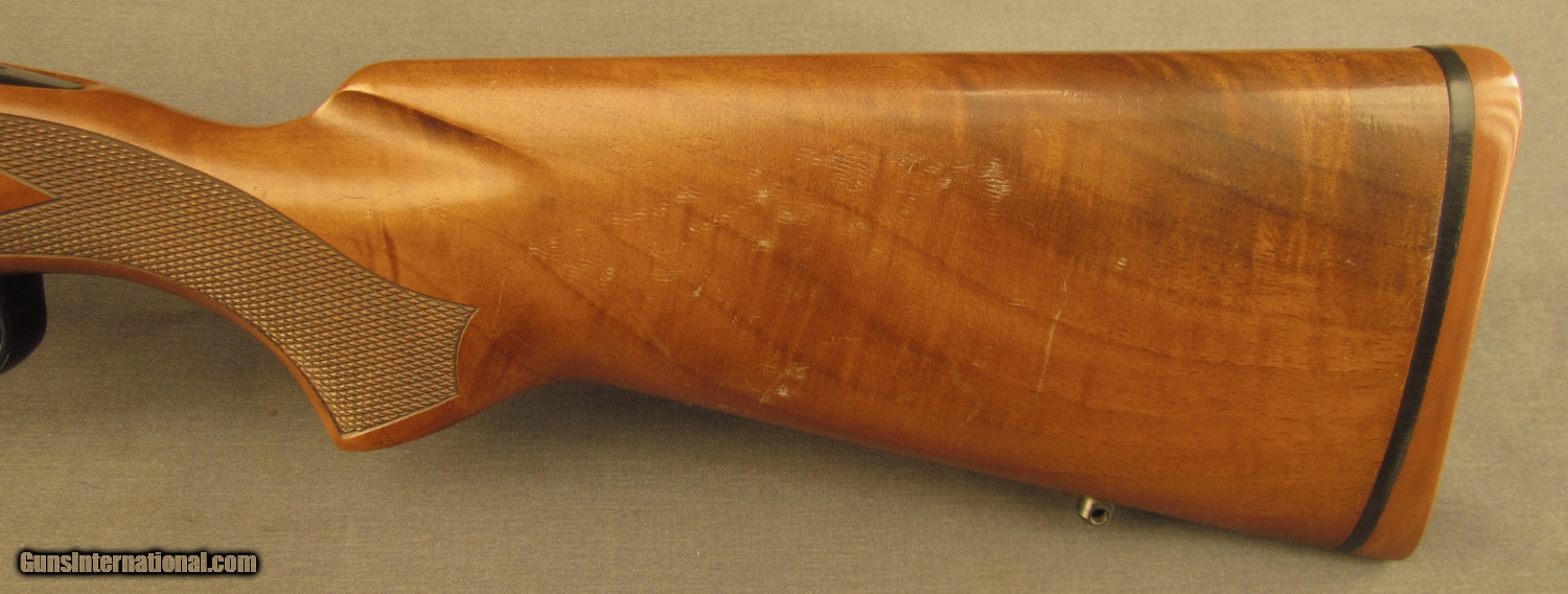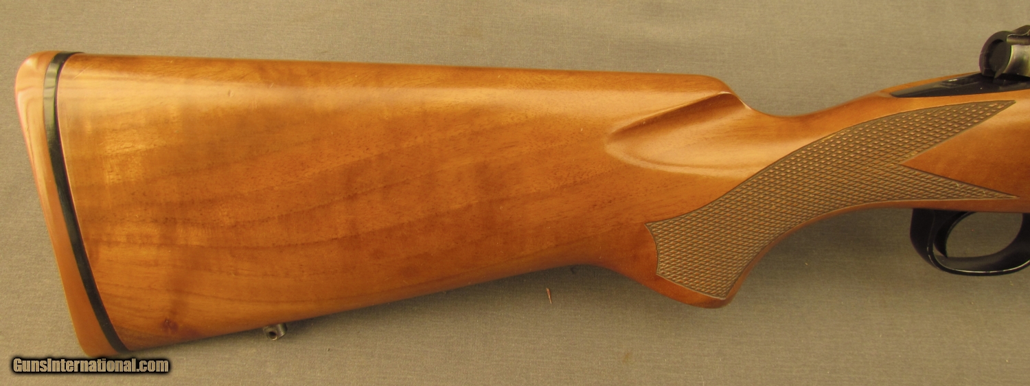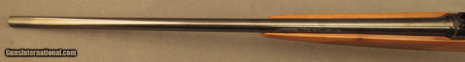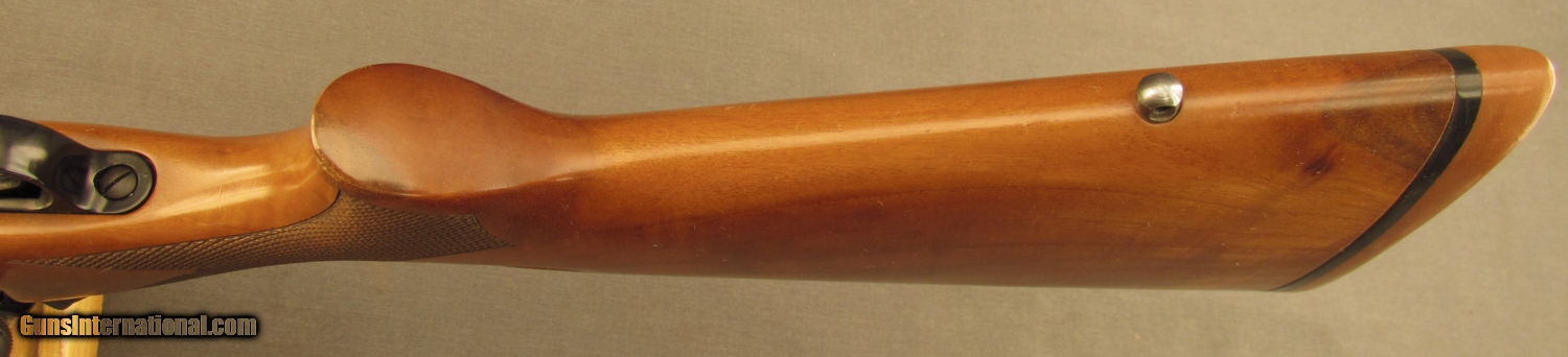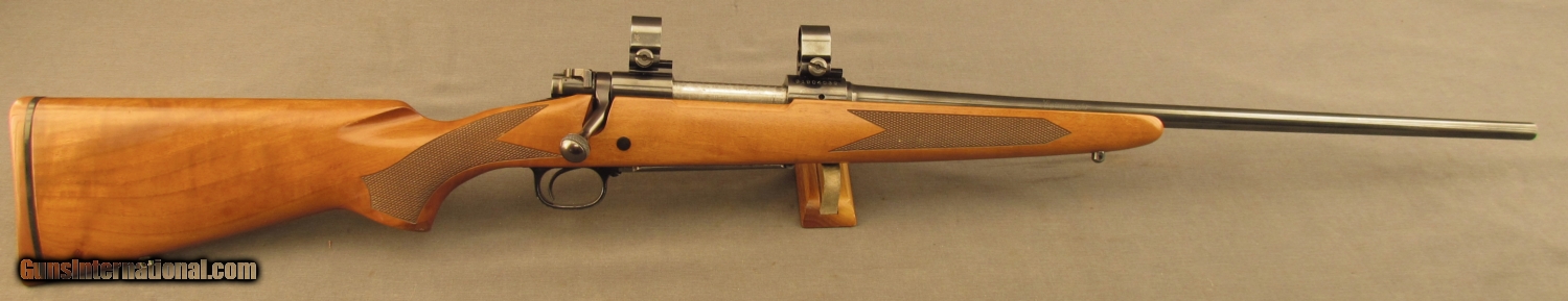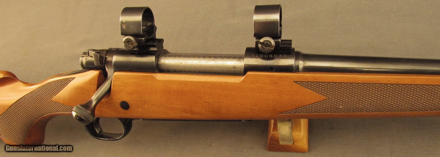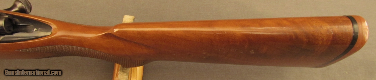 Description: S# G1904039, 270 Win, 21 1/2 inch barrel, bright excellent bore. This 1989 manufactured rifle remains in very good condition with around 90% blue on metal surfaces showing high edge wear, especially on trigger guard. Wood remains sound, right side shows a few dings and small marks. Left side is similar from wrist forward, butt has extensive light scratching from poor transport, it looks like something rubbed on wood repeatedly. Weaver bases and ring are mounted on action, wood has sling bases. A red rubber Winchester pad is mounted on butt. A good model 70 in a great caliber. FFL. SOLD Manufacturer: Winchester Model: 70 Serial Number: G1904039 Caliber Info: .270 Win Gauge Info: .270 Win |