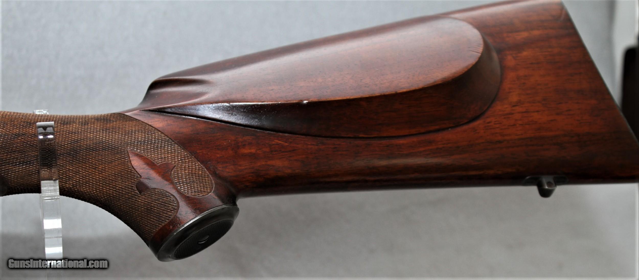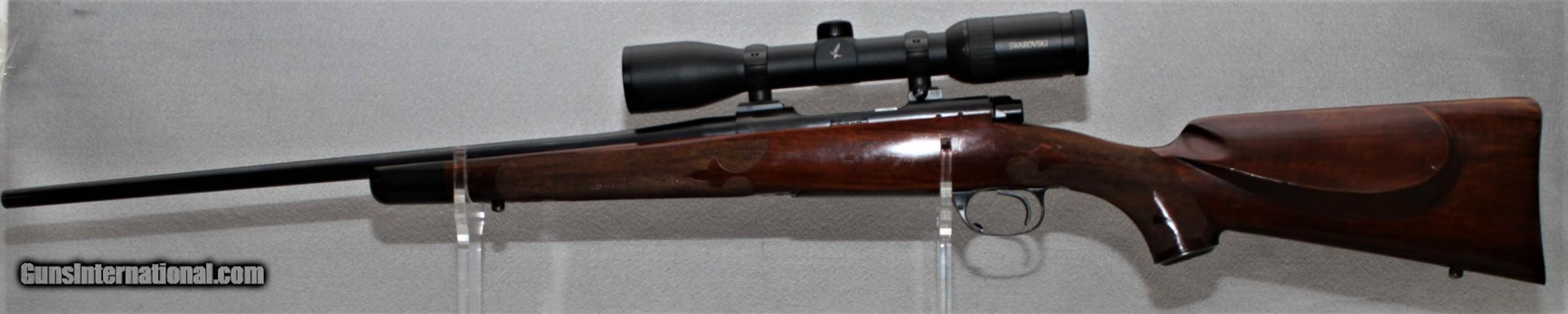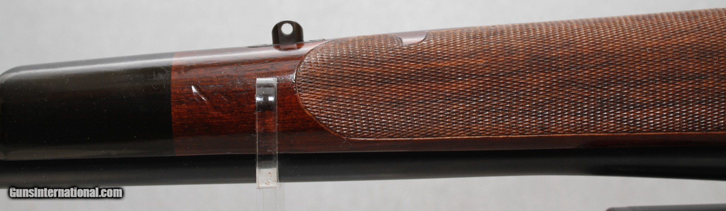 Description: Offered here is a custom built (not custom shop) Winchester Model 70 on a pre 64 action that based on the SN was manufactured in 1957. According to the owner this gun was custom built by a gunsmith in Rhode Island. The barell is a tapered, 22", however I cannot say what make it is. The wood appears to be standard Winchester walnut used during that time frame but has been checkered extensively from the grip through the forearm. The stock has a raised cheek piece on the left side for a right handed shooter. The bolt handle has been customized by shortening the knob and checkering all other bearing sides. The butt-plate and grip cap are Neidner made. The rifle has typical handling marks but no deep scratches or gouges. It comes with a Swarovski Z6 1.7-10X42 scope. Please email any questions you may have. SOLD Manufacturer: Winchester Model: 70 Serial Number: 420782 Barrel Length: 22 Caliber Info: .270 Condition: Excellent Metal Condition: Excellent Wood Condition: Excellent Bore Condition: Clear and shiny Manufacture Date: 1957 |