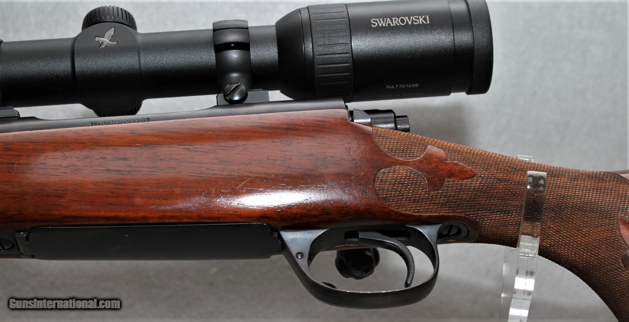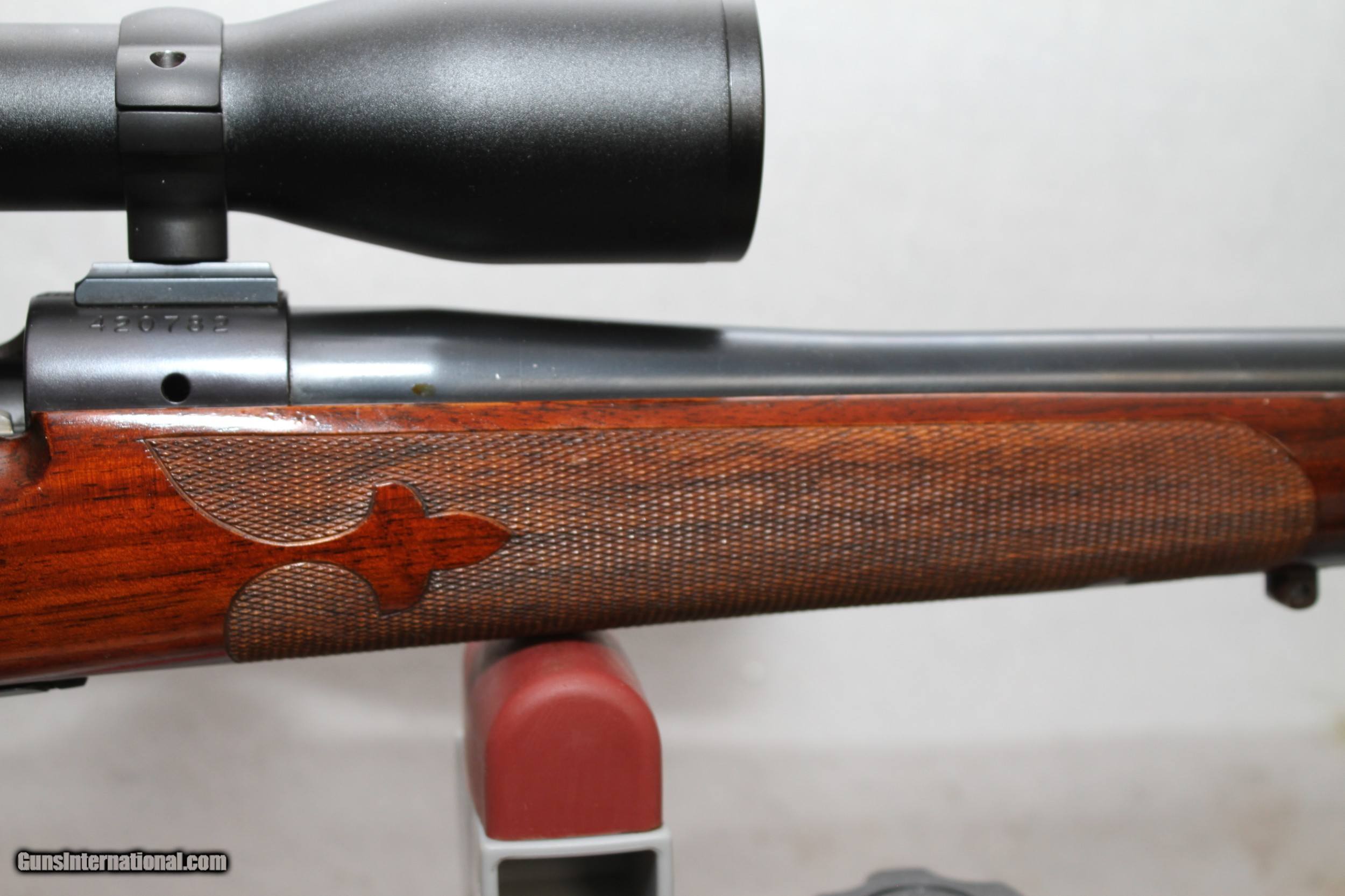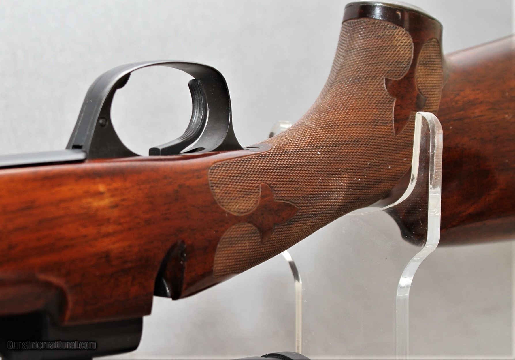 Description: Offered here is a custom built (not custom shop) Winchester Model 70 on a pre 64 action that based on the SN was manufactured in 1957. According to the owner this gun was custom built by a gunsmith in Rhode Island. The barell is a tapered, 22", however I cannot say what make it is. The wood appears to be standard Winchester walnut used during that time frame but has been checkered extensively from the grip through the forearm. The stock has a raised cheek piece on the left side for a right handed shooter. The bolt handle has been customized by shortening the knob and checkering all other bearing sides. The butt-plate and grip cap are Neidner made. The rifle has typical handling marks but no deep scratches or gouges. It comes with a Swarovski Z6 1.7-10X42 scope. Please email any questions you may have. SOLD Manufacturer: Winchester Model: 70 Serial Number: 420782 Barrel Length: 22 Caliber Info: .270 Condition: Excellent Metal Condition: Excellent Wood Condition: Excellent Bore Condition: Clear and shiny Manufacture Date: 1957 |