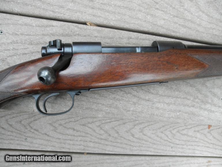 Description: Winchester Model 70 Featherweight...Pre "64"...243 caliber and bore shines...All original gun with aluminum butt...No breaks, repairs or extra holes...Berrel blus is 95% with wear around receiver where carried...Stock has 70% plus finish with flaking...Gun is much nicer than picture show [Had bad lighting]...Great little hard to find gun...Any questions please call or e-mail SOLD |