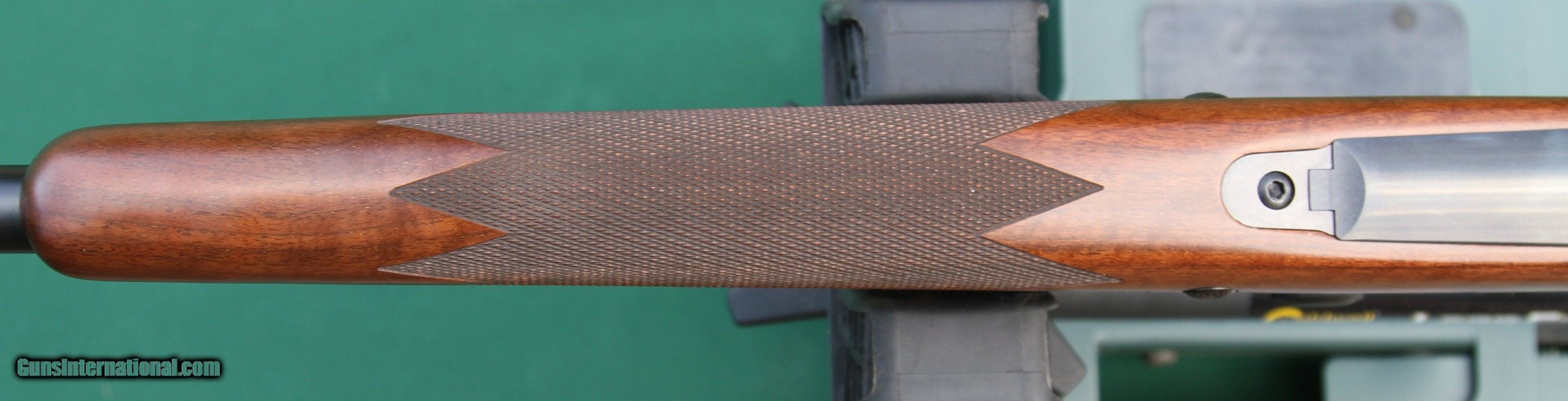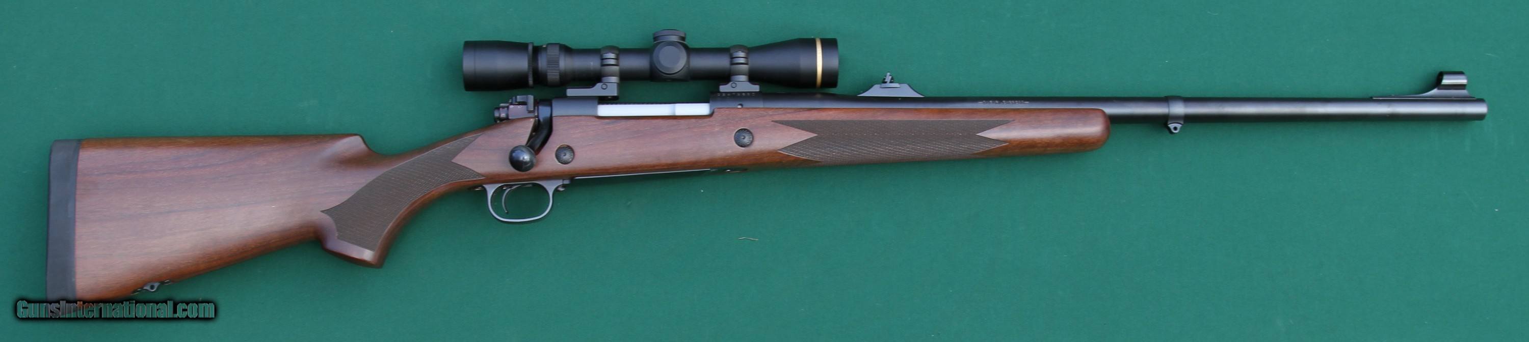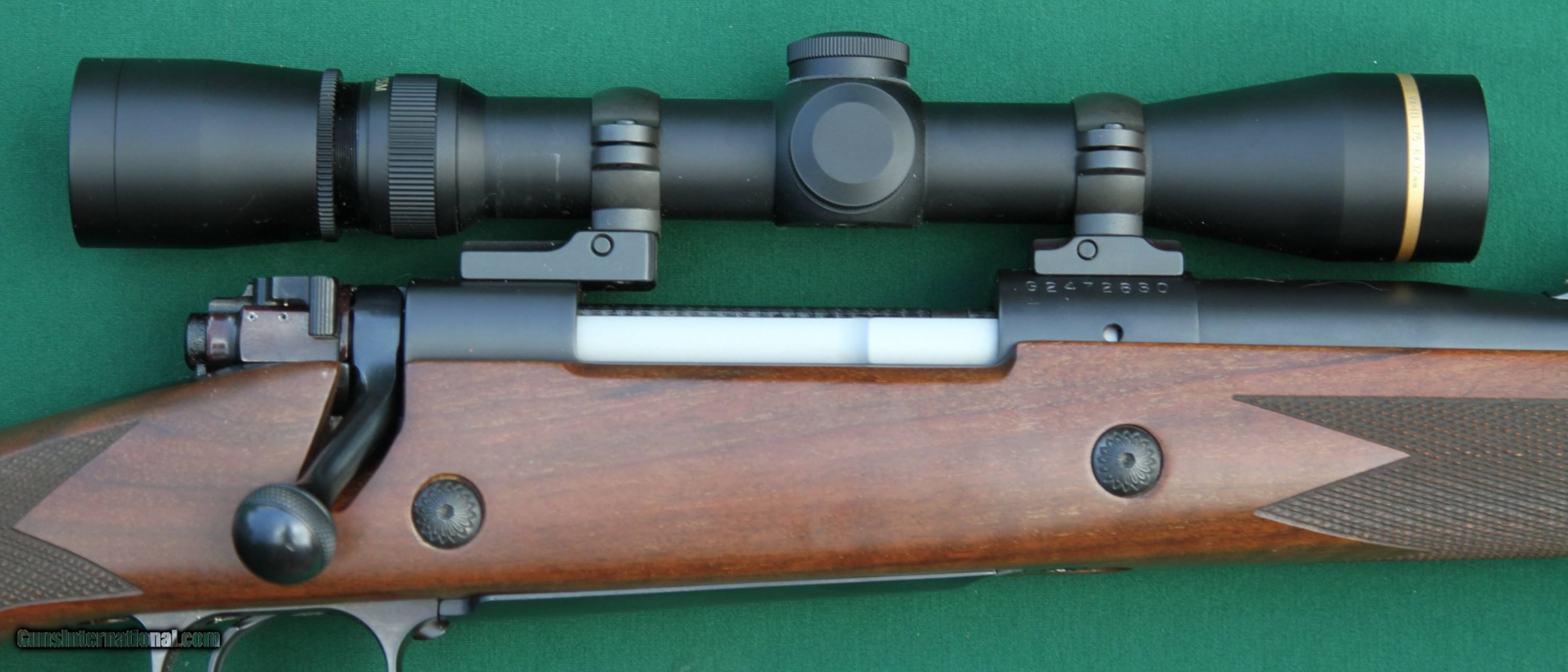Description: Winchester Model 70 Safari Express, .375 H&H Magnum rifle, with a 24-inch barrel, a walnut stock, and a Leopold VX-3, 1.5-5x20 mm, as well as iron sights. There are no box, papers, or accessories with this rifle. Year of manufacture: I have been unable to determine the year of manufacture of this gun. As listed on the Winchester 70, the last year listed is 1992. The last serial number for 1992 is G2037985. The serial number on this gun is G2472830. This gun is on consignment with me. The owner inherited it some years ago from an old gunsmith friend and has never fired it. The old gunsmith seemed to have like big magnum rifles as he had several, all of which appeared to be unfired or fired only a few times. The overall condition of this gun is 100 percent. I do not normally call any gun 100 percent that is not new-in-the-box, but this is clearly in new-in-the-box condition, though it has no box, papers, or accessories. I believe the gun has been fired only a very few times. The finishes on the metal and wood are very excellent. The matte black barrel is like new with no scratches, mars, blemishes, or other signs of wear. The receiver also is in very excellent condition with no scratches, mars, blemishes, or other signs of wear – 100 percent. The satin-finished walnut stock and forearm also are in very excellent condition; the checkering on the stock and forearm are deep and crisp with no sign of wear – 100 percent. The butt plate is in perfect condition. The photos are high resolution, so zoom to see details. Contact me for additional photos of any area you would like to see or see better. The buyer pays $65 for USPS Priority mail and $34.35 for insurance. Virginia buyers must pay 5.3% sales tax. The fastest way to get this gun is to pay with USPS (U.S. Postal Service) money orders, as they are like cash. I will ship the revolver immediately upon receipt of a USPS money order and an FFL. I will also accept a personal check or other type money, as well as bank checks and cashier's checks, but I will hold the gun until it clears my bank; this includes bank checks and cashier’s checks. I do not accept credit cards, debit cards, or PayPal. Check or money order must be made out to Jerry Pownall or Barboursville Arms. If you wish to contact me, please "Email Seller". I will answer your questions, explain the purchase / transfer process, and provide my mailing address. I am available any time, except Friday evenings and Saturdays. I will return emails Saturday evening. SOLD |