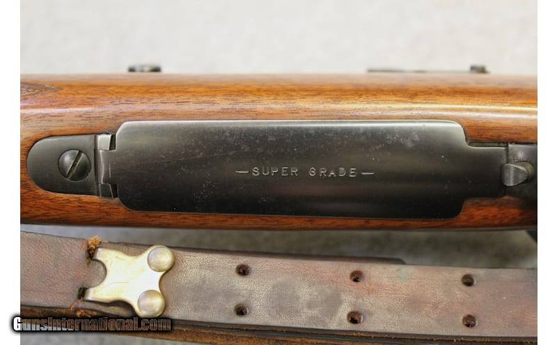 This Winchester Model 70 Super Grade chambered in .30-06 SPRG is in great shape. The finish has minor pitting on the right side of the barrel by the muzzle with a bright bore, and the wood stock has no cracks or splits. .30-06 Springfield