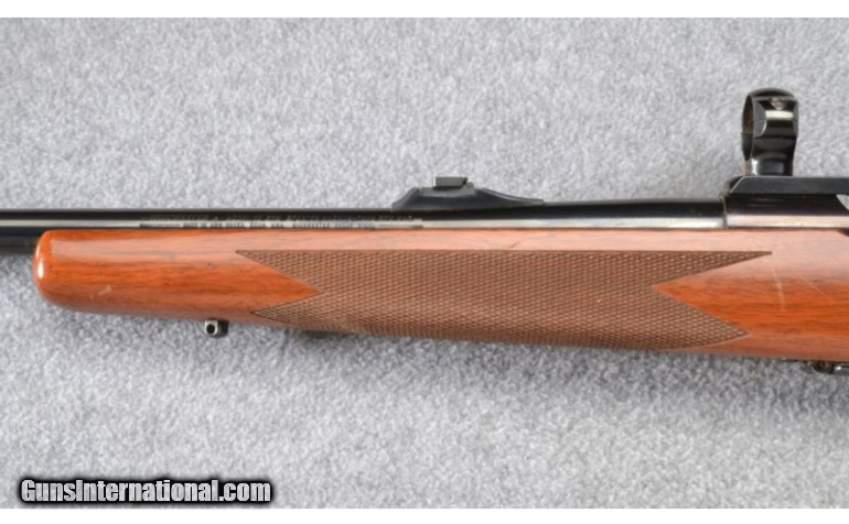 Description: Floorplate shows some carry wear and barrel is fitted with an aftermatket muzzle brake. Bore is excellent barrel and receiver blue remains excellent throughout. Wood shows use marks to the left side. Complete with rings and mounts. Push feed receiver. No box. SOLD Manufacturer: S/N G161XXXX Caliber Info: 7 MM Rem. Mag. Metal Condition: Excellent Wood Condition: Good Bore Condition: Excellent Barrels: 26" with Muzzle Brake Triggers: Factory Stock: Checkered Walnut Pistol Grip with Black Cap Stock Dimensions: 13 1/2" LOP Fore End: Checkered Walnut Butt Pad: Red Rubber Butt Pad Weight: 8 1/2 LB Sights: Adjustable Notch Rear-Front Sight Removed Item Location: Wheeling, WV |