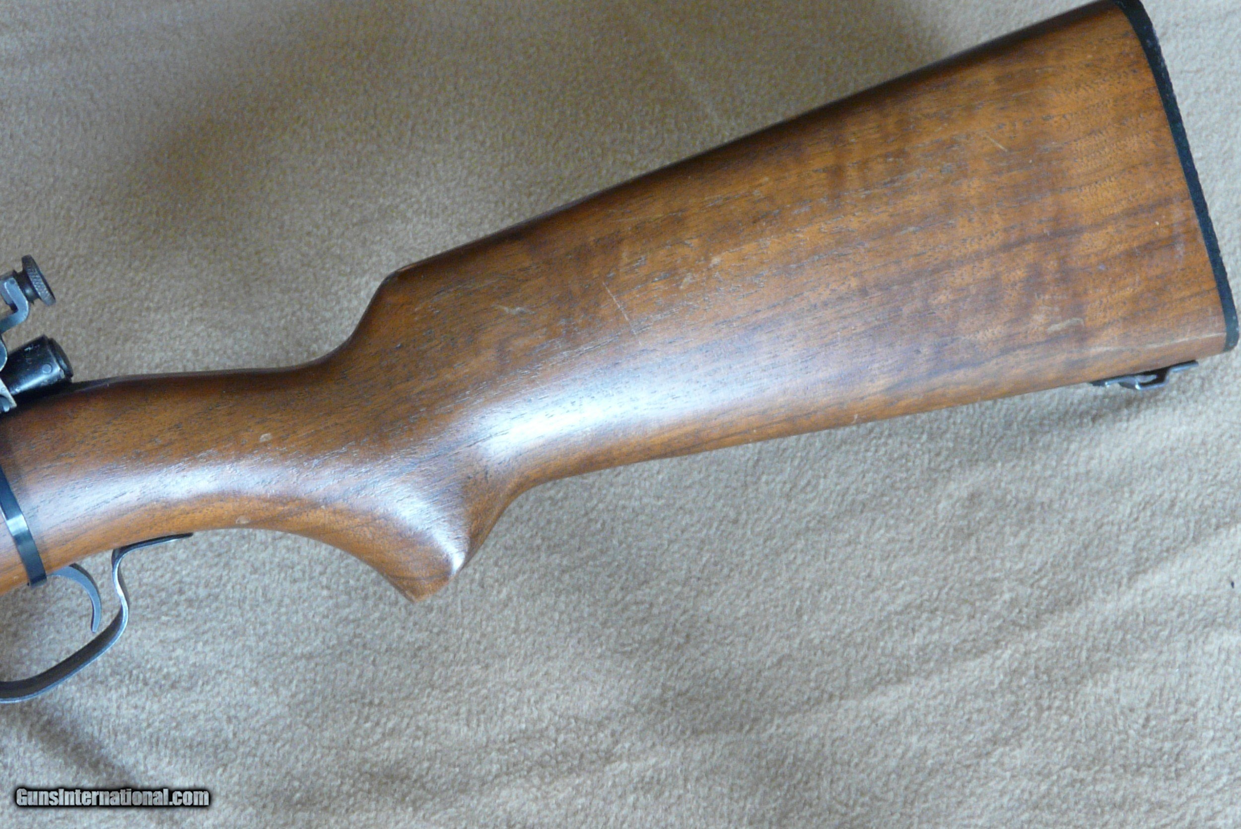 Description: This is a hardly used model 72 at least 98% with perfect bore and mechanics, wood is like new also, with Tube magazine that holds short, long and LR ammo, very accurate, this is an older model with Factory peep sight, that makes it even more accurate, a great varmint or pest rifle, with hardly any use!! SOLD |