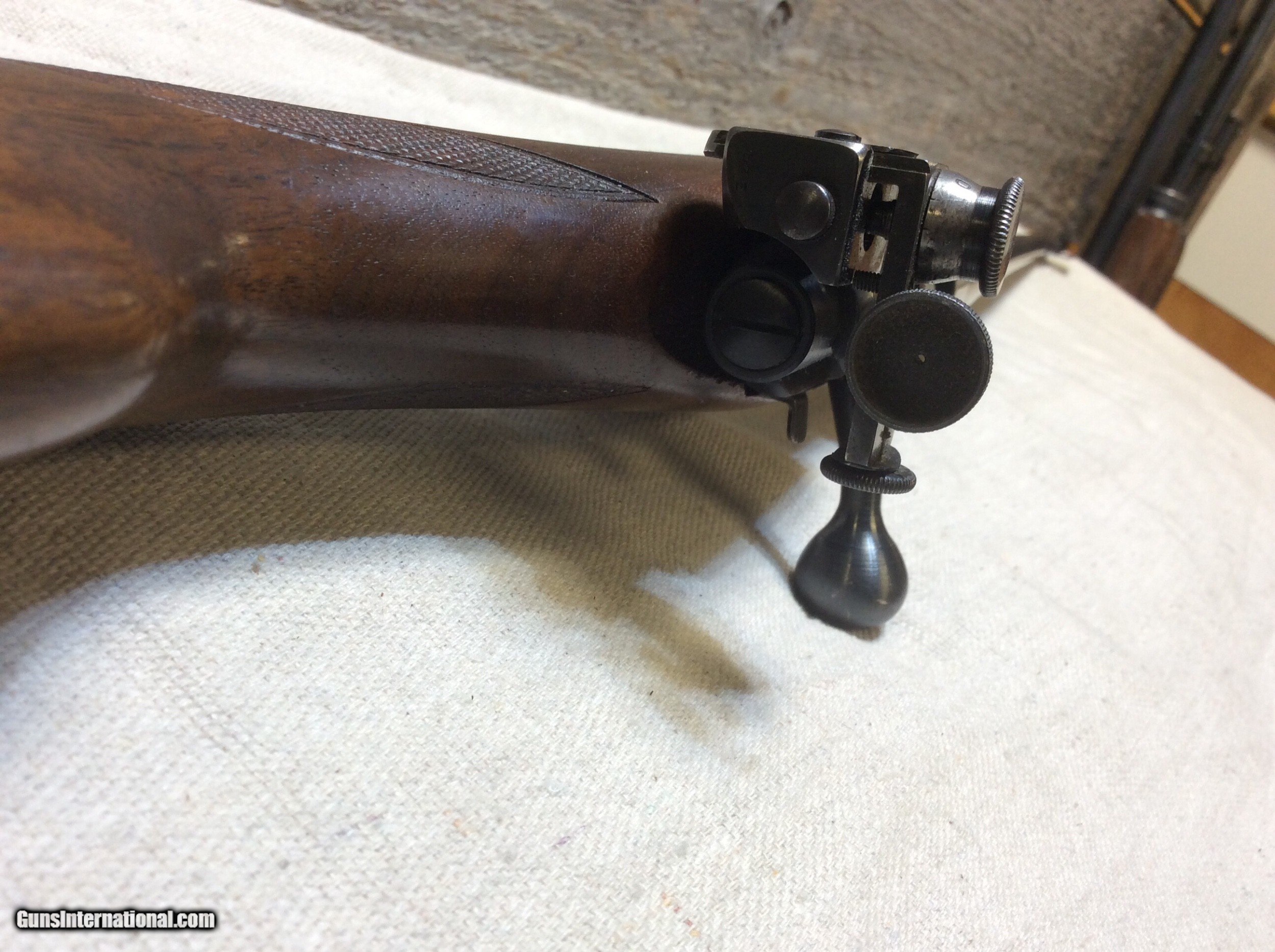 Description: Another very nice , clean Winchester . This is a model 75 Sporter with Lyman sight in place. This is a ungroved, untapped receiver. Look! SOLD |