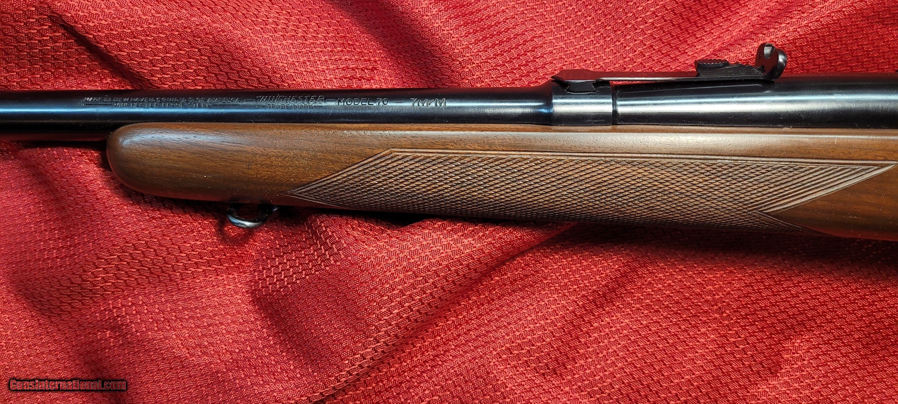 Description: Pre 64 M70 20 inch carbine in hard to find caliber 7mm Mauser .This gun is very clean aproximately 90 percent plus overall. It has clean wood and checkering with a few slight handling marks. Bore is excellent. Gun has not been used very much. Made in 1950.Excellent 72 year old deer rifle. SOLD SOLD Curio/Relic: Yes Rifle Caliber: 7x57mm Mauser Manufacturer: Winchester Model: M70 Chambers: 7x57 Mauser Condition: very good Metal Condition: very good Wood Condition: good Bore Condition: very good Barrel Type: carbine Action: Bolt Manufacture Date: 1950 |