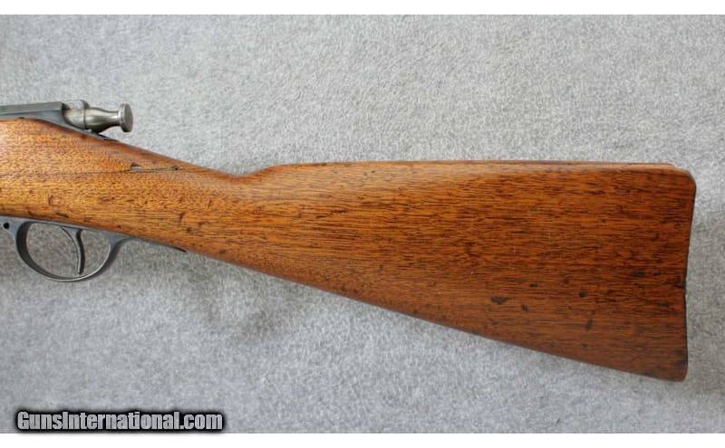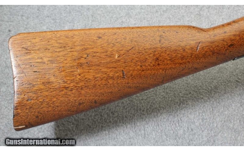 Description: This Winchester M1879 Hotchkiss has been sporterized to make hunting rifle. The stock and barrel have been cut. The butt plate is missing. There is a repaired crack in the stock on the left side of the receiver above the trigger. .45-70 Government Metal Condition: "Poor, worn finish, metal has been cold blued Wood Condition: "Poor, stock has crack in the wrist that has been repaired, dents and scratches Bore Condition: Good Barrels: 25 inch barrel Stock Dimensions: 13 1/2 inch LOP Weight: 7 Lbs. 9 Oz. Sights: Tangent rear sight with blade front Item Location: Lehi, UT Price: $799.99 Contact Seller |
