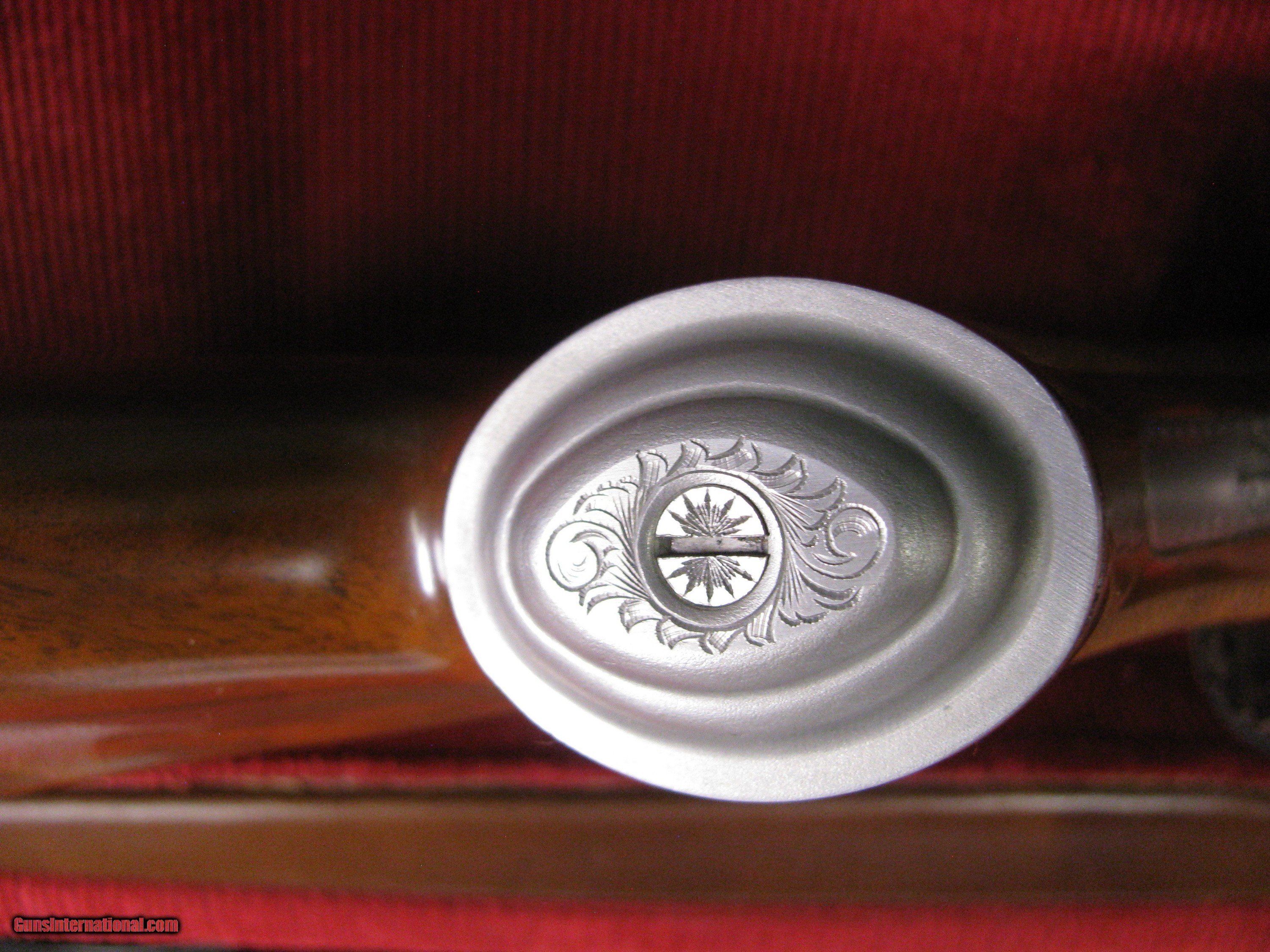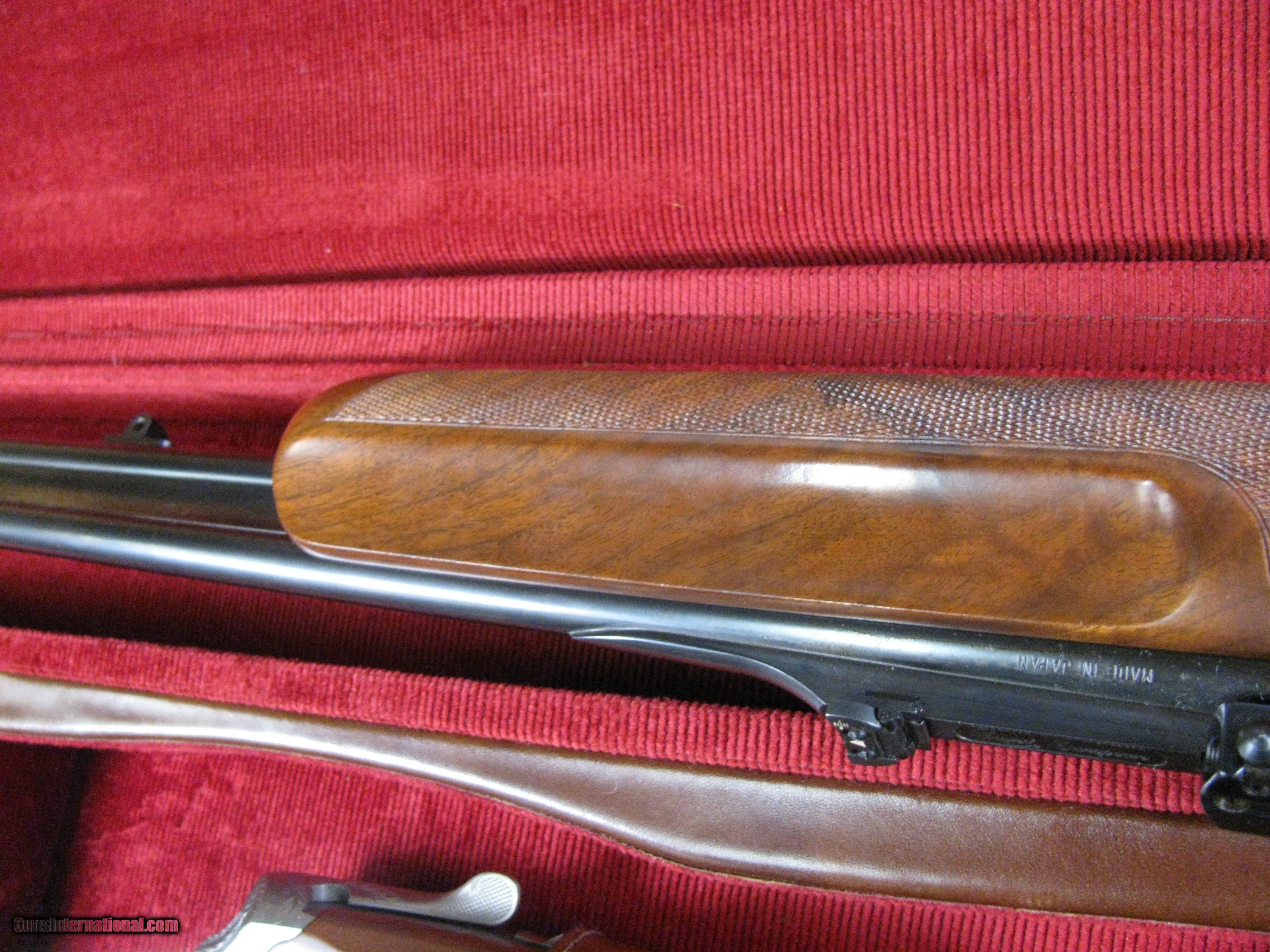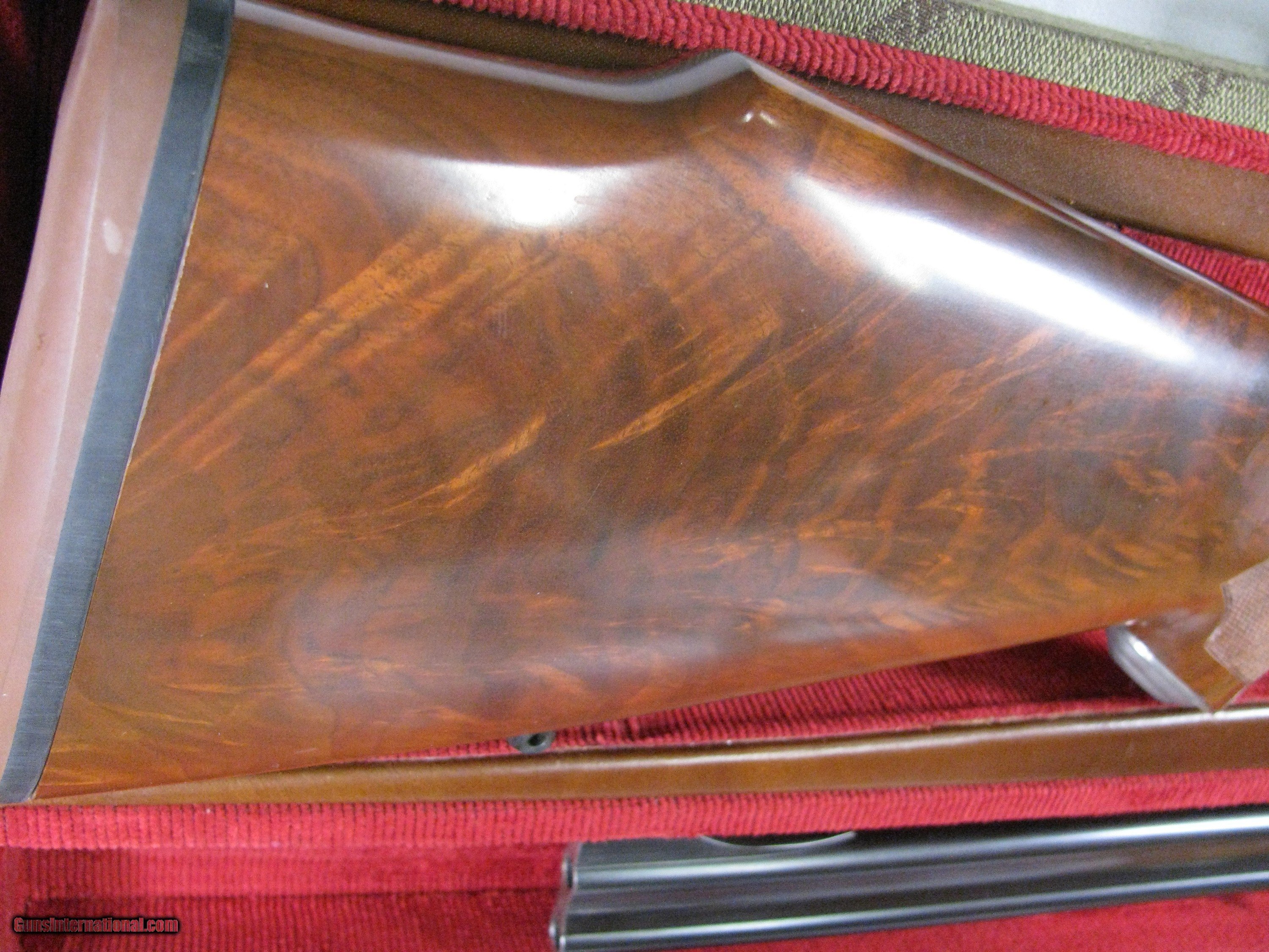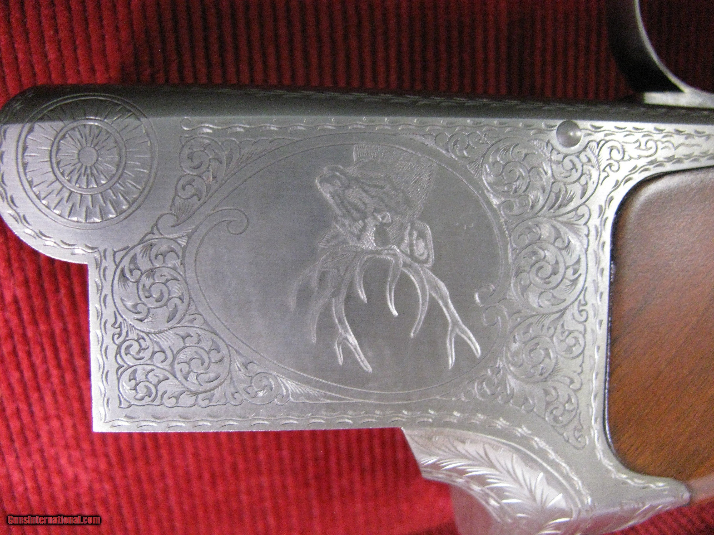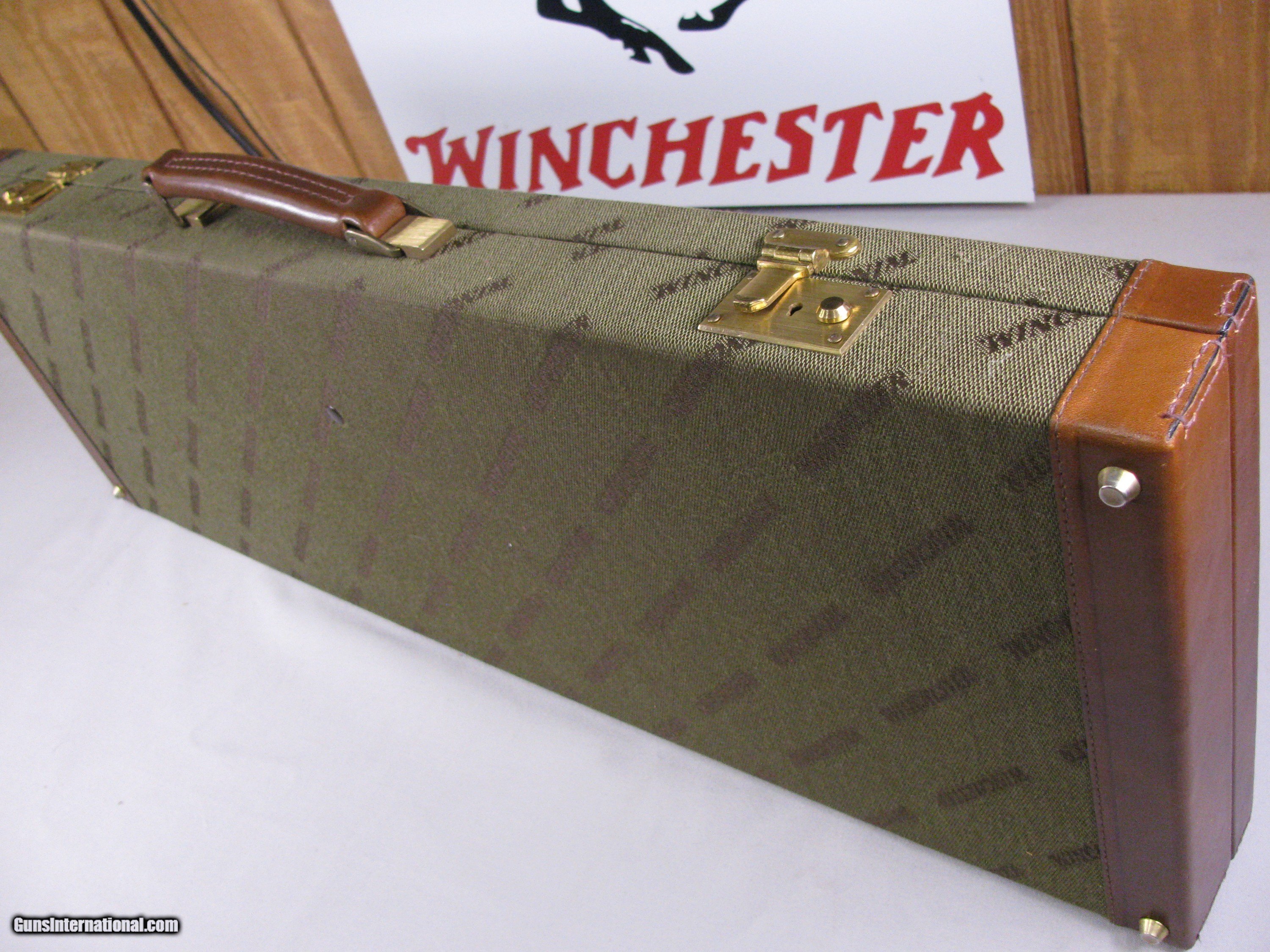 Description: 8002 Winchester 101 Grand European Rifle over-under, 30-06/30-06, Drop Sights, Has the Swivel Sling clips, Beautiful engraved Hog/Deer, Cheek Piece on the stock, Rare-Comes in a Green Winchester Hard trunk case with red interior SOLD Rifle Caliber: .30-06 Springfield |
