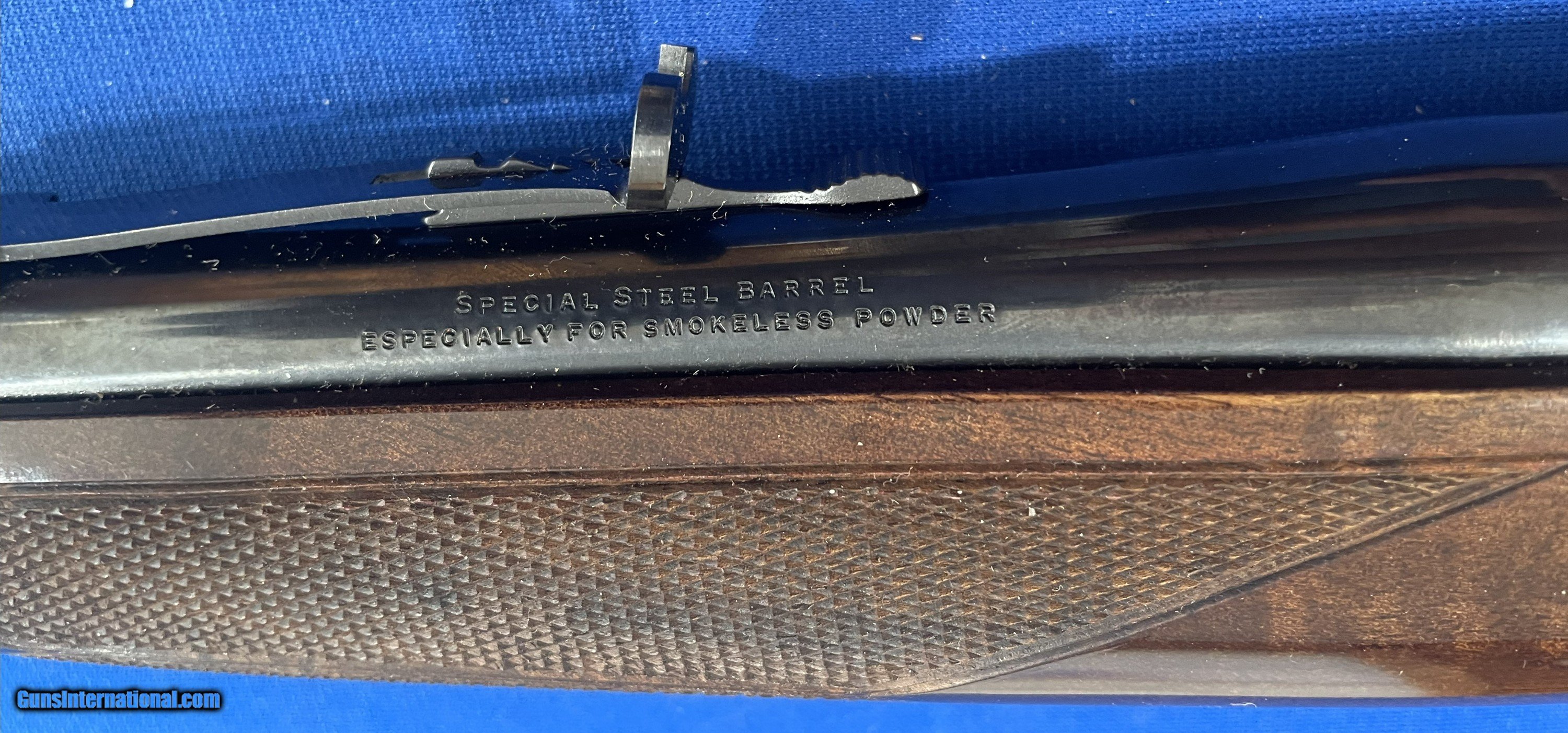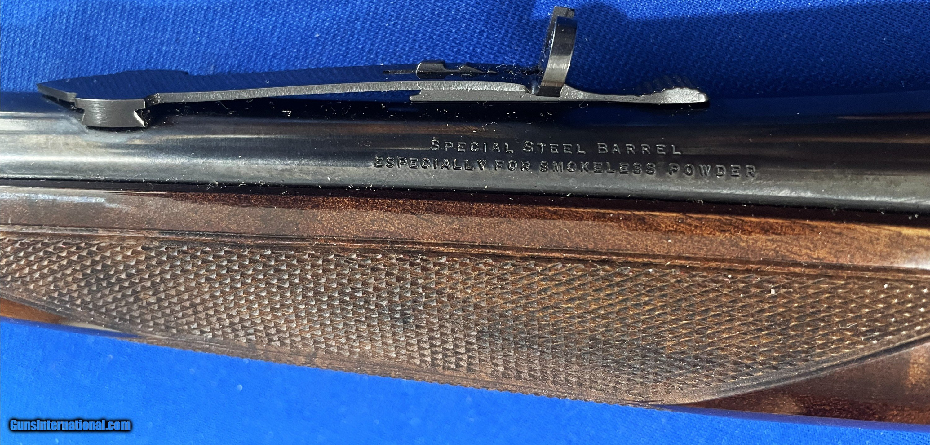 Description: WINCHESTER HIGH GRADE MODEL 1895 LEVER ACTION .405 CALIBER RIFLE IN LIKE NEW CONDITION (PROBABLY UNFIRED) 24" BARREL, AS NEW BORE. METAL & STOCK FINISH 99.9%. RECENTLY FOUND IN LOCAL COLLECTION. SEE MY OTHER LISTINGS FOR MORE GREAT ITEMS FOR SALE. $60.00 S&H ANYONE CAN BUY ANYWHERE IN THE U.S. THAT'S OK BUT MUST SHIP TO LICENSED FFL OF YOUR CHOICE. NO SALES TO NEW YORK STATE ! Rifle Caliber: .405 Winchester Manufacturer: WINCHESTER (MIROKU) Model: 1895 Barrel Length: 24 Bore Info: PROBABLY UNFIRED Condition: AS NEW Metal Condition: EXCELLENT Wood Condition: EXCELLENT Bore Condition: EXCELLENT Barrels: STEEL Barrel Type: ROUND Action: AS NEW Triggers: GOLD Stock: WALNUT Fore End: WALNUT Butt Pad: METAL Finish: ORIGINAL Engraving: FACTORY ENGRAVED Price: $2,195.00 Buy Now Contact Seller |