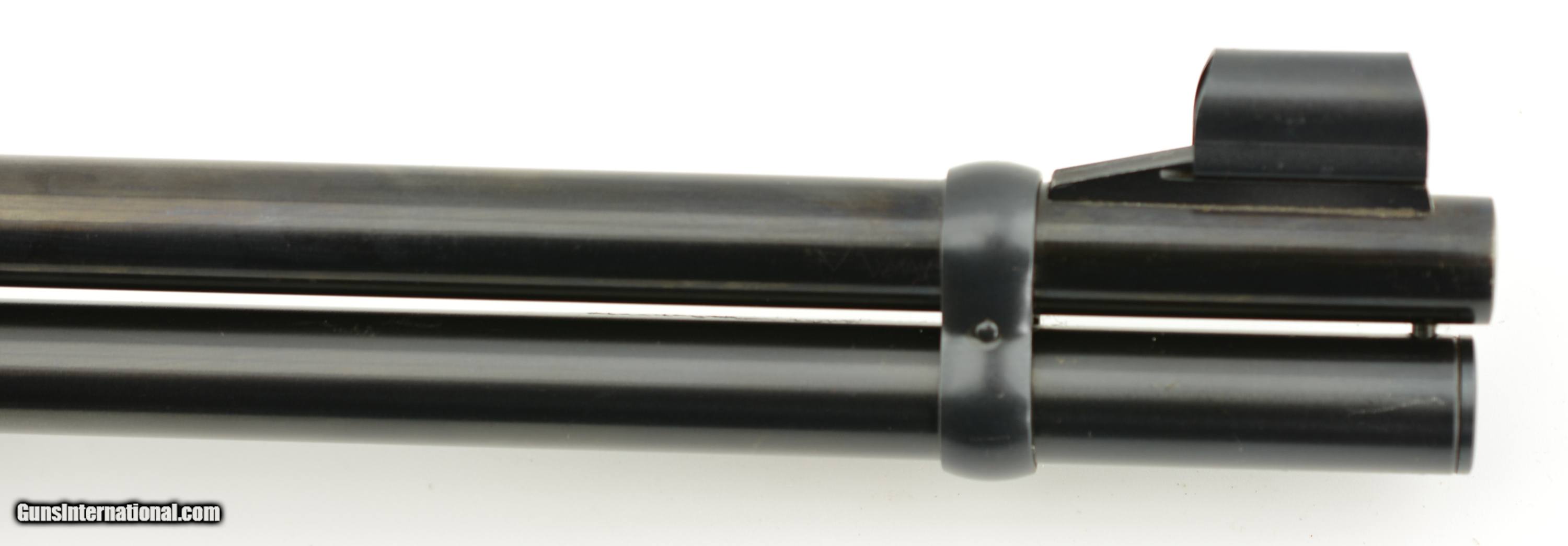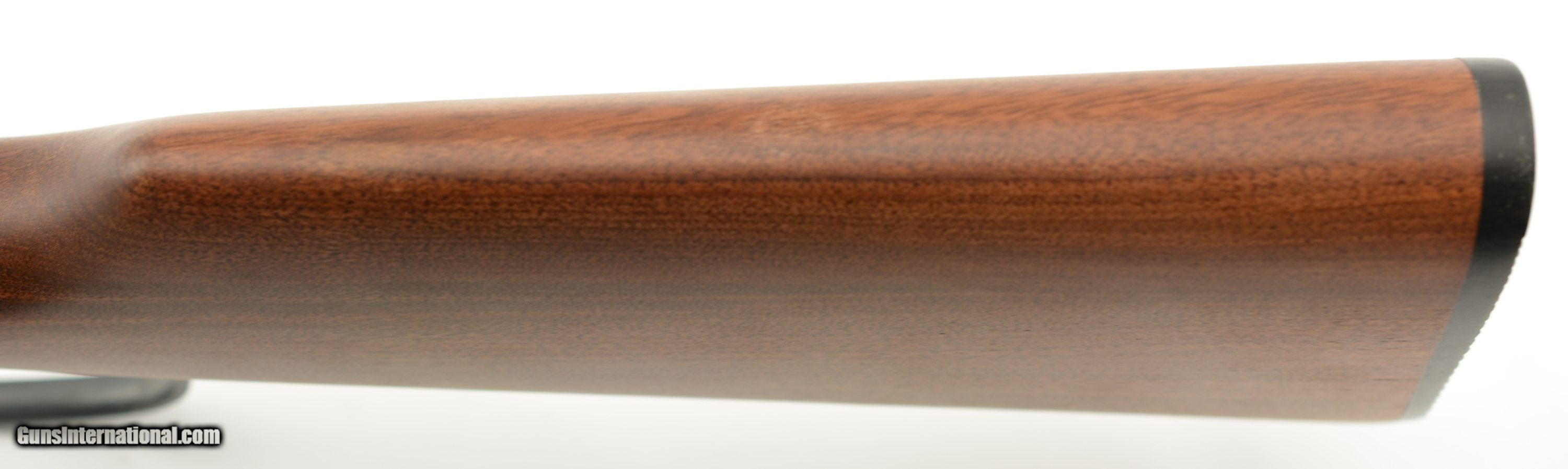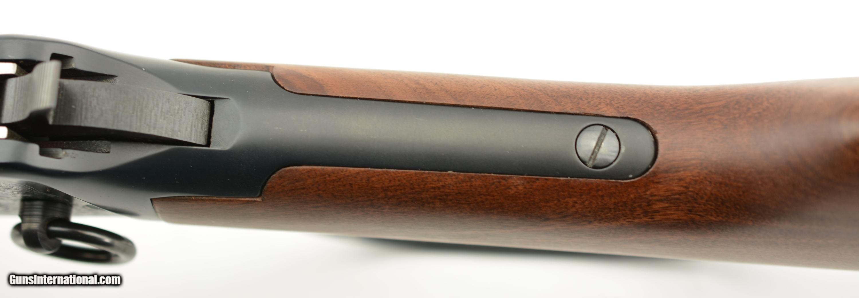 Description: Serial #5085949, .30-30, 20 inch round barrel with a bright, excellent bore. This is a pre-cross bolt safety Winchester Model 94 Saddle Ring Carbine Wrangler featuring a large lever loop, and roll engraved receiver scenes with a wagon train scene on the left panel and a prospector panning for gold on the right one. Manufactured in 1982 this SRC is in excellent plus condition retaining virtually all, 98-99% of the original blue finish with only minor handling blemishes. The American Walnut stock and forearm are likewise excellent and even retains the "Genuine American Walnut" sticker. This version has the shotgun butt stock with plastic Winchester butt plate and is sighted with an adjustable rear sight and hooded front sight. A desirable post 64 and pre safety (1992) Winchester with the large lever loop in like new condition. FFL SOLD |