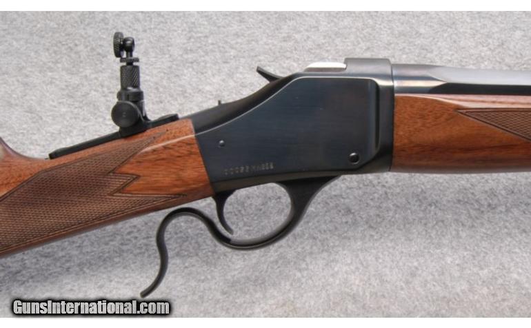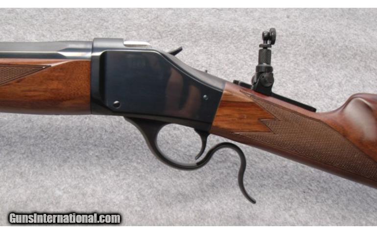 Description: Winchester 1885 Hunter in excellent condition. Rifle has not been fired SOLD Manufacturer: 2009 Caliber Info: .45-70 Government Chambers: Single shot falling block Metal Condition: Excellent Wood Condition: Excellent Bore Condition: Excellent Barrels: 22 Inch Octagon Stock: Walnut Stock Dimensions: LOP 13 5/8 Fore End: Walnut Butt Pad: Blued Crescent Shaped Steel. Sights: Buckhorn Style Rear Sight, Blade Type Front Sight, Pop-Up Peep Sight On The Rear Tab. Extras: Comes with box. Item Location: Lone Tree, CO |