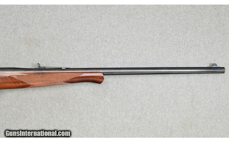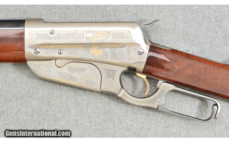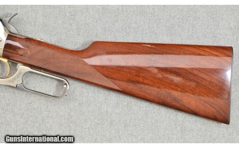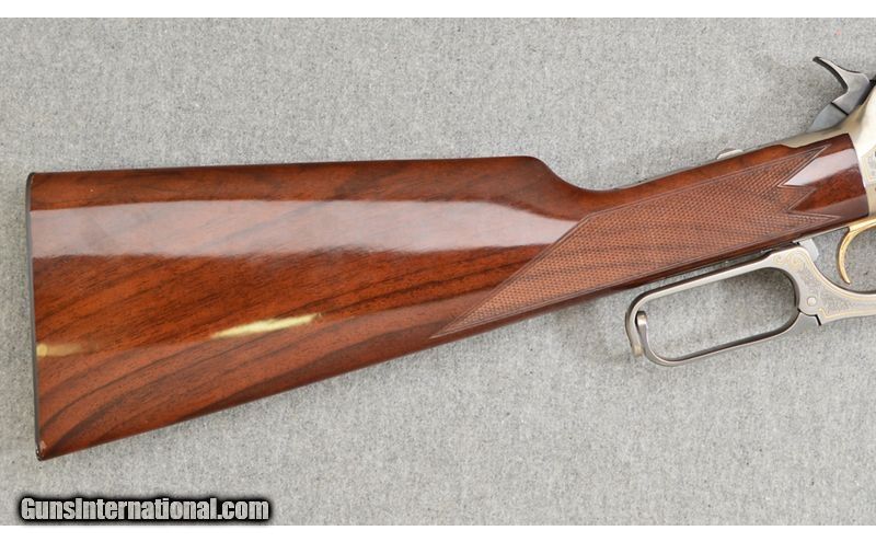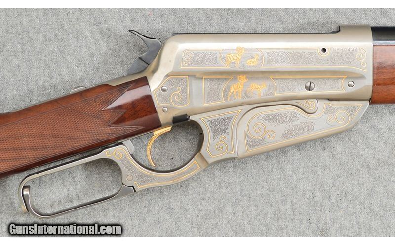 Description: For your consideration, a Winchester 1895 in .30-06 Springfield. This piece would rate in as-new condition were it not for a blemish to the stock. The silver tone receiver features acanthus scroll work with gilded depictions of mountain sheep and elk on the right and left sides, respectively. The scenes and scroll work are bounded by gold inlaid bordering throughout. Checkered wrist and forend, the furniture terminates in a smooth, shotgun type butt plate and a schnabel forend tip. The round barrel is topped with semi-buckhorn rear and gold beaded front sights. .30-06 Springfield SOLD Metal Condition: Excellent Wood Condition: Very Good Bore Condition: Excellent Barrels: 24 Triggers: "Gilded, Smooth Face Stock Dimensions: 13.25" LOP Fore End: Checkered Butt Pad: Smooth Steel Weight: 8.5 lbs Sights: Iron Sights Item Location: Hamburg, PA |
