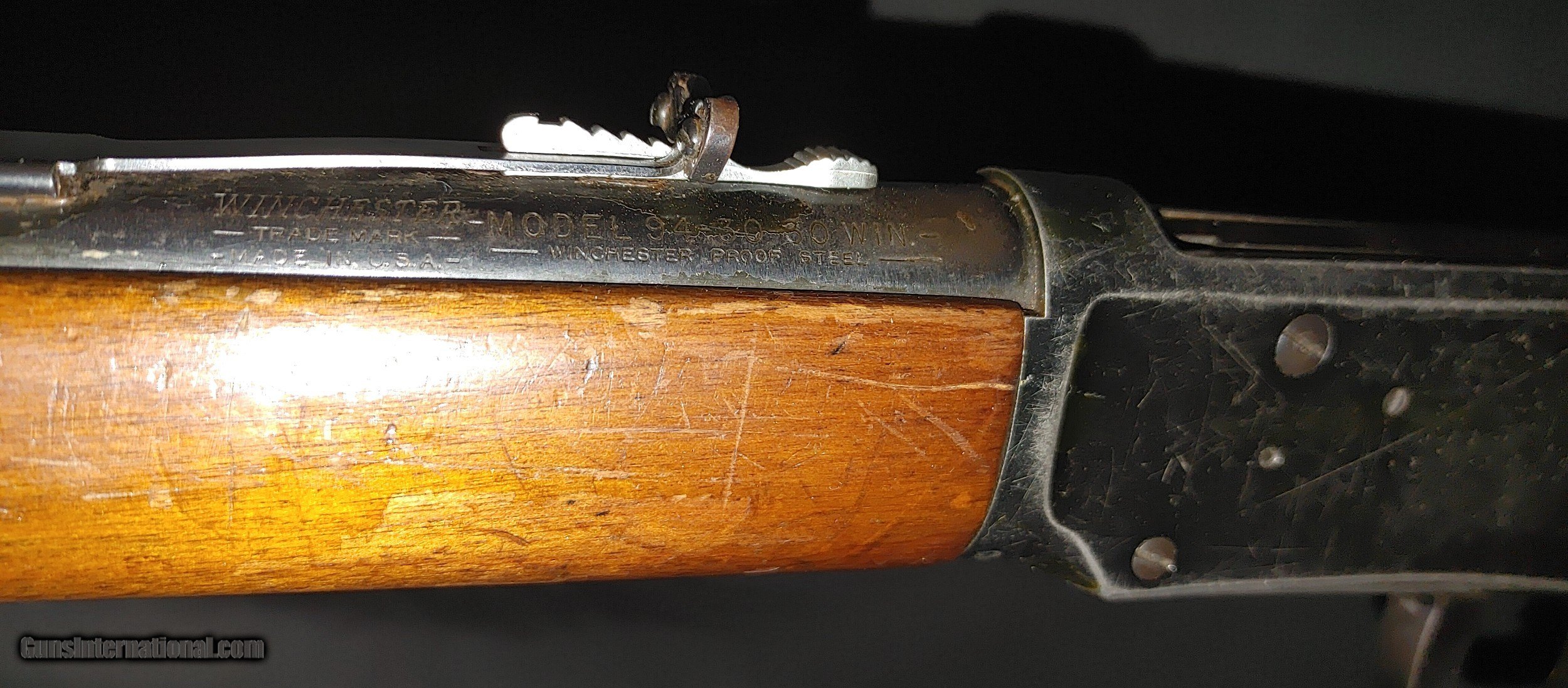 Description: In good condition. Look at pictures real good. Bore looks good. SOLD Rifle Caliber: .30-30 Winchester Manufacturer: Winchester Model: 94 Serial Number: 3035840 Condition: Good Metal Condition: Good Wood Condition: Good Bore Condition: Good Action: Lever |