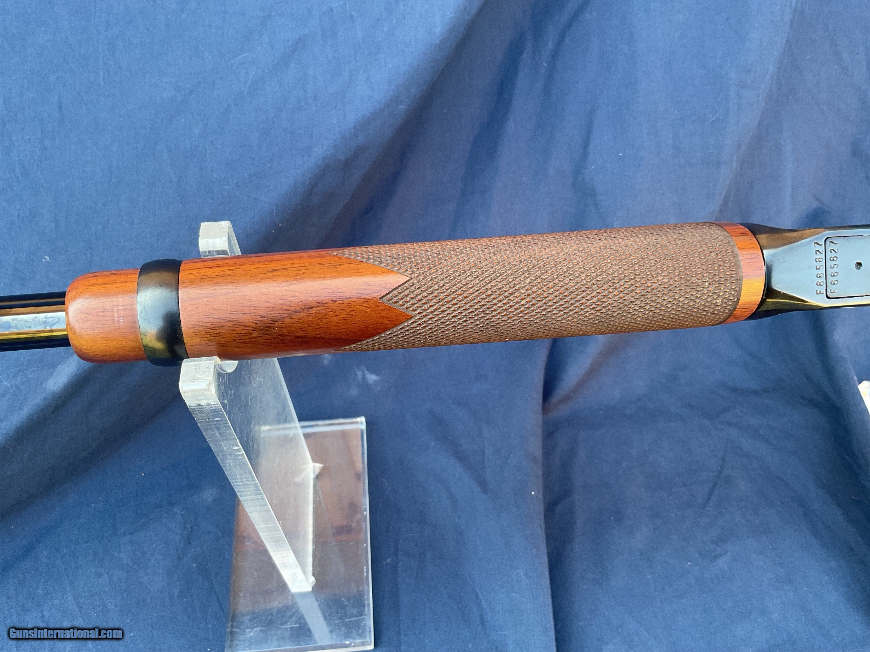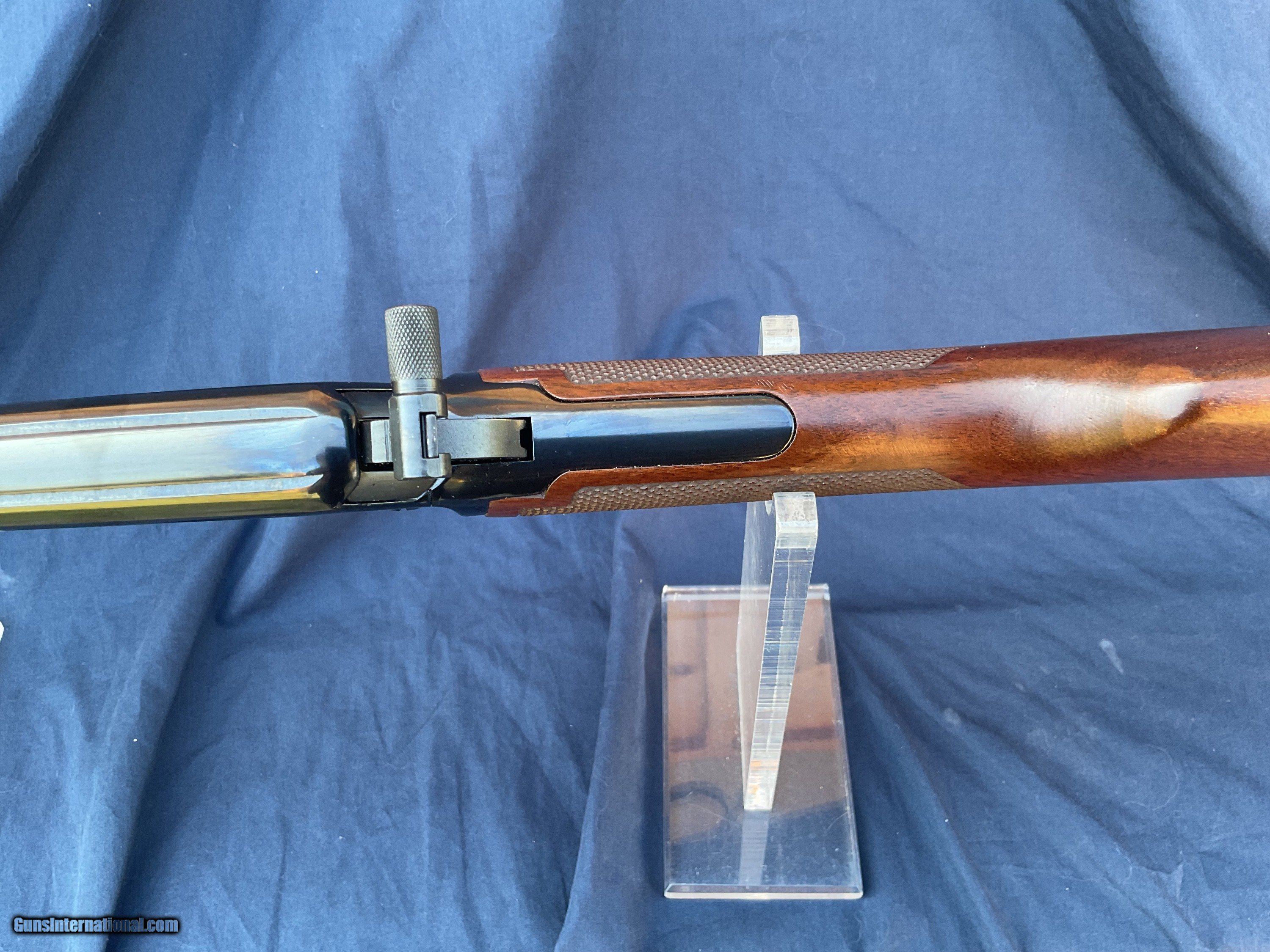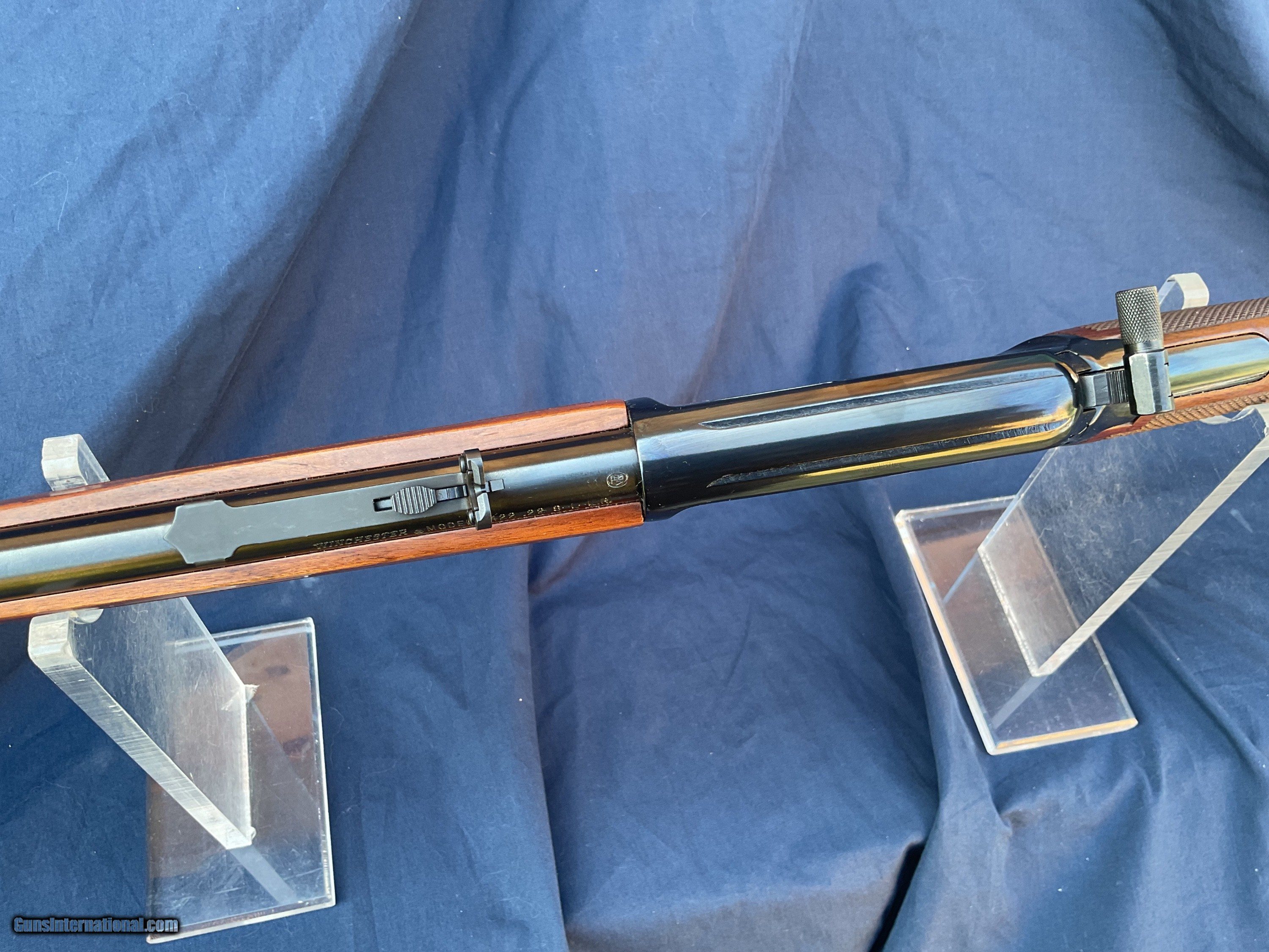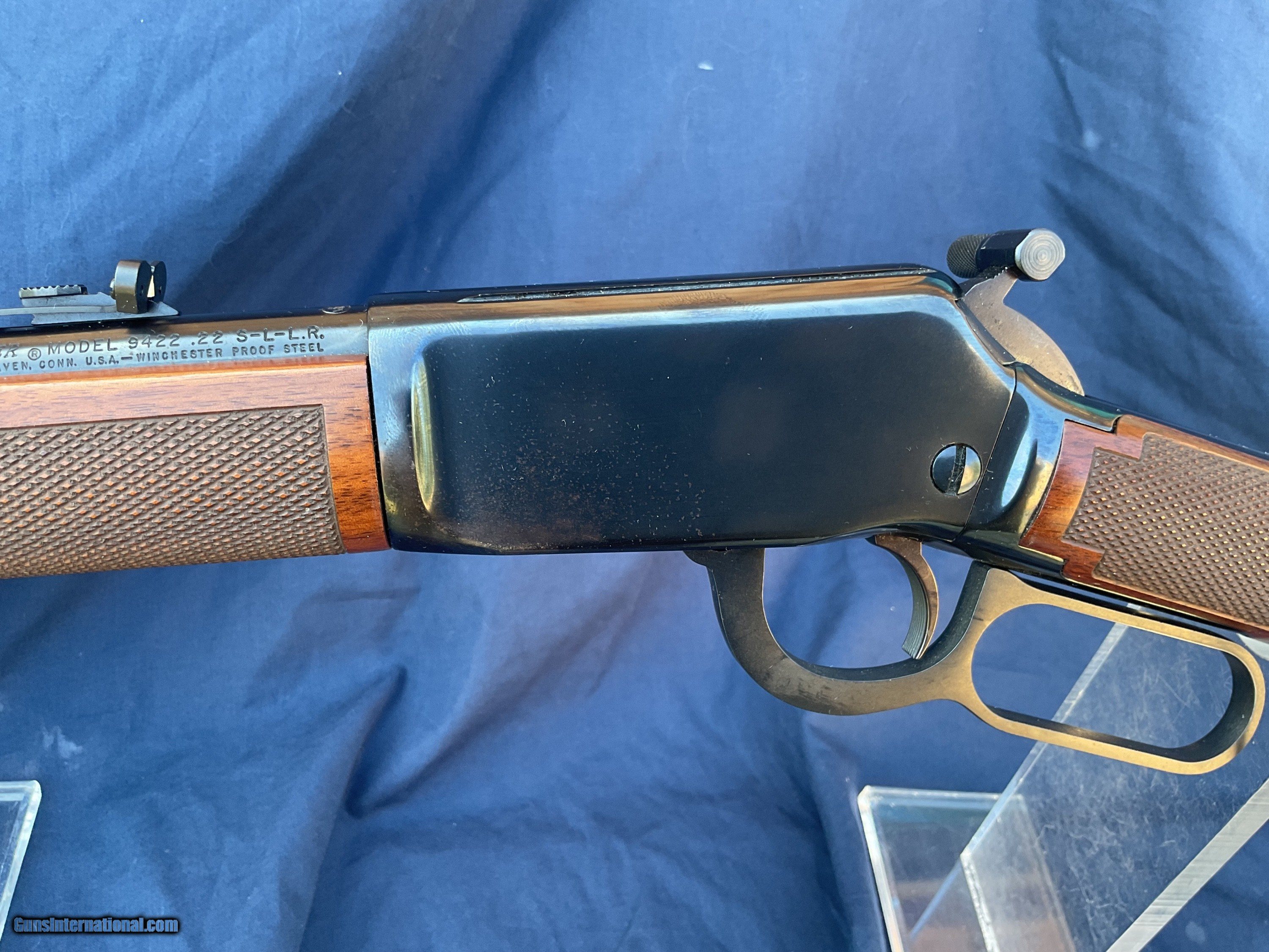 Description: Free Shipping to the lower 48. Winchester 9422 with Deluxe Wood. Earlier version of the XTR. .22 s/l/lr. Very nice bore. Correct front and rear sights, front sight hood is still present. Barrel and magazine retain of 90% of their original blue. Receiver retains 85 to 90% original blue with some brown staining towards front / bottom portion of receiver (see pics). Both forend and buttstock are in good condition showing normal handling marks. Action functions nicely. Must ship to a FFL license holder. Feel free to ask questions. I offer a layaway plan and will consider trades. SOLD |