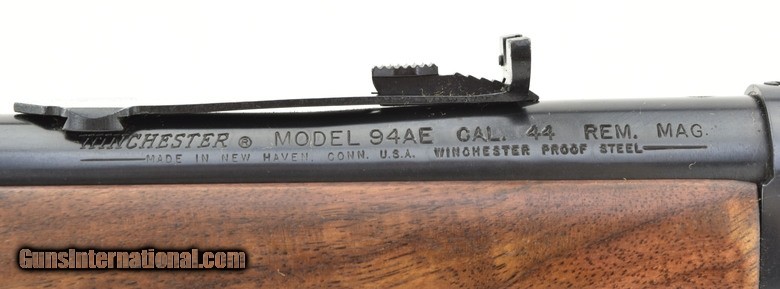 Description: Winchester 94AE .44 Rem Mag caliber rifle. 16” Trapper with large loop lever. The metal is excellent. The wood has some marks and wear.