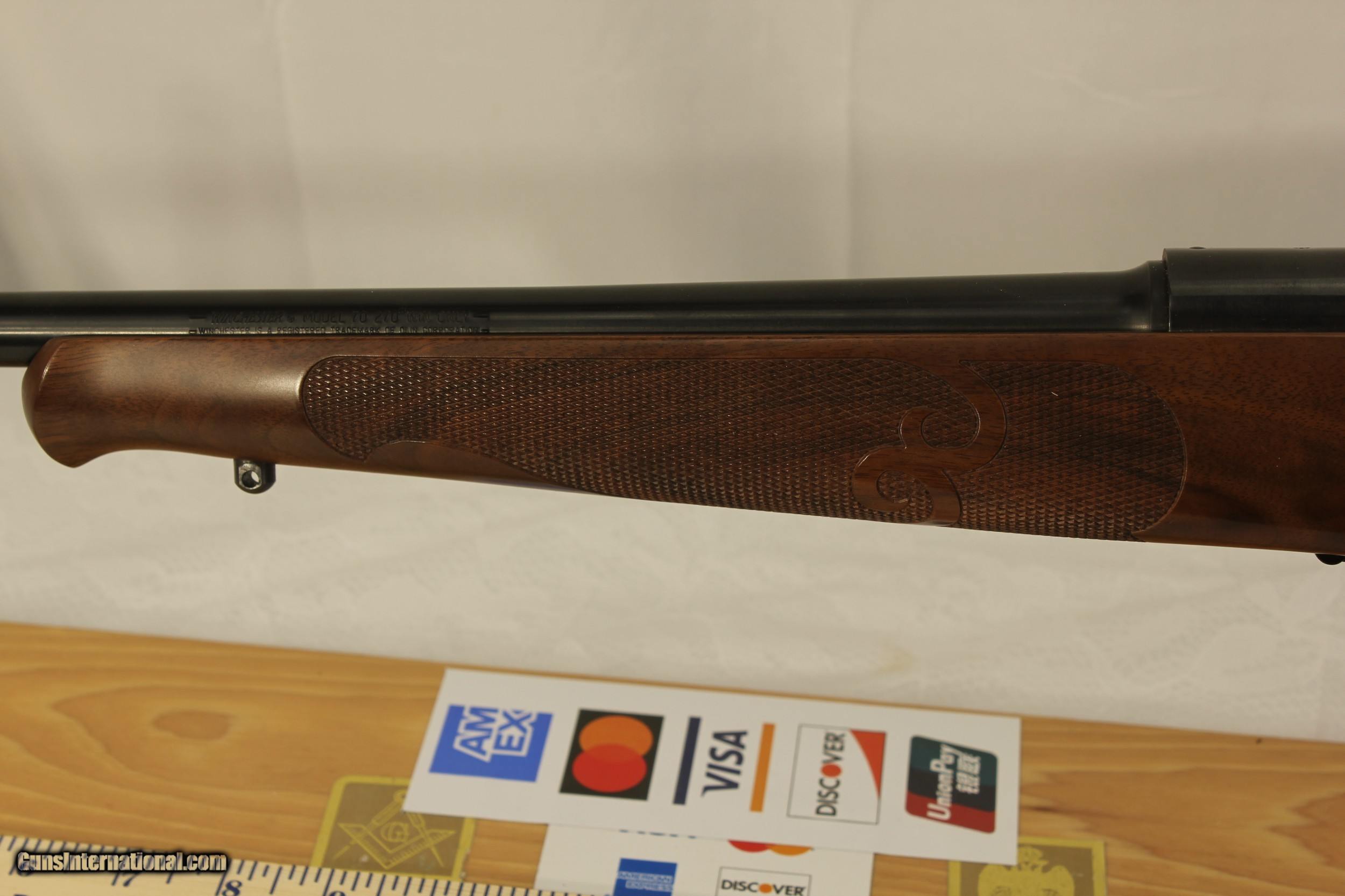 Description: This fine Winchester Model 70 Featherweight Limited Edition 2008 rifle is in 270 caliber and has really nice wood and well checkered stock. It has the original pre 64 style action with the Mauser style extractor and positive feed. It is factory drilled and taped for scope mounts that appear to have never been used. It has no open sights. This gun is an easy 95+% condition. A really good buy foe a pre 64 style Model 70. $60.00 Shipping via Priority Mail SOLD |