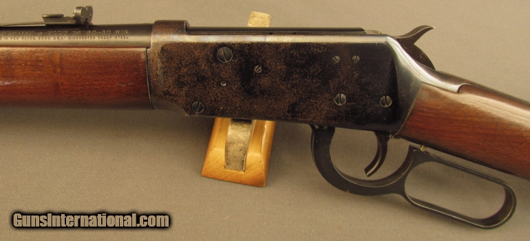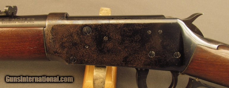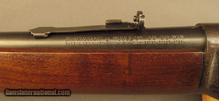 Description: S# 3848097, .30-30 win, 20 inch barrel, bright excellent bore. This 1973 MFG carbine features the post 1969 upgrade with machined internal parts, phenolic butplate and improved receiver finish. Receiver retains 70% blue with even specks of loss scattered all over, barrel and mag tube retain 95% blue. Barrel is importer stamped in front of forend on lower left side. Wood is sound with dings and wear from hunting use, butstock shows finish loss. This 94 will be a great hunting rifle. FFL SOLD Manufacturer: Winchester Model: 1894 Serial Number: 3848097 Caliber Info: .30-30 Gauge Info: .30-30 |