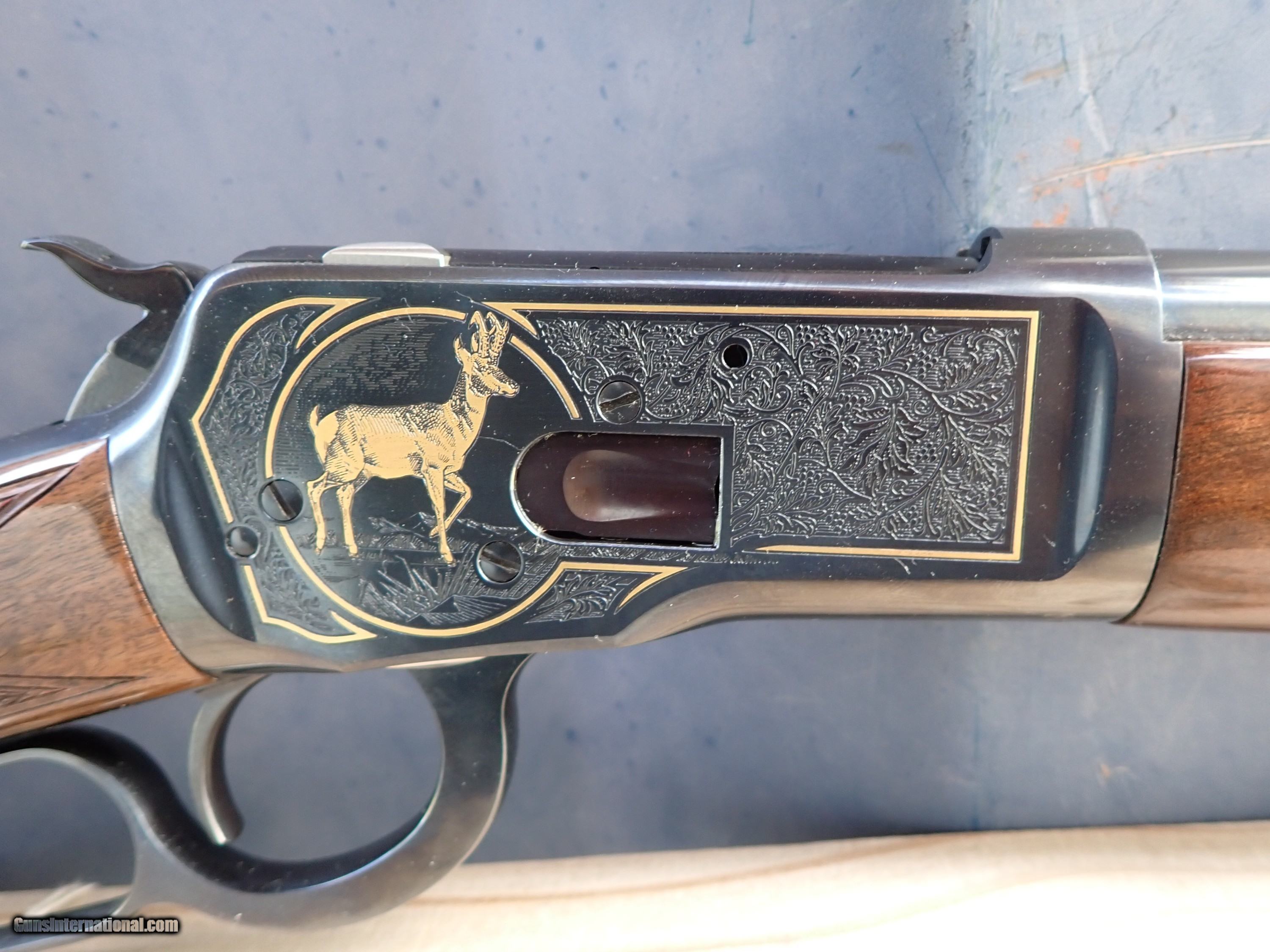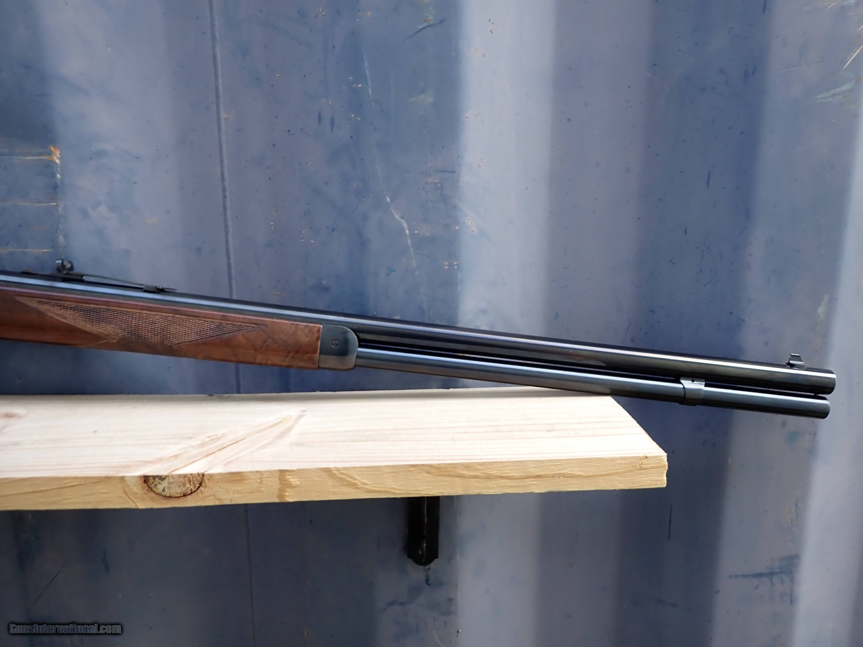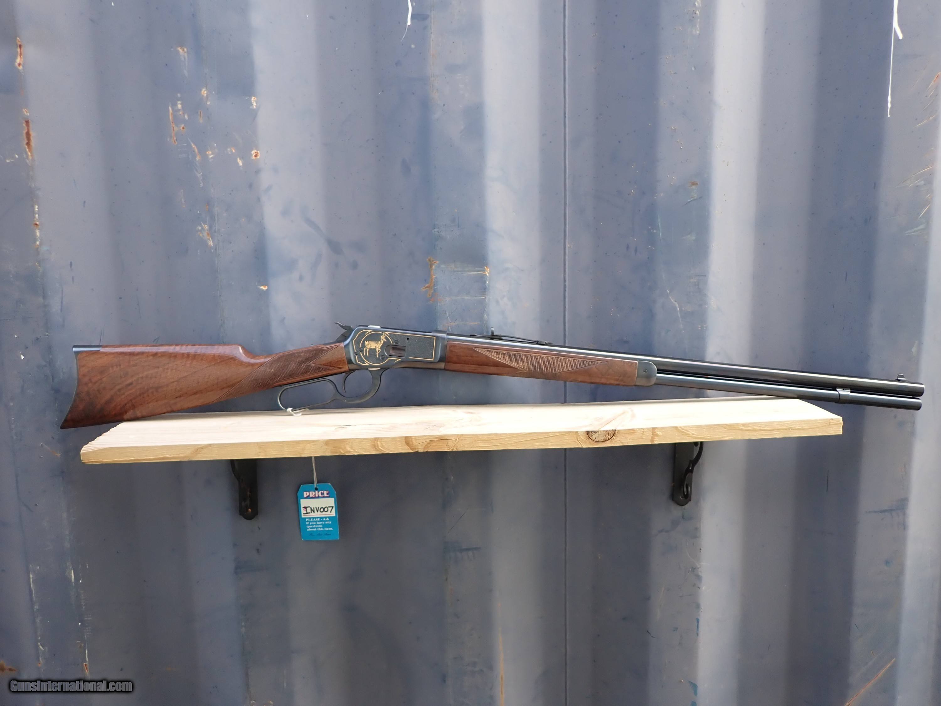 Description: Here is n excellent condition Winchester 1892 chambered for 45 Long Colt. This rifle is engraved and gold inlayed with a pronghorn antelope on the right side and a whitetail buck and doe on the left side. I believe only 1000 of these were made by Winchester/Miroku in the 1990s. Very nice rifle! the original box is included but is torn with a large piece missing and in poor shape. Thanks for looking! $45 shipping, Alaska and Hawaii will be a little more for shipping. Please call with any questions. Please click the BUY NOW button to purchase this item. We are required to charge 8.25% for Texas residents. There is a 3.5% fee if paying by credit card. SOLD Rifle Caliber: .45 Colt Manufacturer: Winchester Model: 1892 Serial Number: NTH0969 Barrel Length: 24 Condition: Excellent Metal Condition: Excellent Wood Condition: Excellent Bore Condition: Excellent |