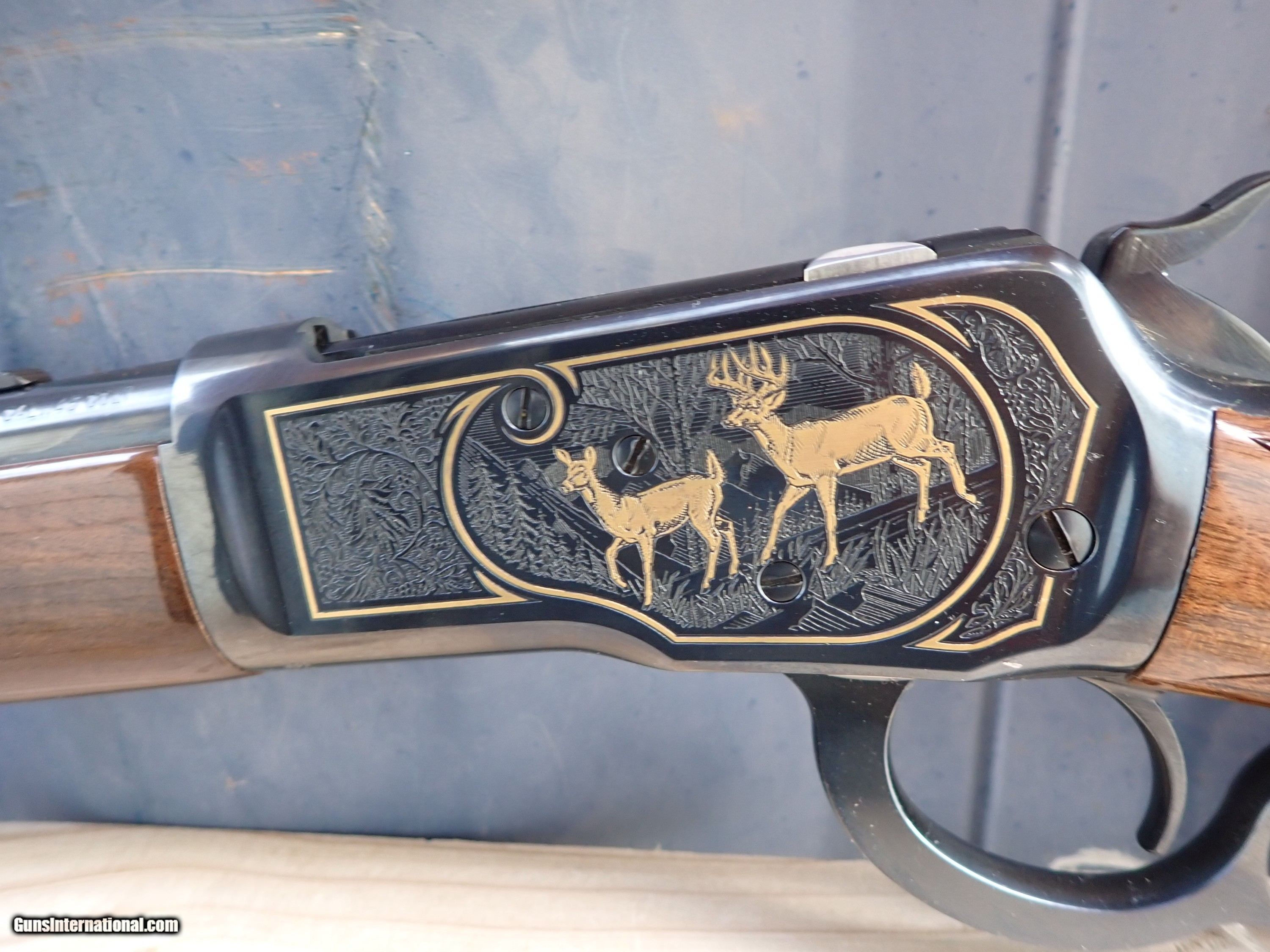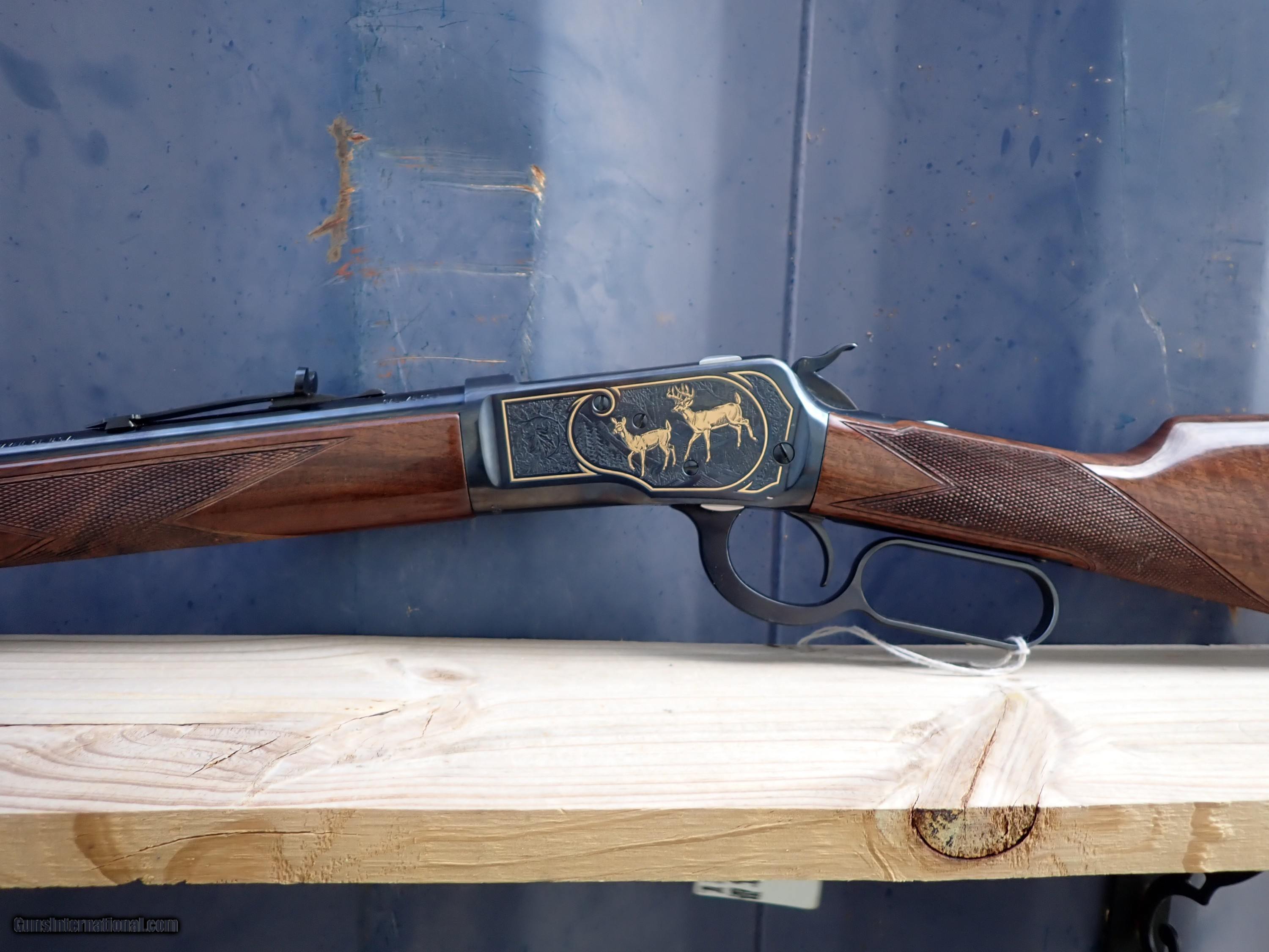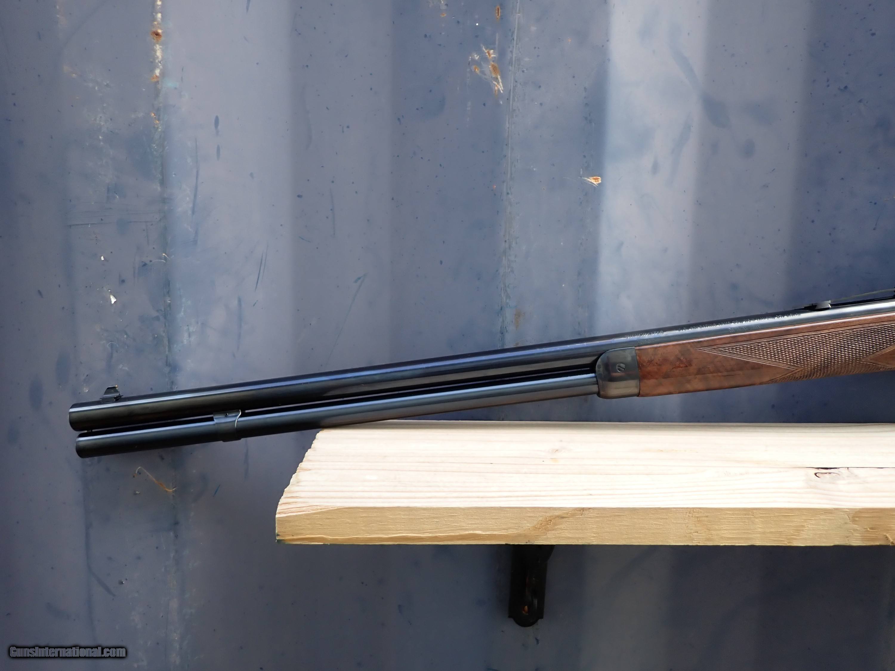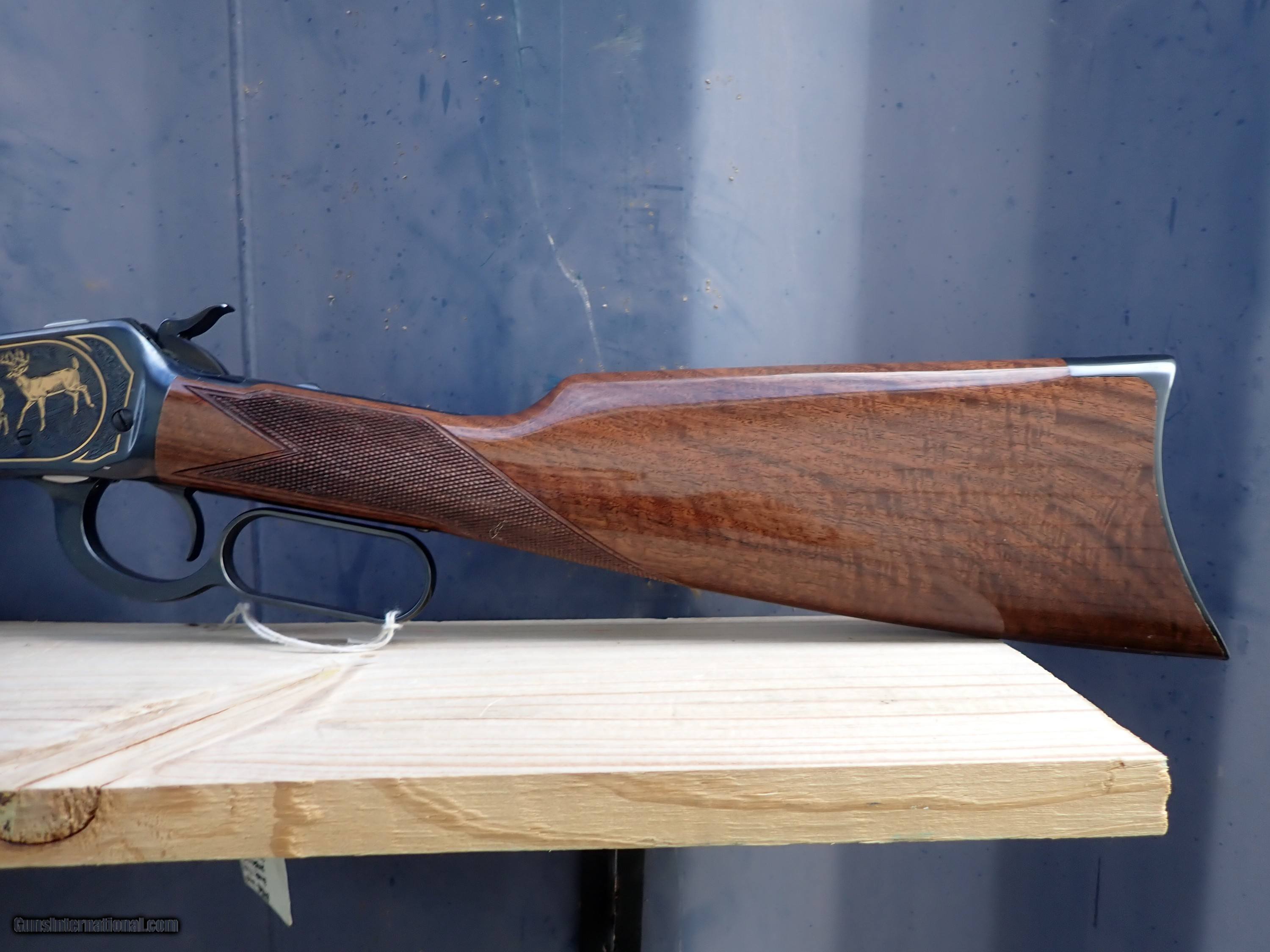 Description: Here is n excellent condition Winchester 1892 chambered for 45 Long Colt. This rifle is engraved and gold inlayed with a pronghorn antelope on the right side and a whitetail buck and doe on the left side. I believe only 1000 of these were made by Winchester/Miroku in the 1990s. Very nice rifle! the original box is included but is torn with a large piece missing and in poor shape. Thanks for looking! $45 shipping, Alaska and Hawaii will be a little more for shipping. Please call with any questions. Please click the BUY NOW button to purchase this item. We are required to charge 8.25% for Texas residents. There is a 3.5% fee if paying by credit card. SOLD Rifle Caliber: .45 Colt Manufacturer: Winchester Model: 1892 Serial Number: NTH0969 Barrel Length: 24 Condition: Excellent Metal Condition: Excellent Wood Condition: Excellent Bore Condition: Excellent |