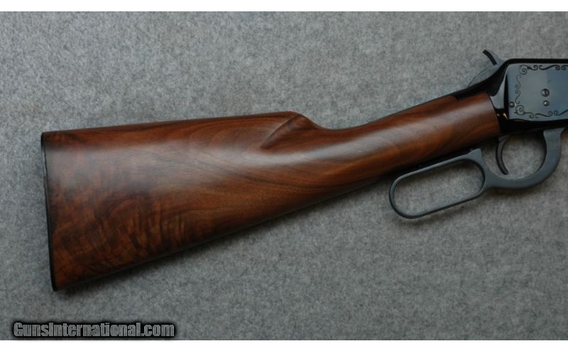 Description: • Firearms are subject to pending sales. • Replies to emails may take 24-72 hours to respond to (excluding weekends). • Although we strive for accuracy, we are not responsible for pictorial, editorial or typographical errors. The pictures provided are the actual pictures of the gun that is for sale, not a stock photo! PUT THE GUN ON YOUR CABELA'S CLUB VISA AND EARN POINTS TOWARDS YOUR NEXT PURCHASE! DON'T FORGET WE DO HAVE A LAYAWAY PROGRAM!Engraved scroll border on each side of the receiver and gold loading trap door SOLD Manufacturer: 1967 Caliber Info: .30-30 Winchester (.30 WCF) Chambers: Full length tubular magazine Metal Condition: Very good with light handling and wear marks Wood Condition: Like new with very light handling marks Bore Condition: Like new bright shinny rifling Barrels: 26 inch octagonal Triggers: Single action Stock: Satin walnut with straight smooth grip Stock Dimensions: LOP - 13 3/8 inch Fore End: Satin walnut with smooth hand hold and black metal cap Butt Pad: Black steel butt plate Weight: 8 pound Sights: Fully adjustable rear sight and bead blade front sight Extras: With Winchester box and owner manual Item Location: Hammond, IN |