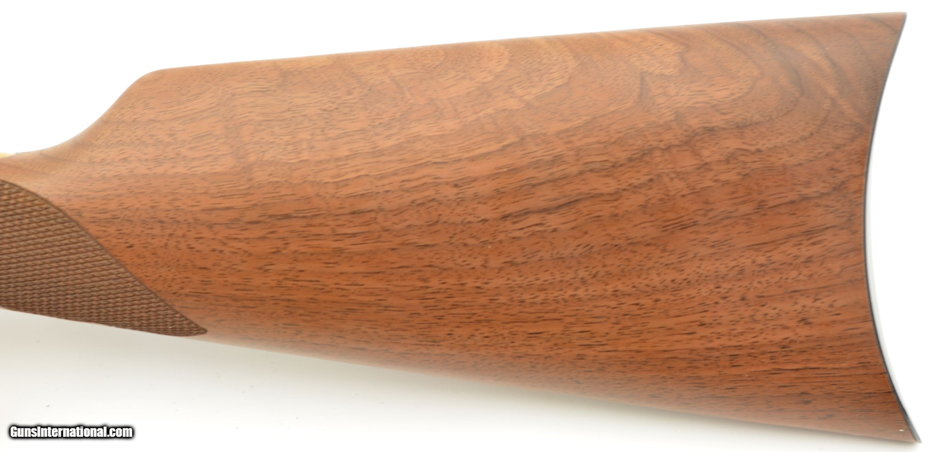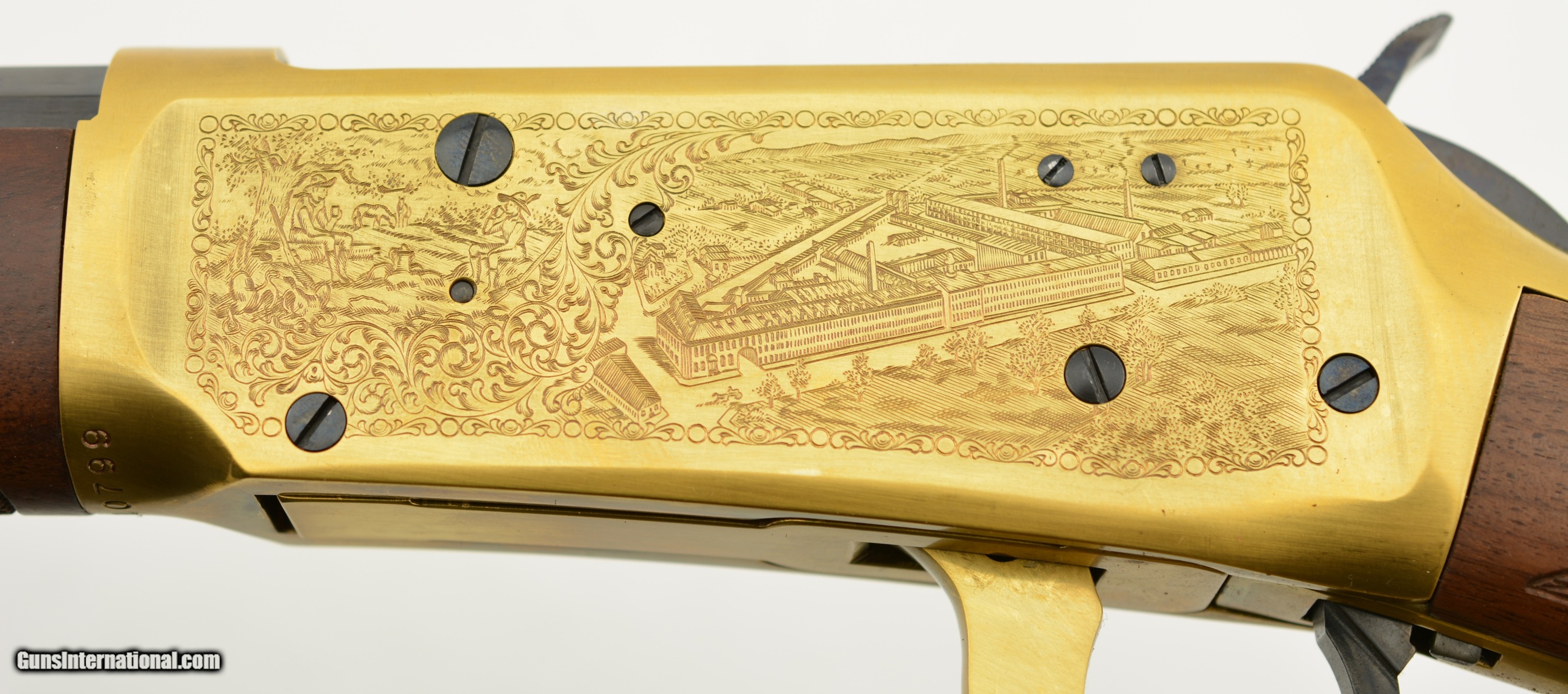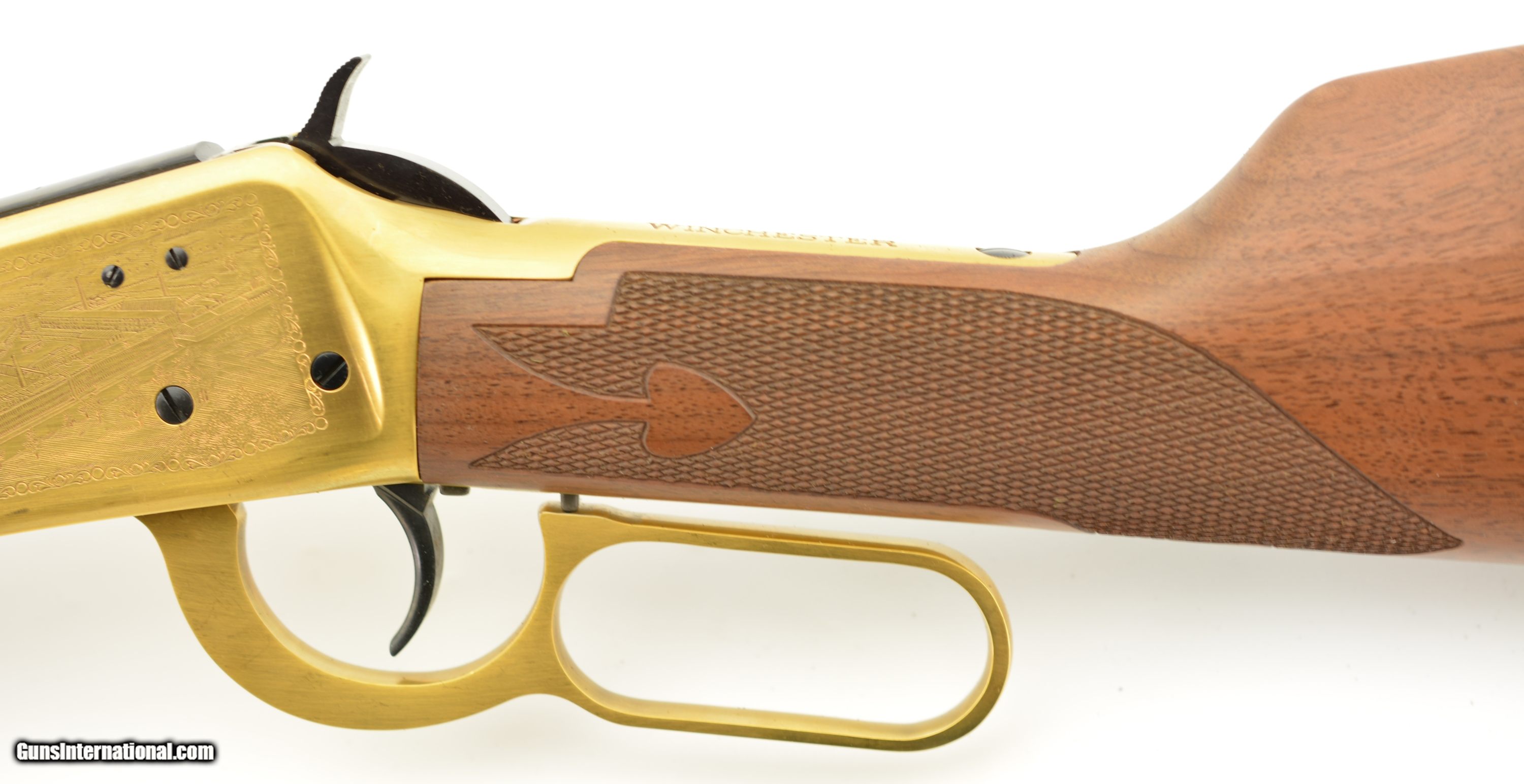 Description: Serial #OFW10799, .38-55, 24 inch octagonal barrel with a bright, excellent bore. This is the “Oliver Winchester" Model 94 lever action commemorative rifle featuring an engraved gold plated receiver with scenes of the Winchester factory on the left side and early frontier scenes on the left with “W.R.A. Co." scroll and gold inlay “Oliver F. Winchester" signature on the barrel with Oliver Winchester medallion “1810-1880" in the butt stock. Manufactured in 1980 the lever gun is in excellent plus condition retaining virtually all, 99% plus original high polish blue on the barrel, magazine tube and butt plate with gold plating on the receiver, lever, forend cap and mag tube cap that is excellent plus with very mild handling marks. The walnut stock is likewise excellent with crisp deluxe checkering showing only light handling marks. The gun comes in the original styrofoam box with commemorative sleeve numbered to the gun along with the hang tag, owners manual and paperwork and is in very good condition with some wear and tearing to the edges. FFL or C&R SOLD Manufacturer: Winchester Model: 94 Serial Number: OFW10799 Caliber Info: .38-55 Gauge Info: .38-55 |