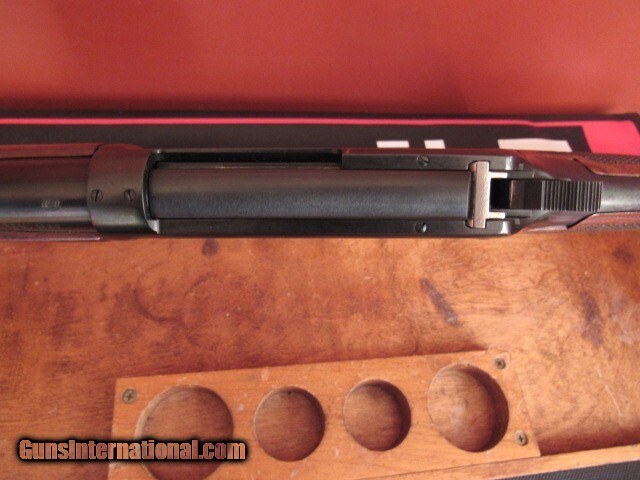 Description: ***** CABIN FEVER SPECIAL - FREE SHIPPING ***** Winchester Model 94AE Legacy made in New Haven, CT, desirable caliber 44 Rem Mag, 24" round barrel with dovetailed front sight, semi-buckhorn rear sight, full mag, checkered walnut stocks, uncapped pistol grip, push button safety in receiver, Winchester logo plastic butt plate, blued finish, lever action rifle with rebounding hammer and top of receiver factory drilled/tapped/plugged for scope mount. CONDITION: Rifle is 99.5% overall showing very little signs of use, just one nick on the right side of the butt stock, no marks or oxidation to any of the bluing, has been fired but bore is a 9.9 of 10. Safety functions properly. No box or paperwork. Scarce version in a very desirable caliber. TERMS: Must ship to FFL dealer only, no C&R. 3 day non-firing inspection. Buyer pays return shipping. Payment by personal check, bank check, or USPS money order only, sorry no credit cards, no electronic payments. Have a competent gunsmith give it a clean bill of health before using as it has not been test-fired. Packed with great care to survive the trip. Ships by FedEx Ground. SOLD Rifle Caliber: .44 Magnum Manufacturer: Winchester Model: 94AE Legacy Serial Number: 6334382 Barrel Length: 24" round Condition: Excellent Metal Condition: Excellent Wood Condition: Excellent Bore Condition: Mint Action: Lever Triggers: Standard/plain Stock: Checkered walnut Butt Pad: Plastic Sights: Standard Item Location: New York |