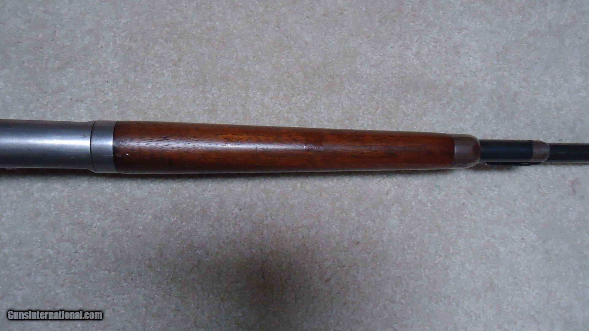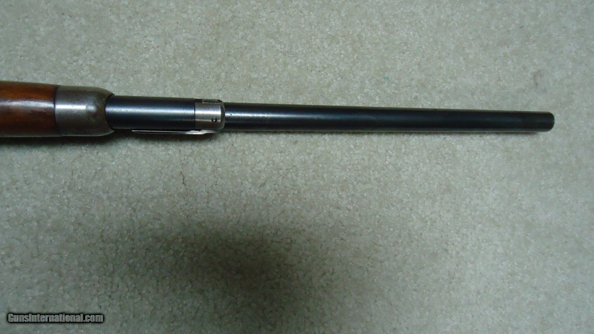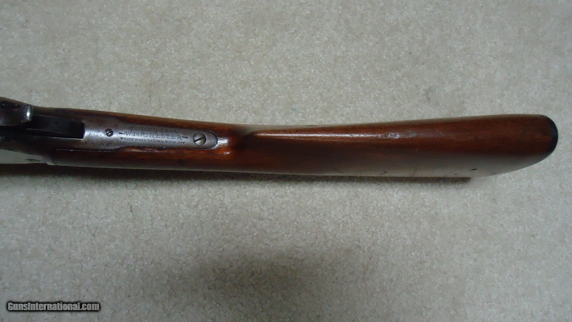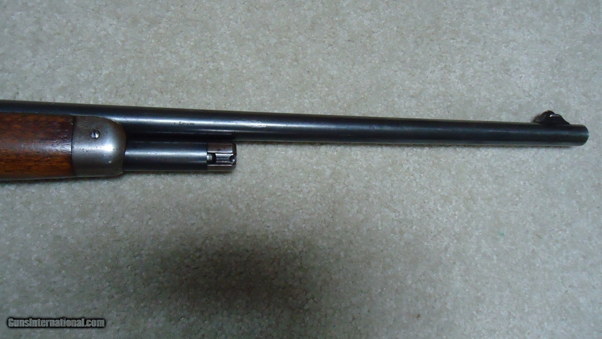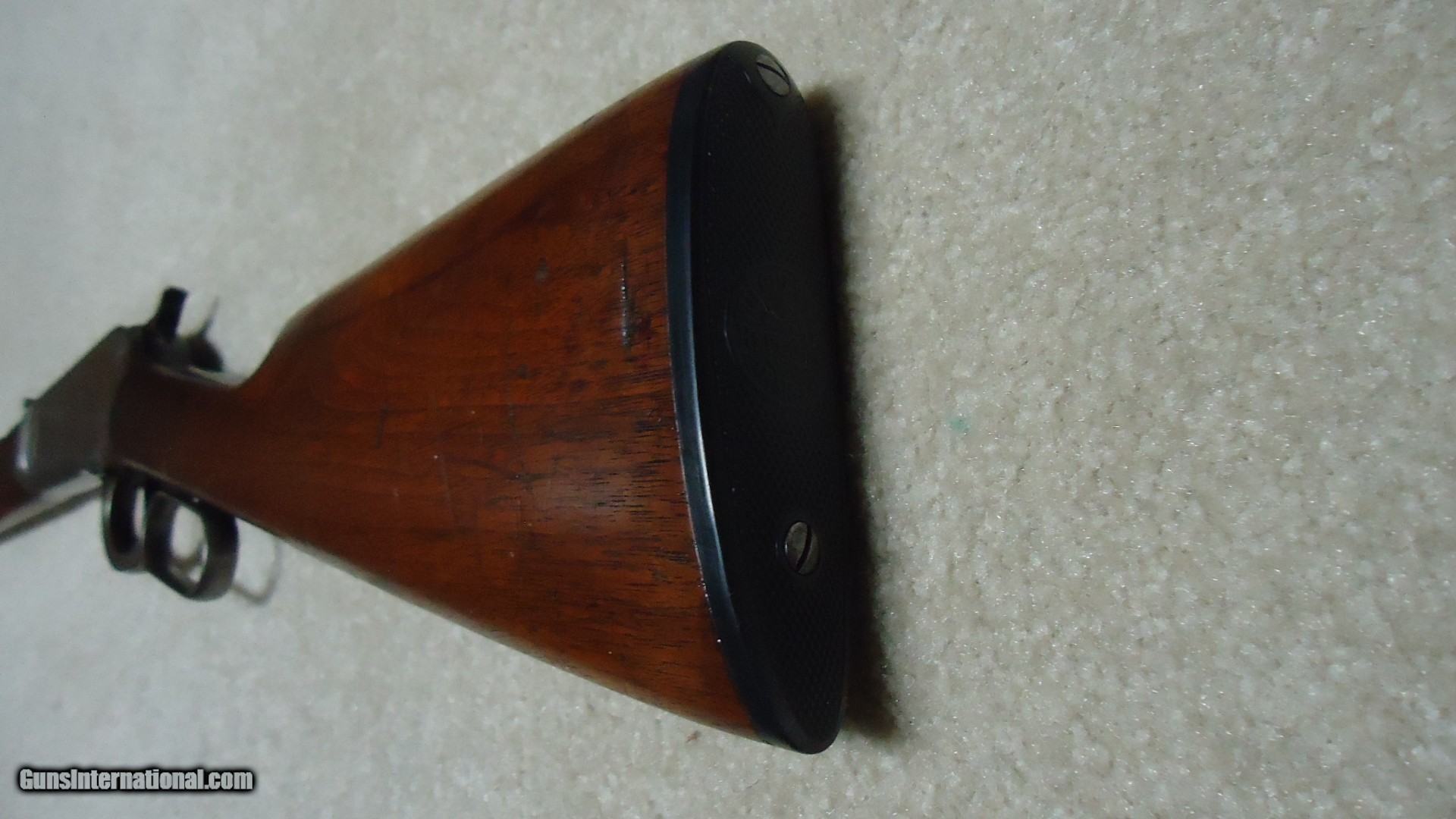Description: 1886 EXTRA LIGHTWEIGHT, TAKEDOWN, .33WCF CALIBER, #155XXX, MADE 1918. One of the last of the Pre-Bolt action years 1886s, this was a popular big game rifle made portable by the takedown feature. This is the only Model 1886 expressly chambered for a smokeless powder cartridge and is merely the big .45-70 case necked down to .338" and firing a jacketed soft point 200 grain slug. This one has the standard 24" light weight round barrel with half magazine and excellent Winchester embossed hard rubber shotgun butt plate. The barrel retains fine blue showing light age and is fitted with a flat top buckhorn rear sight with elevator bar intact and a Lyman "Jack Front Sight" which is a half moon with ivory bead. the receiver is mainly gray with some brown spotting with excellent blue on the bolt. Screw heads look unturned. Fine butt stock and forend show light handling only with tight wood to metal fit. Tight action , takedown and about excellent bore- any minor corrosion is very surface and scattered and ought to scrub out or shoot out. A classic 104 year old 1886 that still has a lot of life left in it! SOLD Rifle Caliber: .33 WCF Manufacturer: Winchester Model: 1886 EXTRA LIGHT Serial Number: 155XXX Barrel Length: 24 Condition: VG |