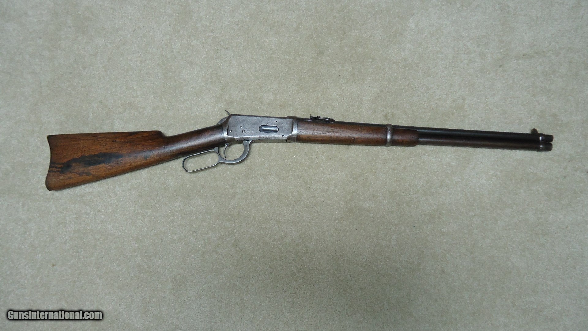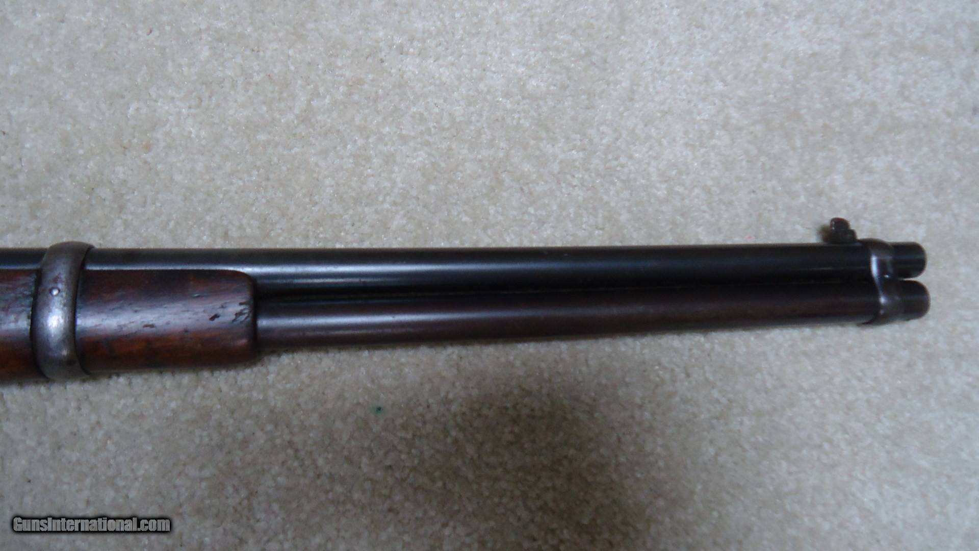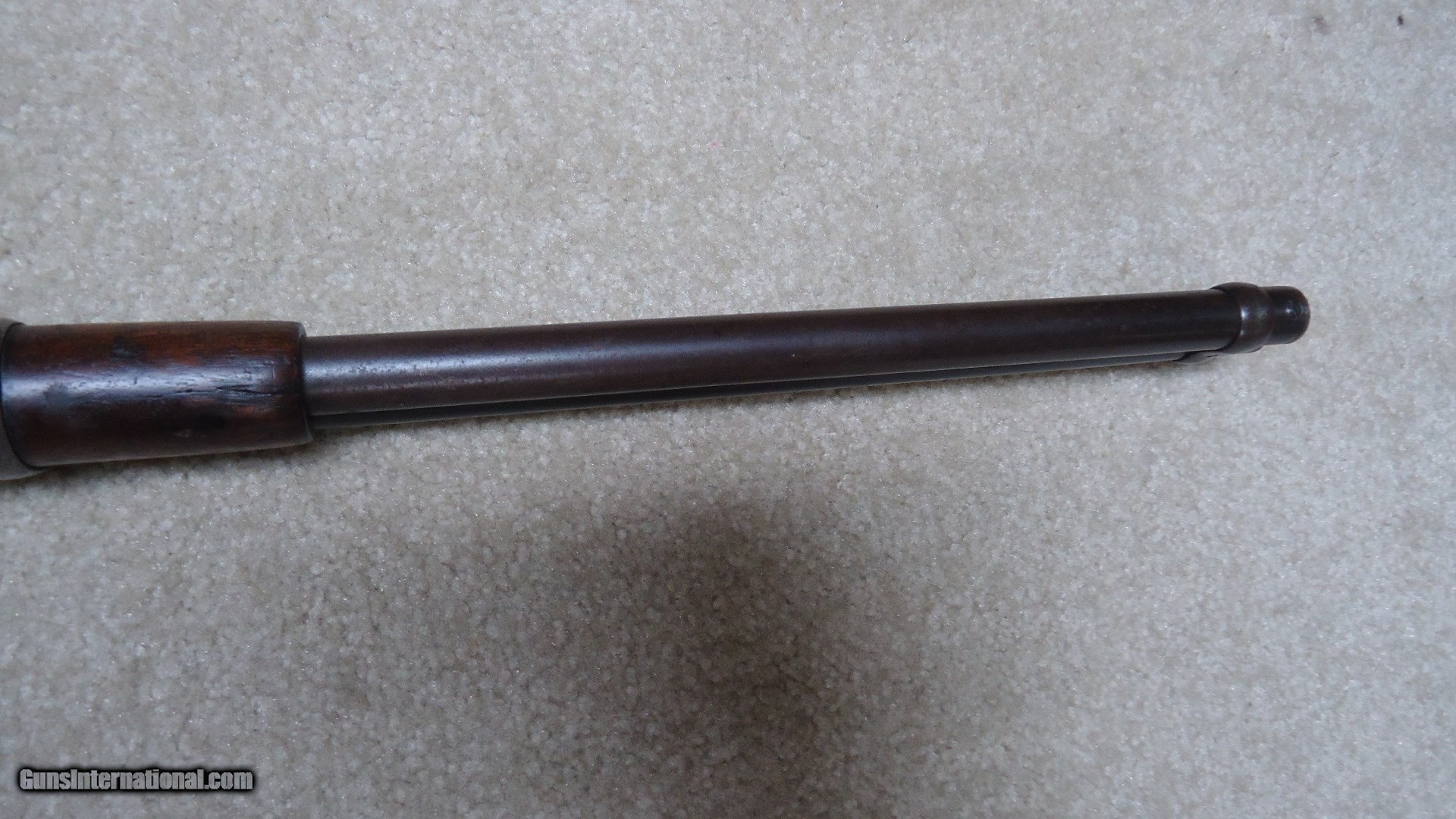 Description: 1894 SADDLE RING CARBINE IN SCARCE .25-35, #971XXX, MADE 1925. This is a well used, but cared for ’94. Has all the correct late barrel markings. Barrel shows good aged blue with the mag. tube showing the aged blue mixing plum, mostly gray/brown uncleaned receiver with exc. screws and fine blue on the loading gate. Generally about excellent walnut stock and forend showing a few handling marks on the comb of the stock and light handling on the forend. There is some dark, almost black staining on the right side of the butt stock- probably from powder solvent running out of the receiver during cleaning- should be fairly easy to remove. Correct carbine rear sight with slide intact. Tight wood to metal fit, tight action, and exc. sharp bore! Hard to find caliber. SOLD Curio/Relic: Yes Manufacturer: Winchester Model: 1894 SADDLE RING CARBINE Serial Number: 971XXX Caliber Info: .25-35 WCF Condition: fine Barrels: 20 |