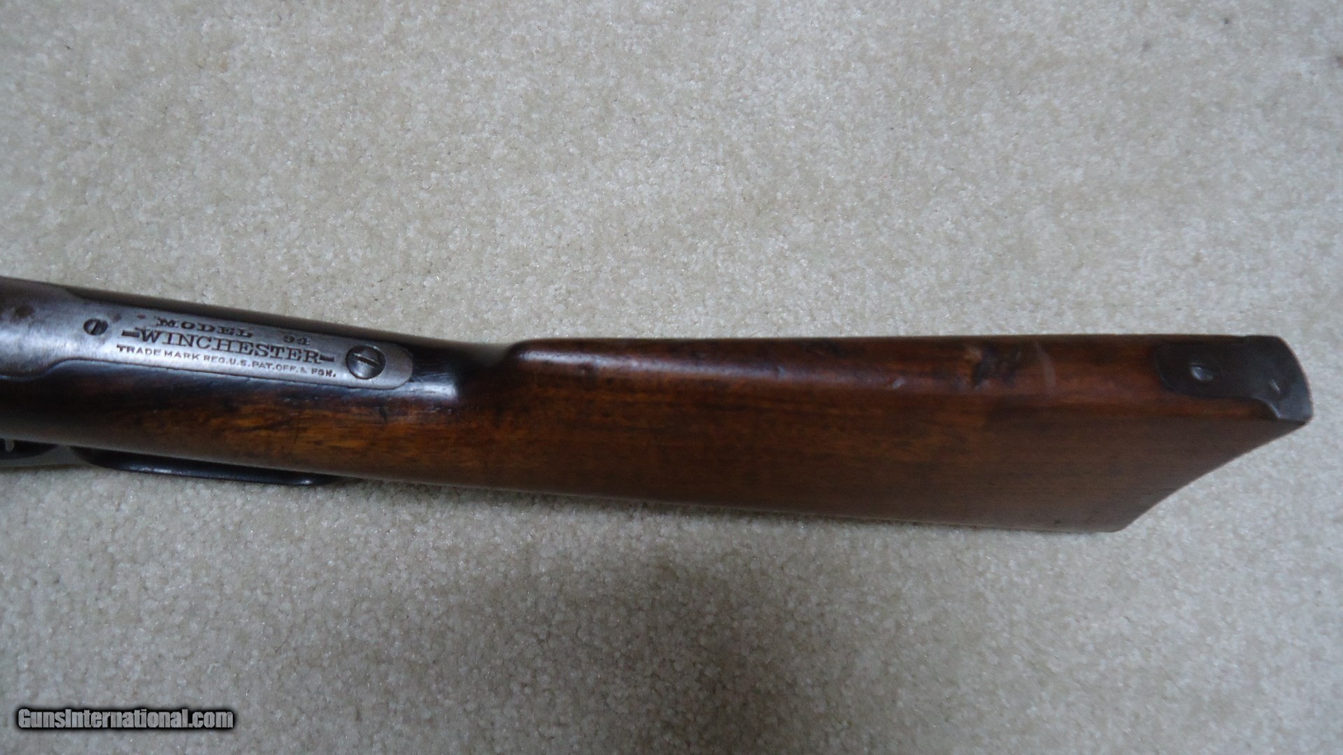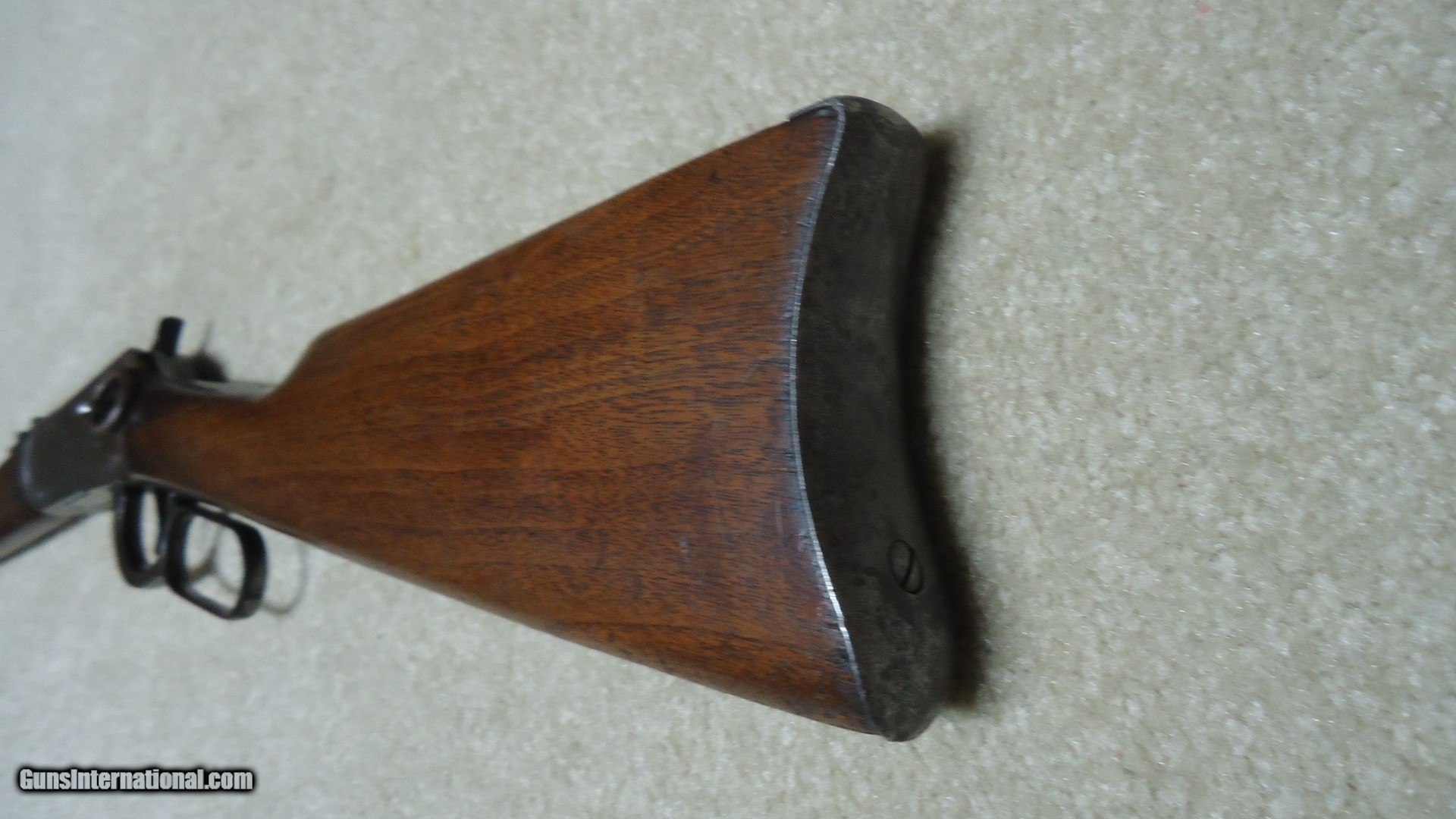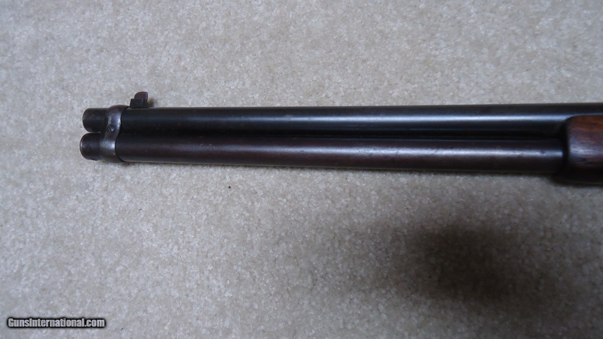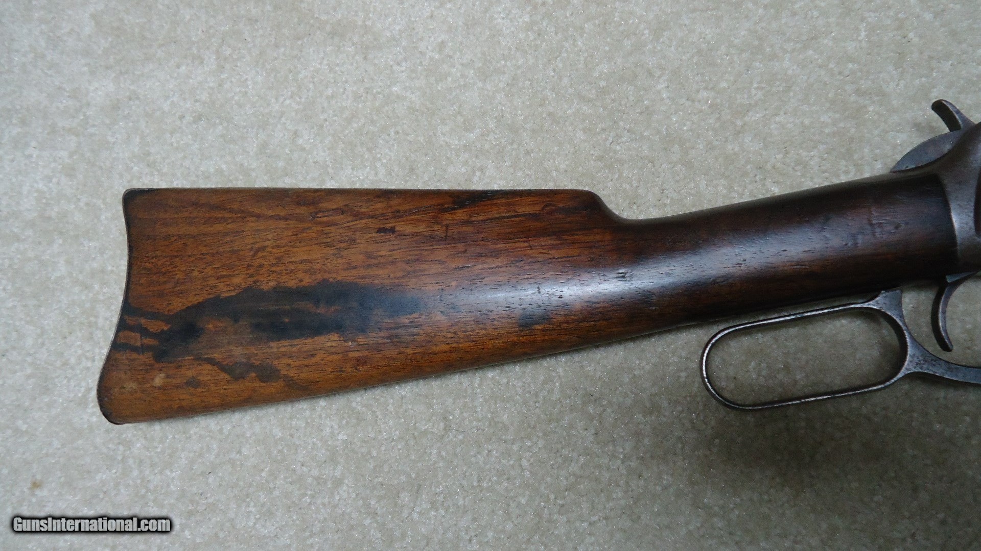 Description: 1894 SADDLE RING CARBINE IN SCARCE .25-35, #971XXX, MADE 1925. This is a well used, but cared for ’94. Has all the correct late barrel markings. Barrel shows good aged blue with the mag. tube showing the aged blue mixing plum, mostly gray/brown uncleaned receiver with exc. screws and fine blue on the loading gate. Generally about excellent walnut stock and forend showing a few handling marks on the comb of the stock and light handling on the forend. There is some dark, almost black staining on the right side of the butt stock- probably from powder solvent running out of the receiver during cleaning- should be fairly easy to remove. Correct carbine rear sight with slide intact. Tight wood to metal fit, tight action, and exc. sharp bore! Hard to find caliber. SOLD Curio/Relic: Yes Manufacturer: Winchester Model: 1894 SADDLE RING CARBINE Serial Number: 971XXX Caliber Info: .25-35 WCF Condition: fine Barrels: 20 |