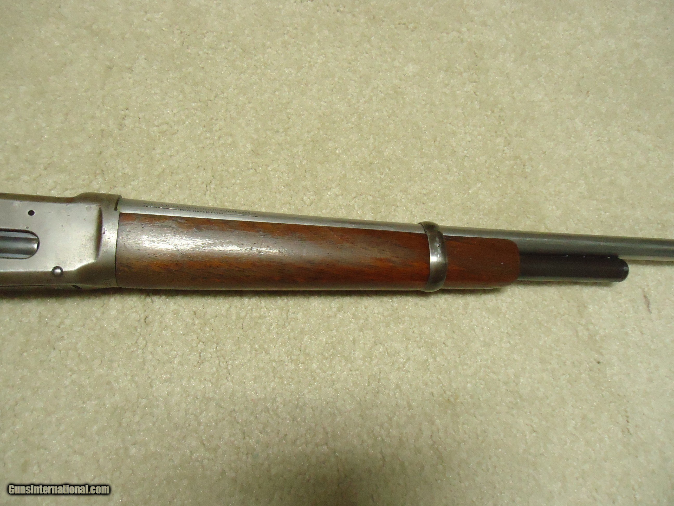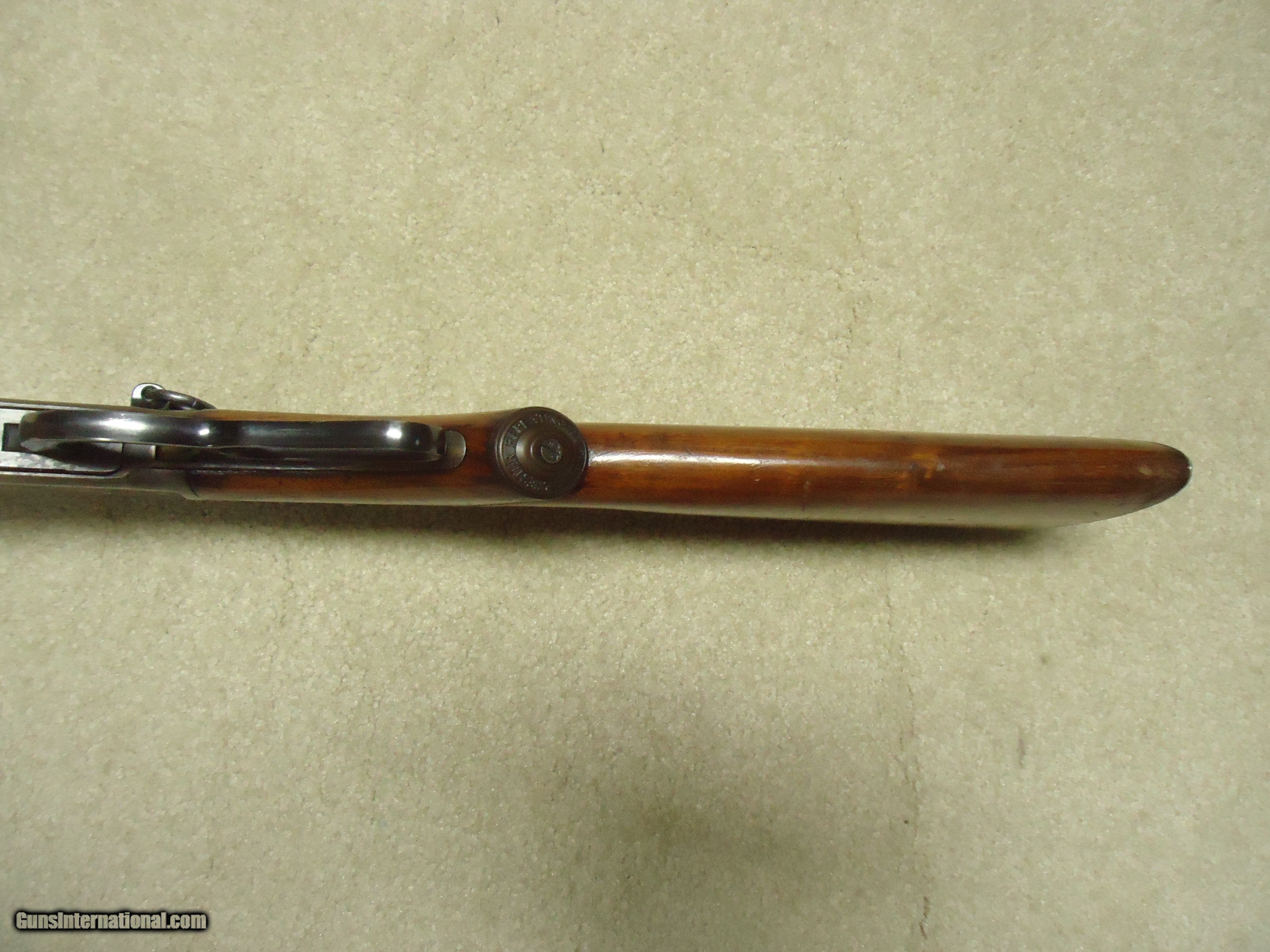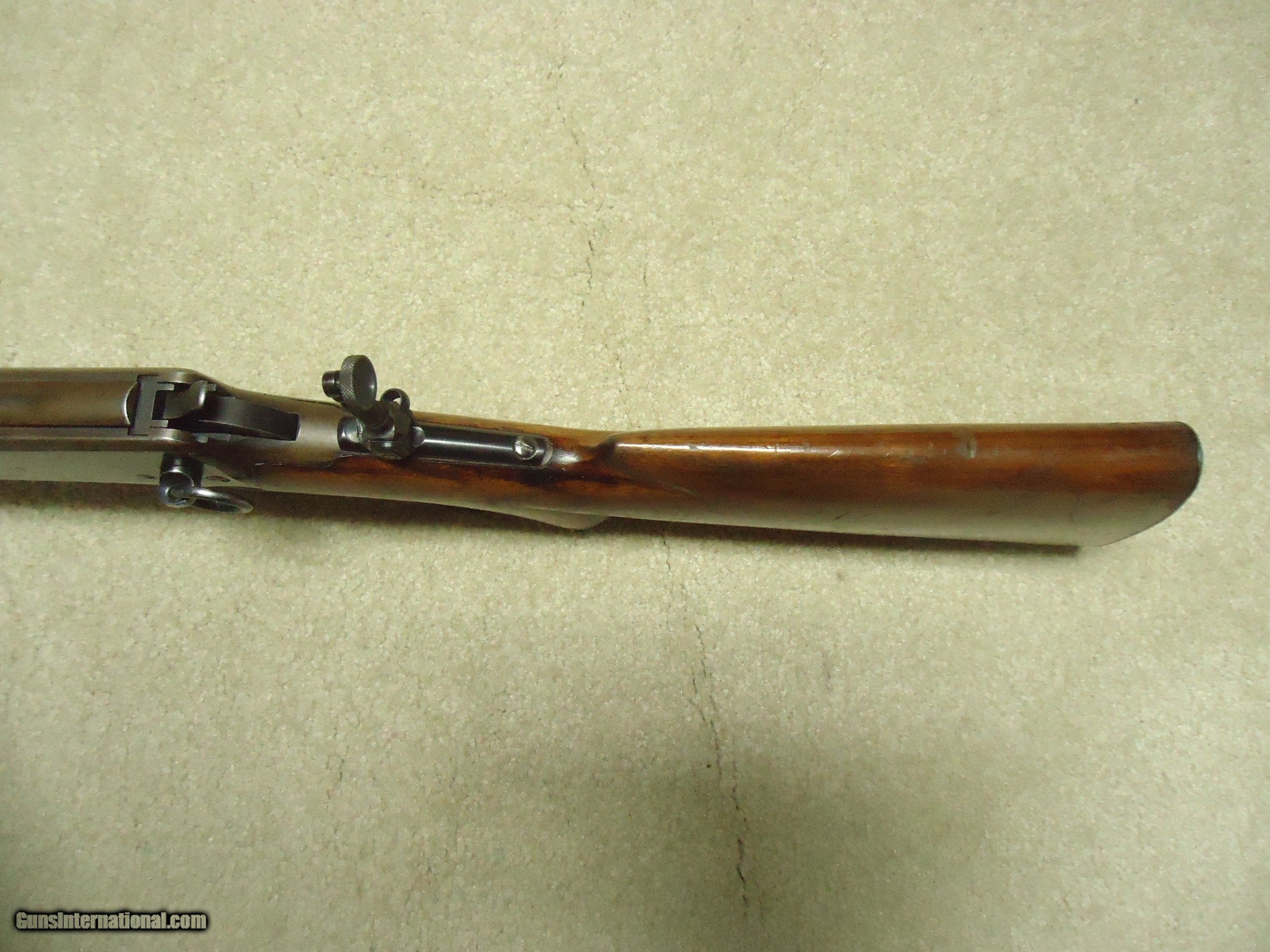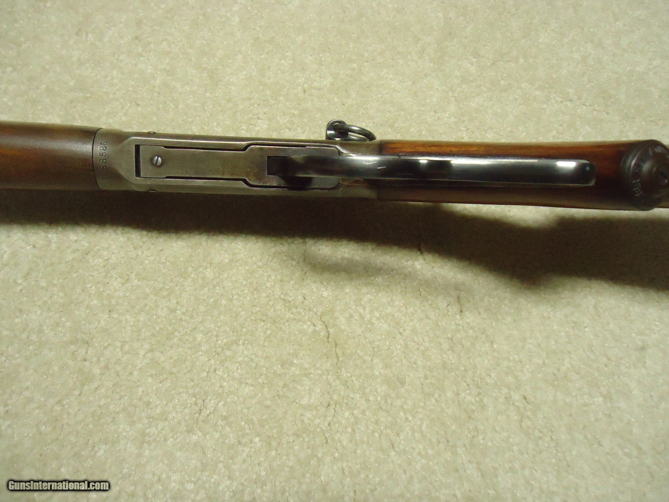 Description: A TRULY ONE-OF-A-KIND MODEL 1894 SADDLE RING CARBINE! I'm not sure I've ever offered, much less seen, a unique 1894 of which there are no others identical; but here it is! This one is is chambered in .38-55 and has a plain pistol grip with late-style serrated steel shotgun butt stock. It also has a 2/3 magazine... now here's the kicker, IT HAS A STAINLESS STEEL BARREL MADE WITHOUT A REAR "SEAT" OR DOVETAIL for a rear sight. The serial number is 1038XXX which places it as manufactured in 1928. This is important as the stainless steel barrel option was only offered from about 1926-1931 and was rarely ordered. Any stainless steel barrel '94 is a rarity, but one made without a rear dovetail and placed on a pistol grip saddle ring carbine is pretty much unheard of. Add to that the .38-55 chambering at such a late date, and I'd think that unless someone ordered two identical carbines like this, it is a one-of-a-kind! This one has the correct factory proof marks on the receiver and barrel. The stainless steel barrels could not be blued, so they were "Japanned" finished (like a black paint). As this tended to scratch and peel off, usually owners of these simply steel-wooled off the remaining black finish. Such is the case with this example. There are faint scratch lines indicating this was done. The barrel has the correct late style "MODEL 94" and "-STAINLESS STEEL-" markings. The 2/3 length magazine tube retains fine blue and there is still some good blue on the barrel band. The receiver blue has mostly dulled and flaked to a brownish-gray with some aged blue more on the left side panel. Fine deep blue on the loading gate and lever . Possibly some cold blue was rubbed on at some point- easy to remove. The saddle ring is intact. Stock has the correct Winchester embossed pistol grip cap and has the “fluted” comb typical of stocks made in the late 1920s. Exc. stock and forend. Wood shows light handling only. The upper tang is fitted with a later unmarked Lyman or Marble tang sight in the factory holes. Appears the rear tang screw too long and is not pulling the lower/upper tangs tight as the upper tang appears raised slightly from the wood. All very minor. Tight action, strong safety half-cock and perfect bore. SOLD Curio/Relic: Yes Rifle Caliber: .38-55 Winchester Manufacturer: WINCHESTER Model: M-94 STAINLESS SRC Serial Number: 1038XXX Barrel Length: 20" STAINLESS ST. Condition: VG Bore Condition: EXCELLENT |