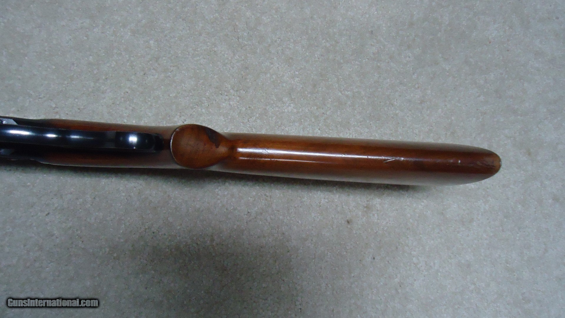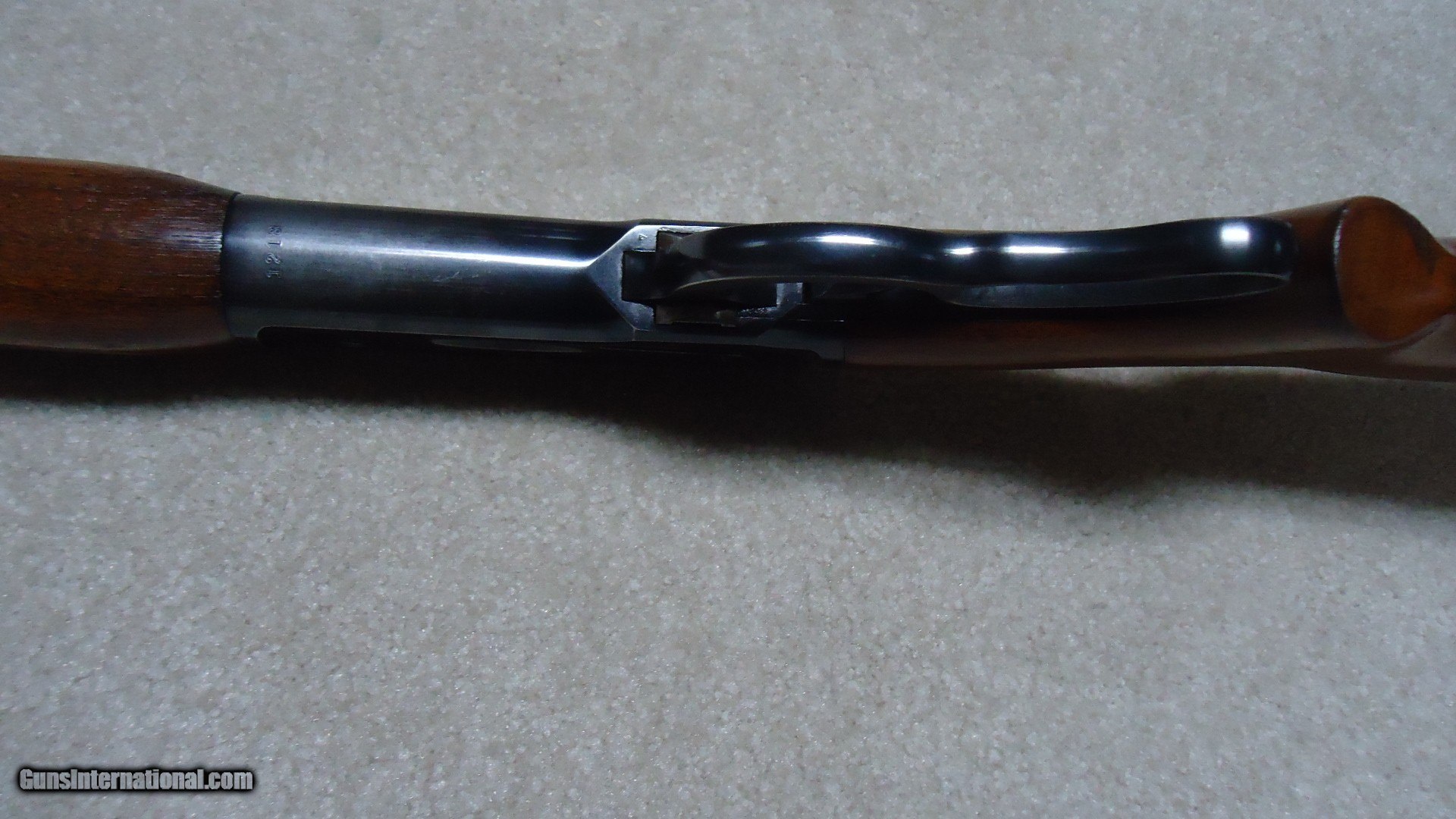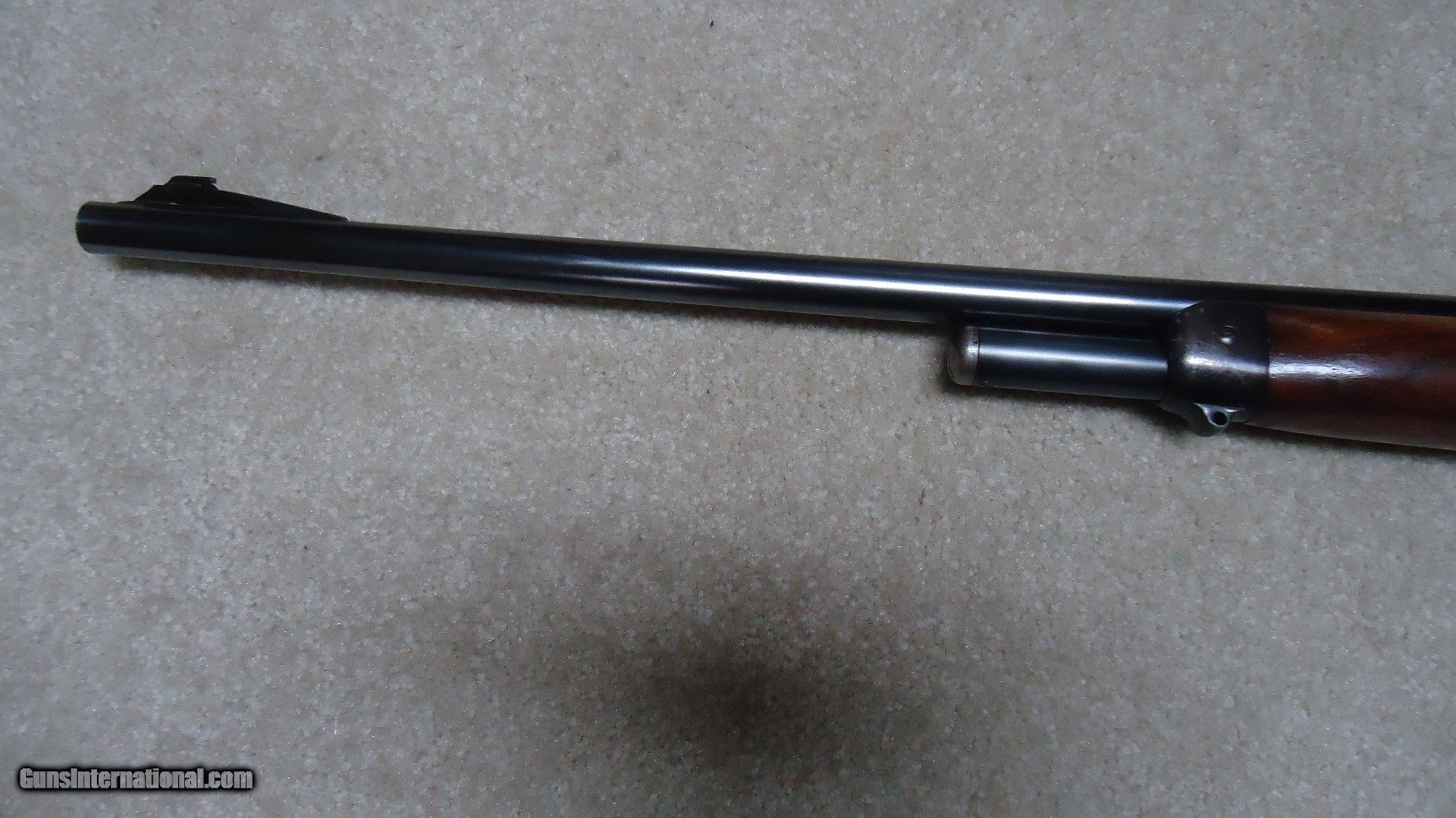 Description: EXCELLENT FIRST YEAR PRODUCTION, LONG TANG MODEL 71 .348WCF WITH BOLT PEEP, #12XX, MADE 1936! It would be hard to find a lower serial number than this one! Excellent condition overall with the barrel and mag tube showing about all the blue. The receiver, including the upper tang and bolt also show about all the bright blue with only some thinning on the bottom by the serial number. Excellent wood with tight wood to metal fit showing very little wear or handling and only a couple of small rub spots in the finish (not the wood) on each side of the forend and a small area on the bottom of the pistol grip. Even the forend tip which has a factory super grade swivel attachment shows much good blue. Tight action, correct bolt peep, original buckhorn rear sight and ramped front sight, bright excellent bore. Great 85+ year old first year M-71! SOLD Curio/Relic: Yes Manufacturer: Winchester Model: MODEL 71 Serial Number: 12XX Barrel Length: 24 Condition: EXCELLENT Bore Condition: EXCELLENT |