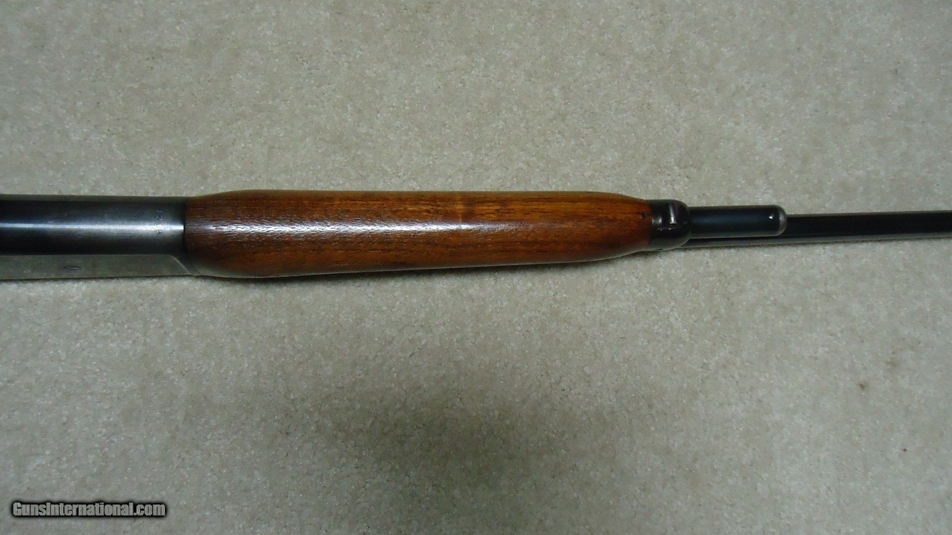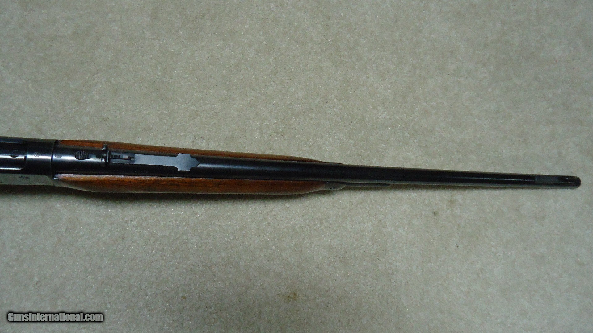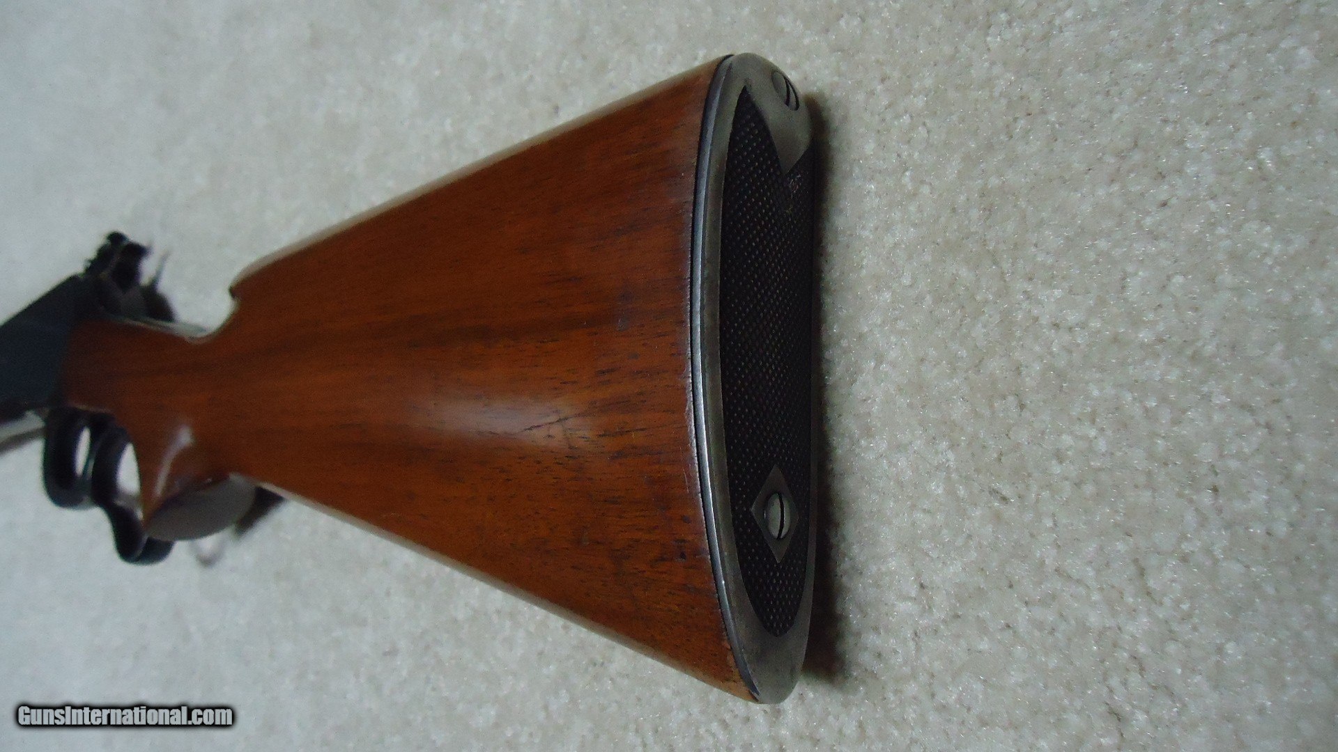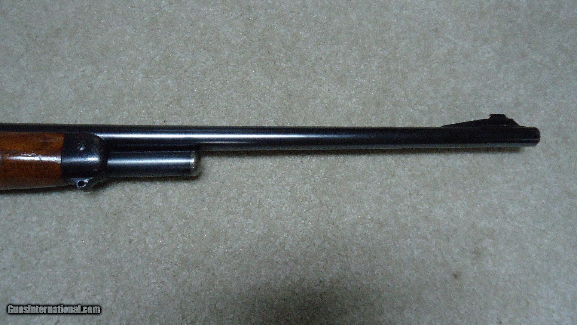 Description: EXCELLENT FIRST YEAR PRODUCTION, LONG TANG MODEL 71 .348WCF WITH BOLT PEEP, #12XX, MADE 1936! It would be hard to find a lower serial number than this one! Excellent condition overall with the barrel and mag tube showing about all the blue. The receiver, including the upper tang and bolt also show about all the bright blue with only some thinning on the bottom by the serial number. Excellent wood with tight wood to metal fit showing very little wear or handling and only a couple of small rub spots in the finish (not the wood) on each side of the forend and a small area on the bottom of the pistol grip. Even the forend tip which has a factory super grade swivel attachment shows much good blue. Tight action, correct bolt peep, original buckhorn rear sight and ramped front sight, bright excellent bore. Great 85+ year old first year M-71! SOLD Curio/Relic: Yes Manufacturer: Winchester Model: MODEL 71 Serial Number: 12XX Barrel Length: 24 Condition: EXCELLENT Bore Condition: EXCELLENT |