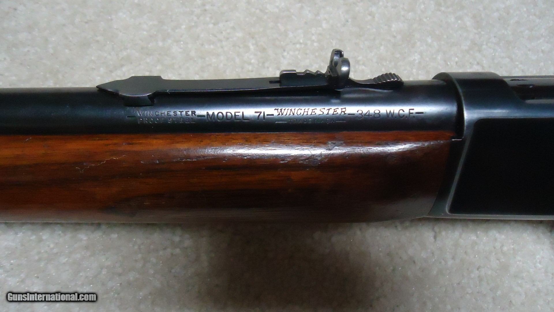 EXCELLENT FIRST YEAR PRODUCTION, LONG TANG MODEL 71 .348WCF WITH BOLT PEEP, #12XX, MADE 1936!