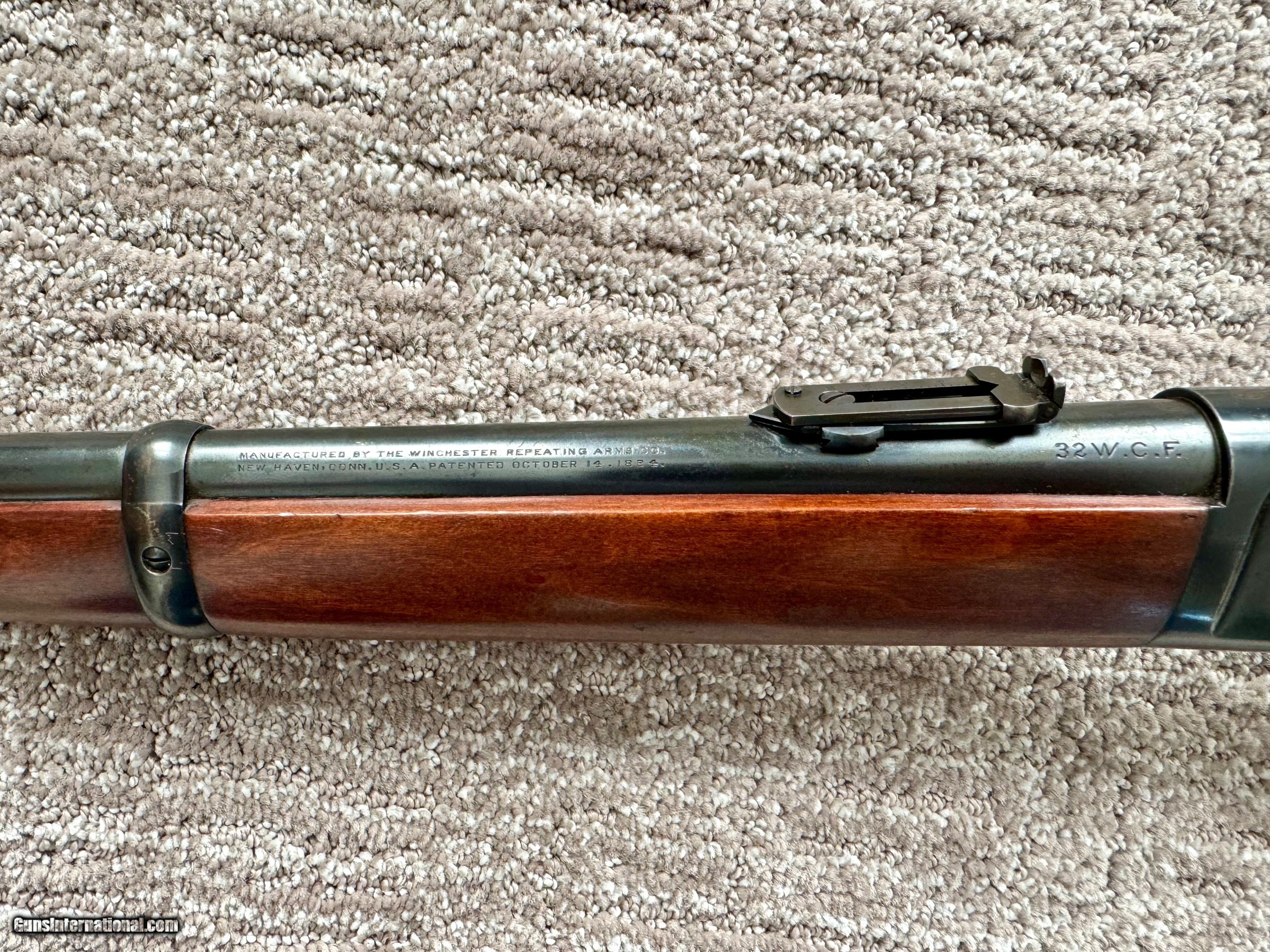 Description: Fantastic Model 1892 Saddle Ring Carbine in 32 WCF! receiver and barrel retains nearly all of the bright blueing. Minor wear around the saddle ring. Case hardening still visible on lever and hammer. Wood is in great condition with minor handling marks for the age. Pristine condition for a standard grade carbine! SOLD Curio/Relic: Yes Rifle Caliber: .32-20 Winchester Manufacturer: Winchester Model: Model 1892 Carbine Condition: 95% Bore Condition: Excellent Barrel Type: Round Manufacture Date: 1911 |