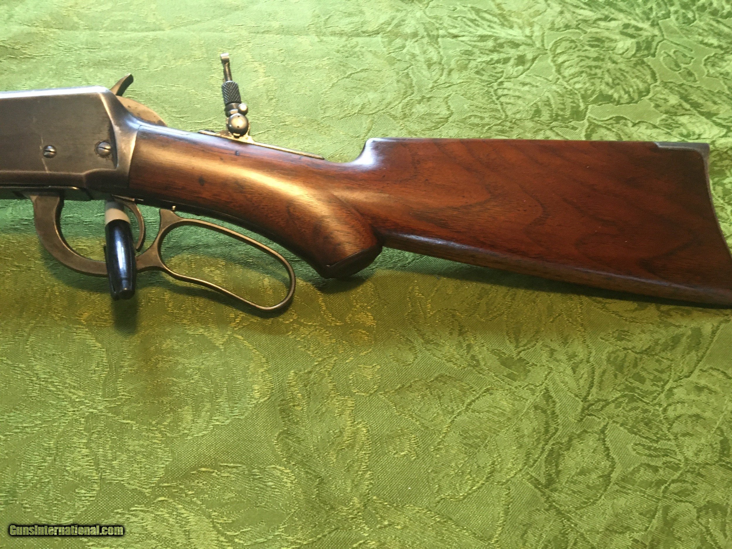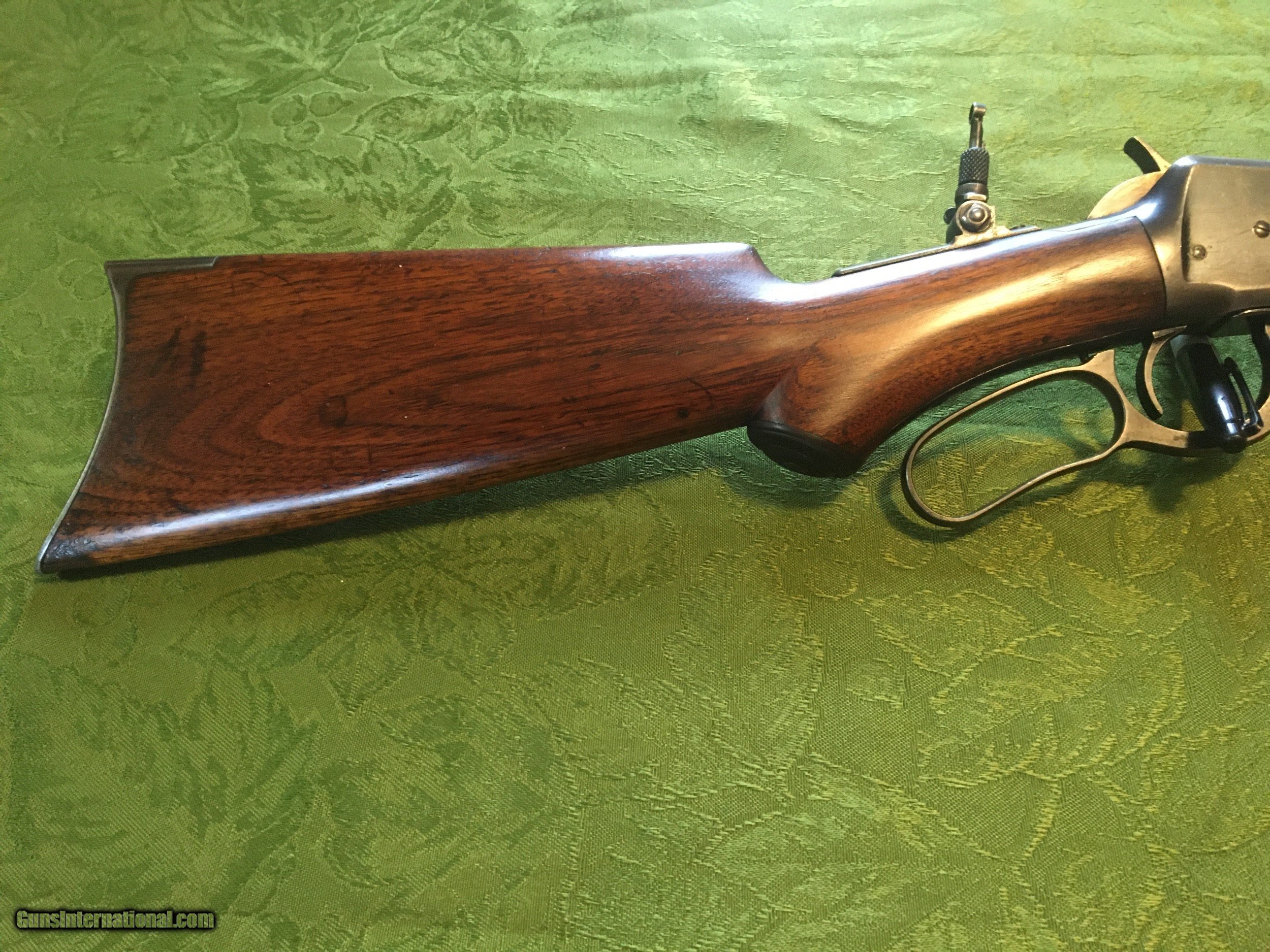 Description: Model 1894 semi deluxe 38-55 cal. Rifle! It hasa 26" octagon rapid taper barrel! It also has button or half mag. The sights include a rear tang and period correct front and Rocky Mountain rear! The uncheckered pistol grip stocks are sound and the grip cap is correct hard rubber!The metal is a pleasing patina finish with nice eye appeal! Serial number 192163 Circa 1899!Very nice early 1894 semi deluxe Winchester in the desirable 38-55 cal.! SOLD Curio/Relic: Yes Manufacturer: Winchester Model: 1894 Serial Number: 192163 Barrel Length: 26 Caliber Info: 38-55 Condition: Very good Metal Condition: Very good Wood Condition: Very good Bore Condition: Very good |