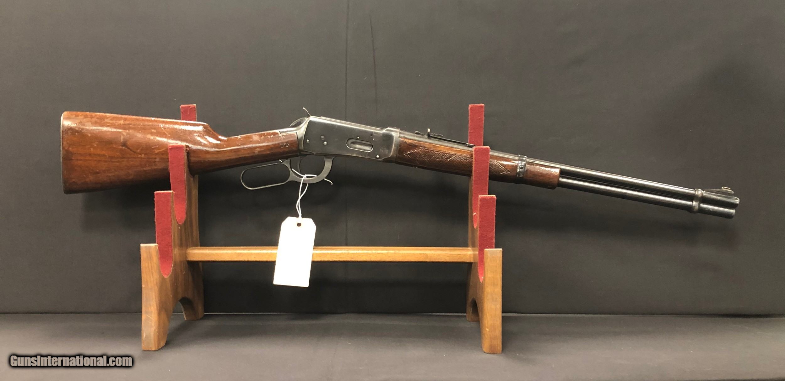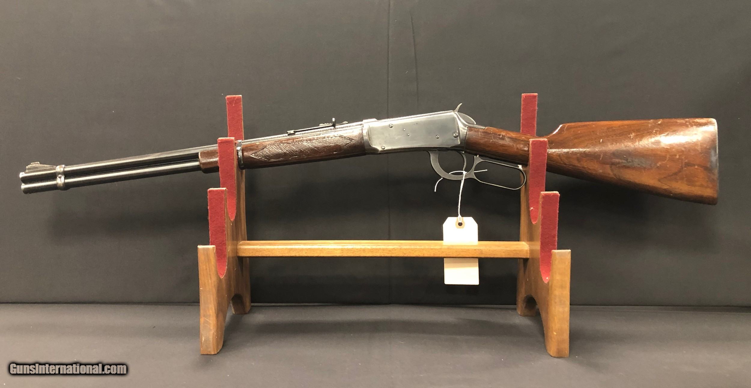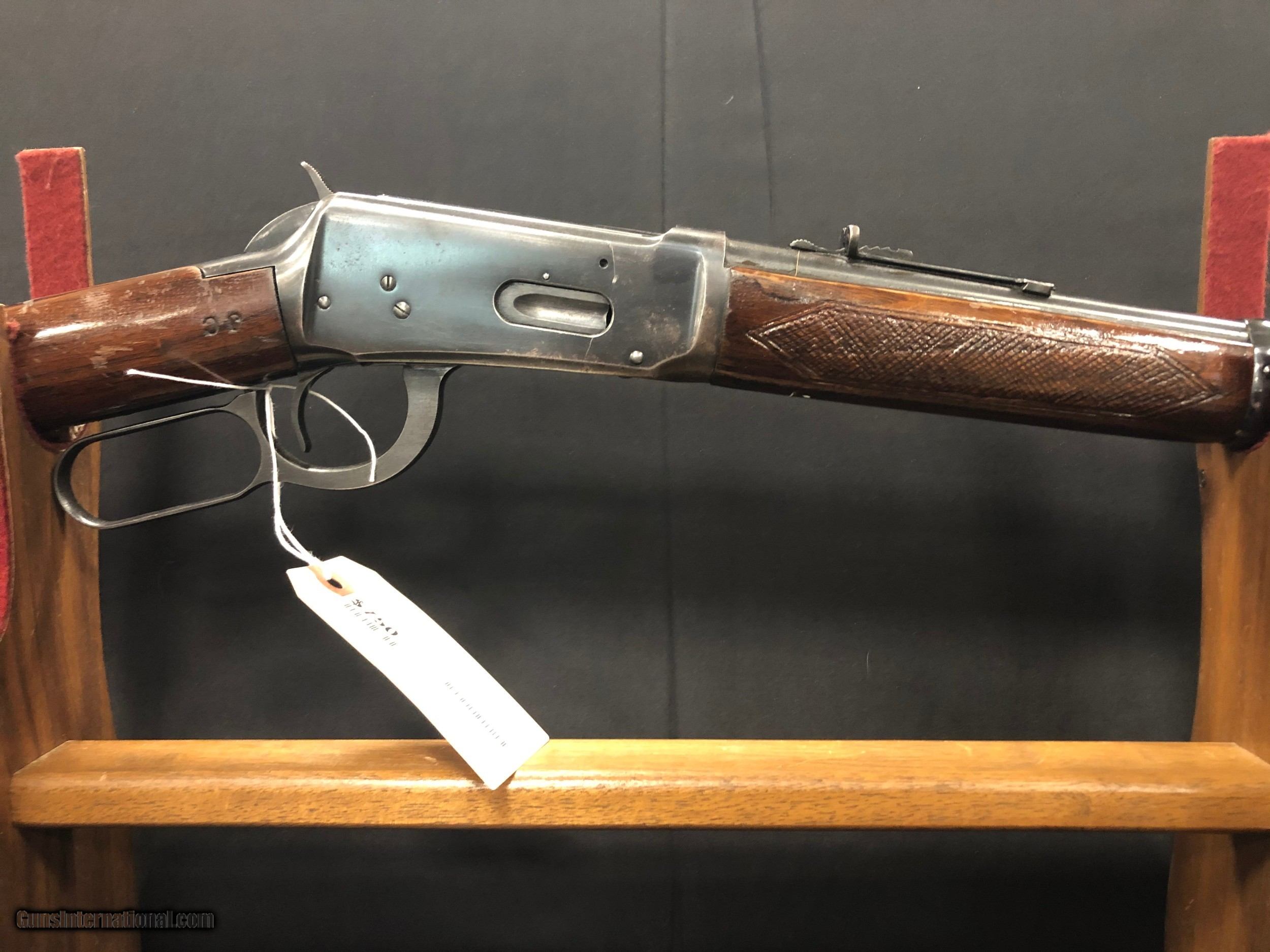 Description: Designed by John Browning in 1894, the Winchester Model 94 quickly became one of the most popular hunting rifles both today and in the years it was made. Gun has some marks on the stock and forend, as well as a scratch on the receiver. It is in otherwise good condition. Has initials "J.C" on the stock.
