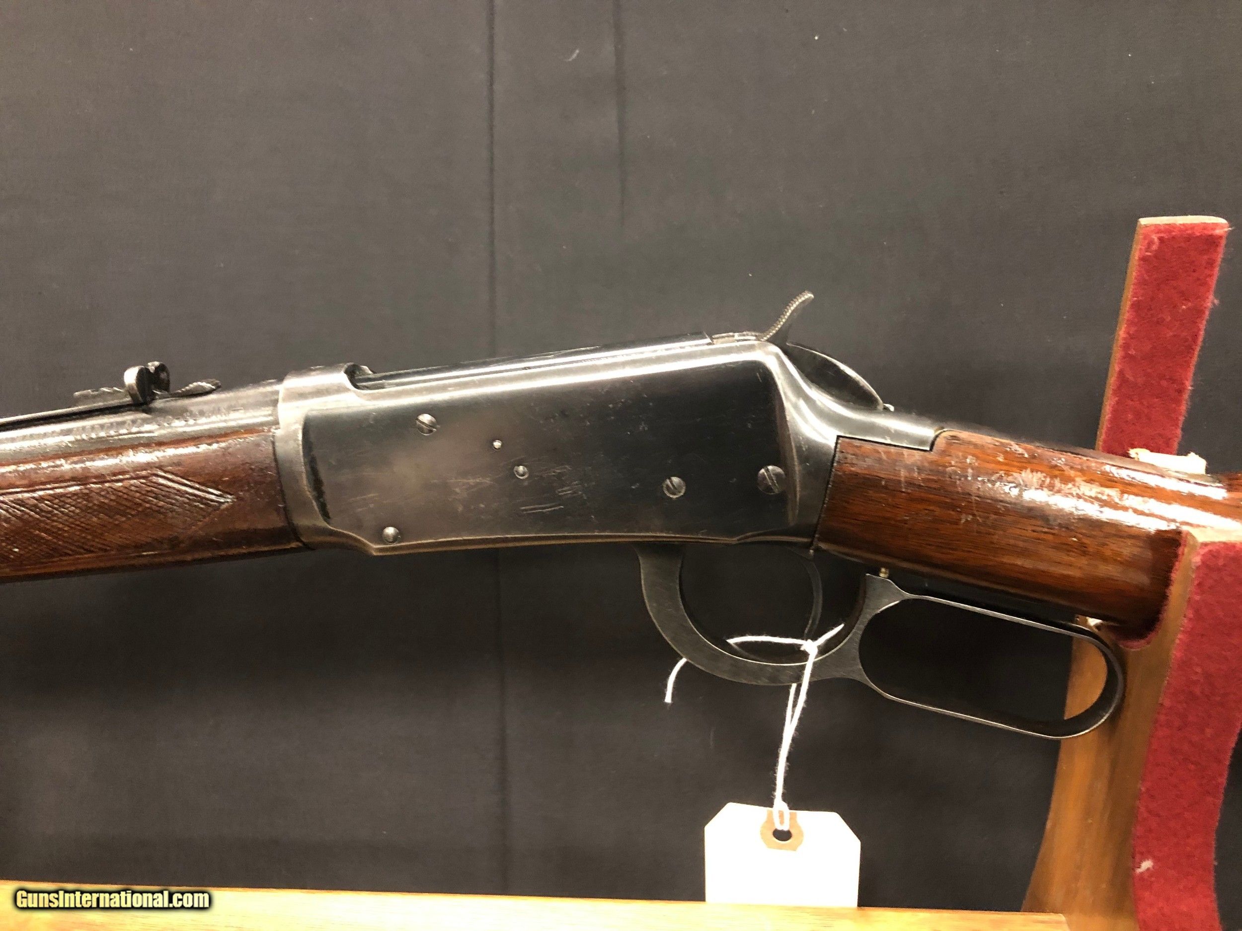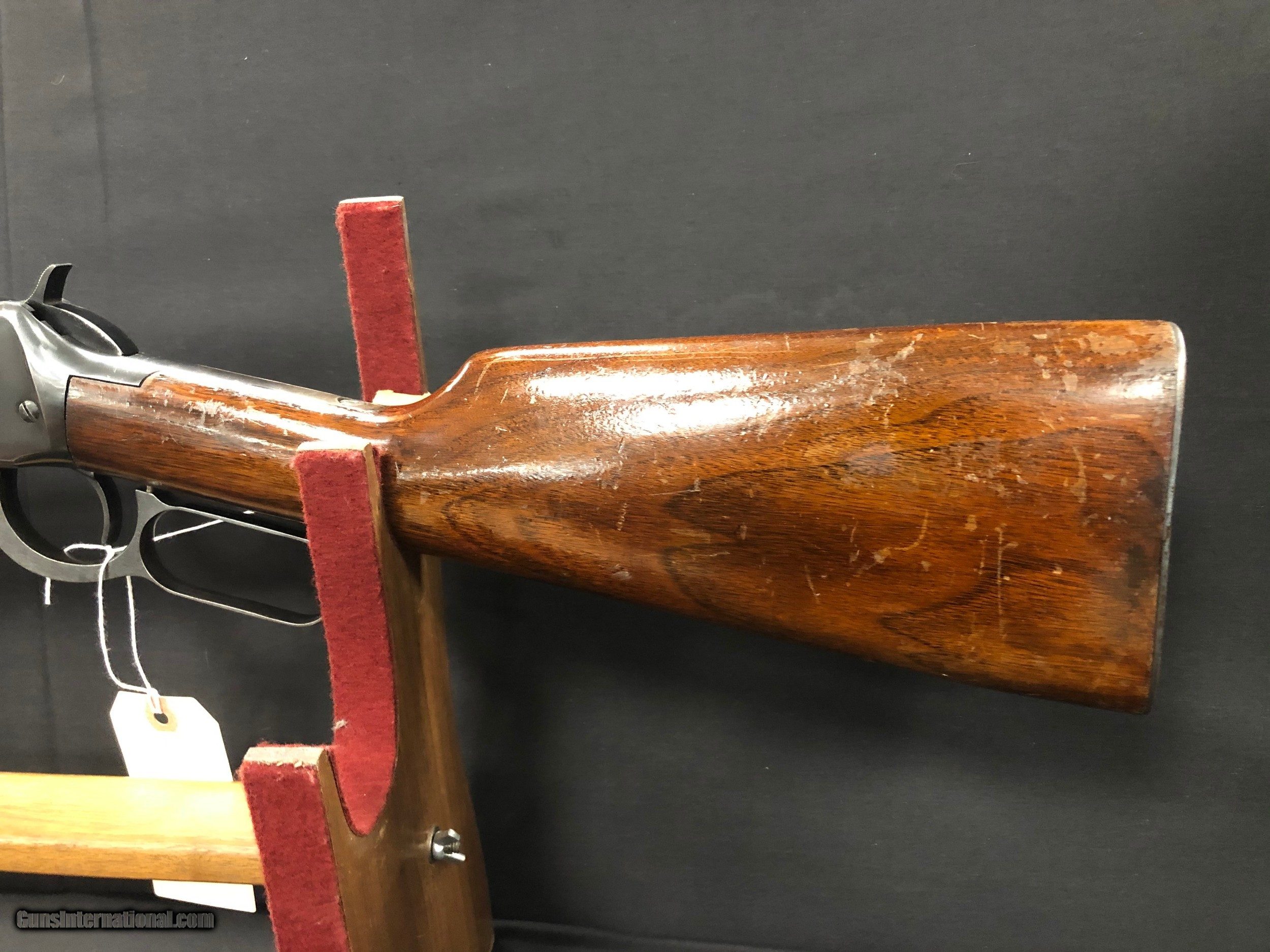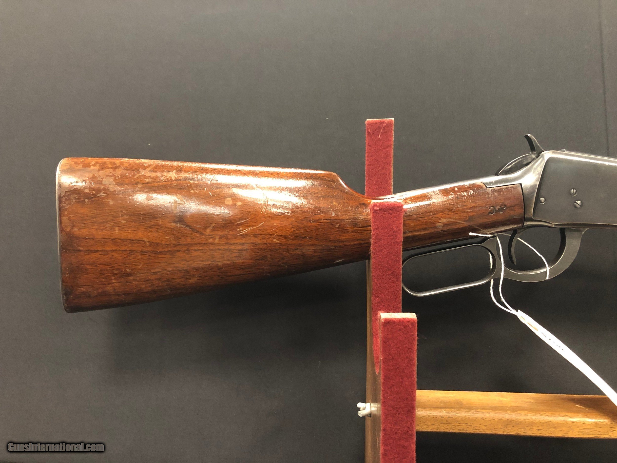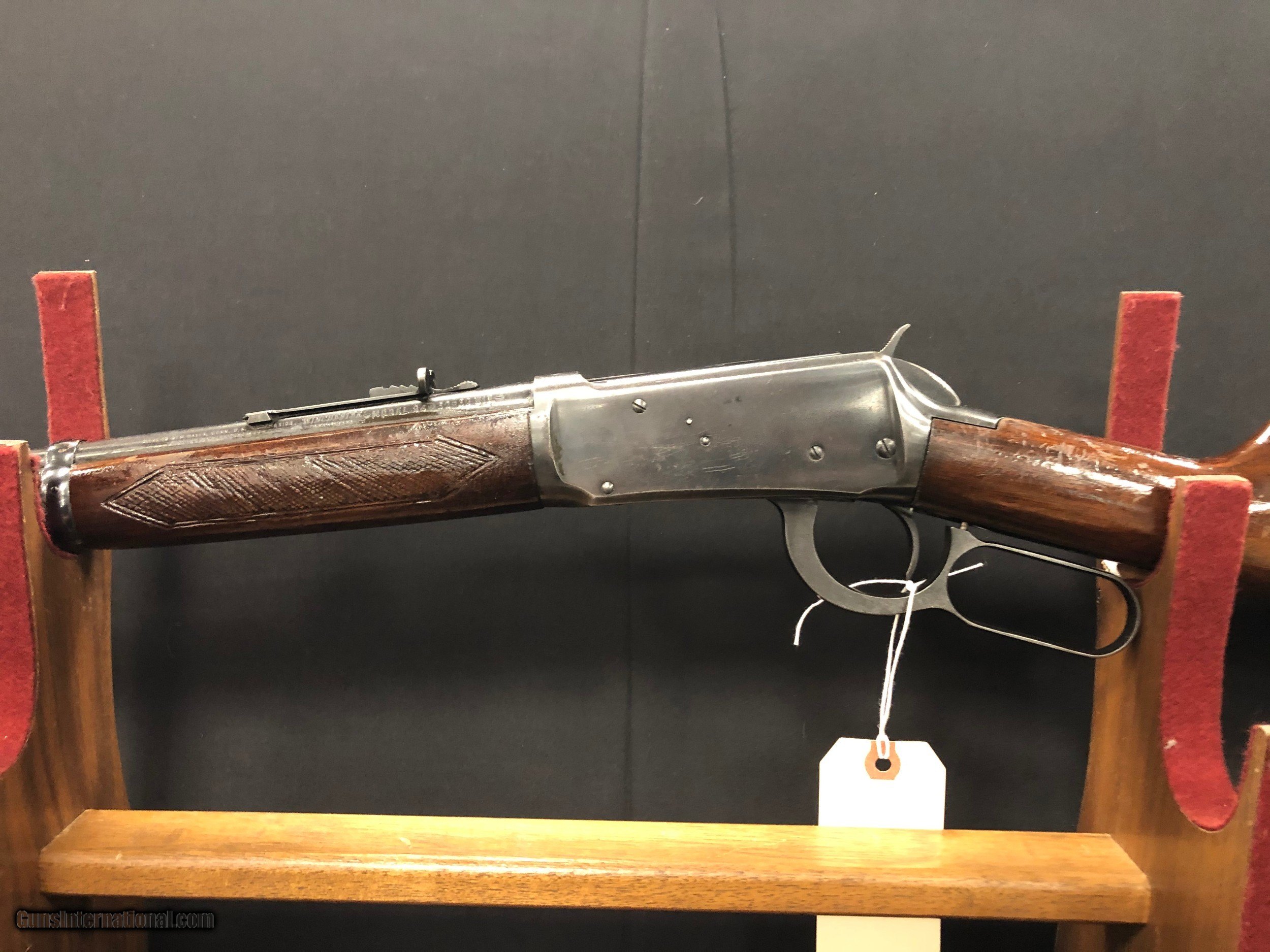 Description: Designed by John Browning in 1894, the Winchester Model 94 quickly became one of the most popular hunting rifles both today and in the years it was made. Gun has some marks on the stock and forend, as well as a scratch on the receiver. It is in otherwise good condition. Has initials "J.C" on the stock.