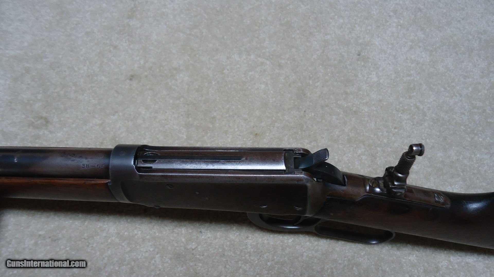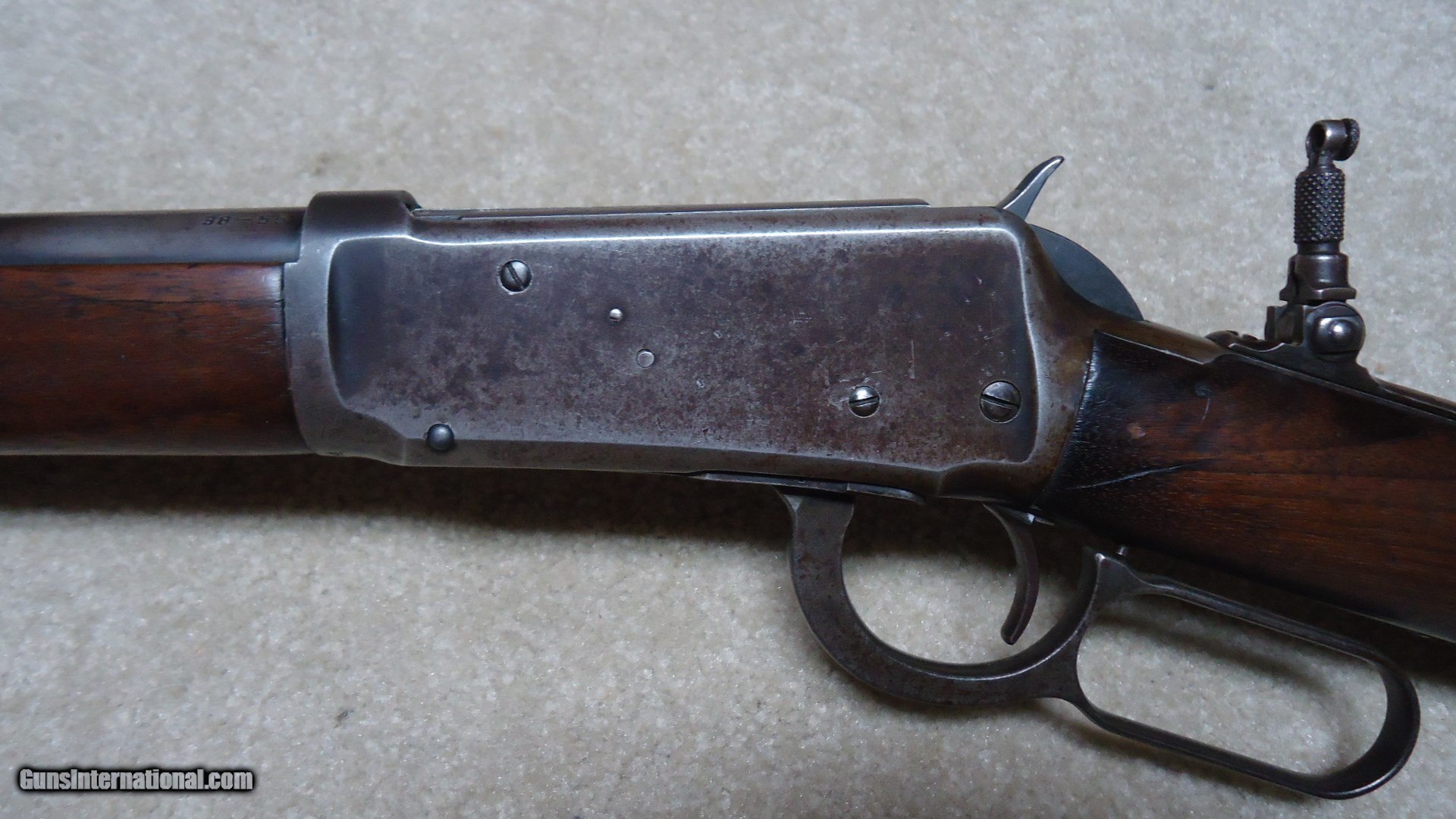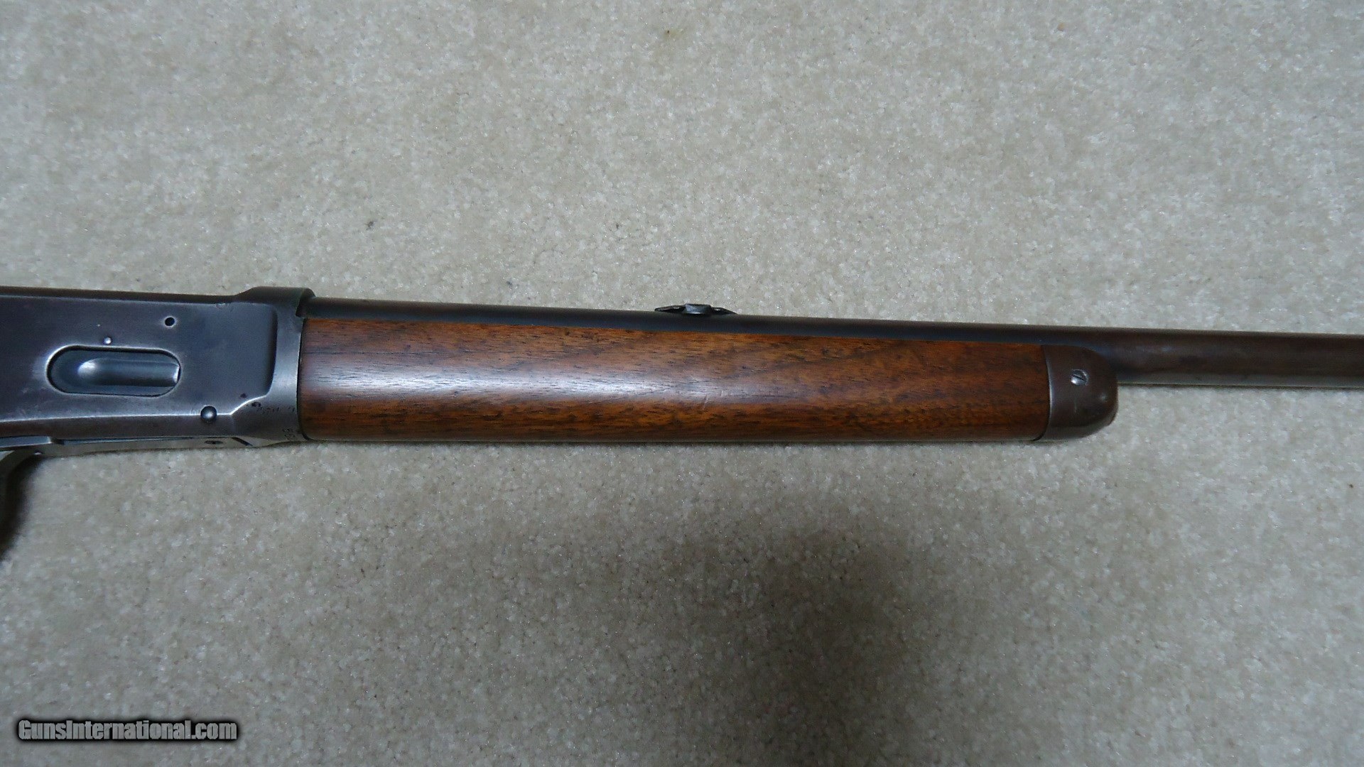 Description: SPECIAL ORDER 1894 .38-55 CALIBER ROUND BARREL RIFLE WITH HALF MAGAZINE (BUTTON MAG), #562XXX, MADE 1911. It is a little known fact that lever action rifles with half magazines tend to be more accurate than full magazine rifles- makes sense as each time a cartridge is pulled from the magazine and lifted into the chamber it changes the weight/balance of the magazine hanging from the bottom of the barrel. That’s why some of the more savvy shooters of the day ordered their big game rifles with half magazines- check out most photos of Theodore Roosevelt holding rifles and they all seem to have half magazines. This one shows fine deeply aged blue on the right side of the receiver with a bit less on the left side where it has flaked a bit. The barrel also shows fine deeply aged blue that has some plum/brown mixing. The wood is fine overall with maybe a couple of age cracks coming forward from the receiver on each side of the forearm that go nowhere and are very tight. Fine bore shows light wear and maybe a bit frost, but a good scrubbing ought help. Lyman tang sight with a small Lyman blade/bead front sight and King patented dovetail filler where the rear sight was removed. Exc. screws, tight action, nice appearance. SOLD Curio/Relic: Yes Manufacturer: Winchester Model: 1894 SPECIAL ORDER RIFLE Serial Number: 562XXX Caliber Info: .38-55 Condition: FINE Barrels: 26" ROUND |