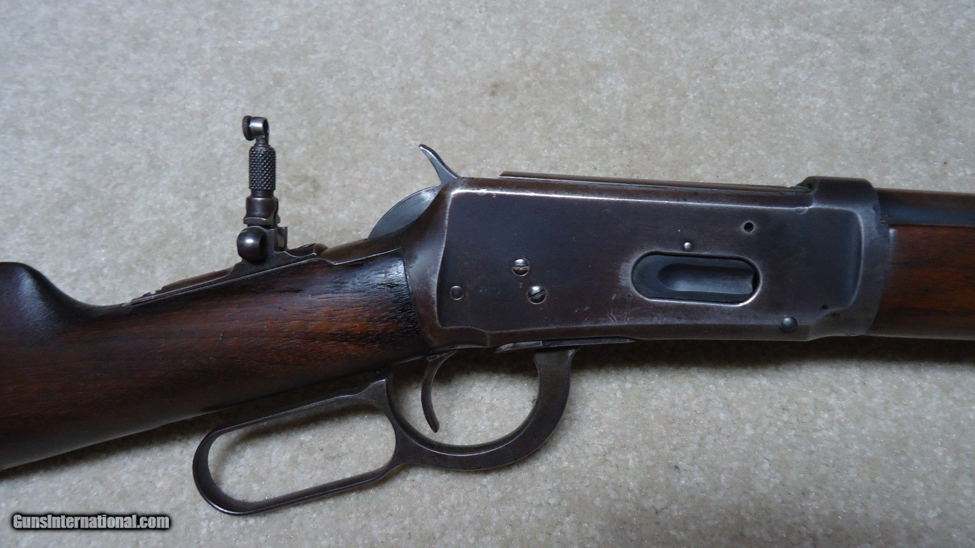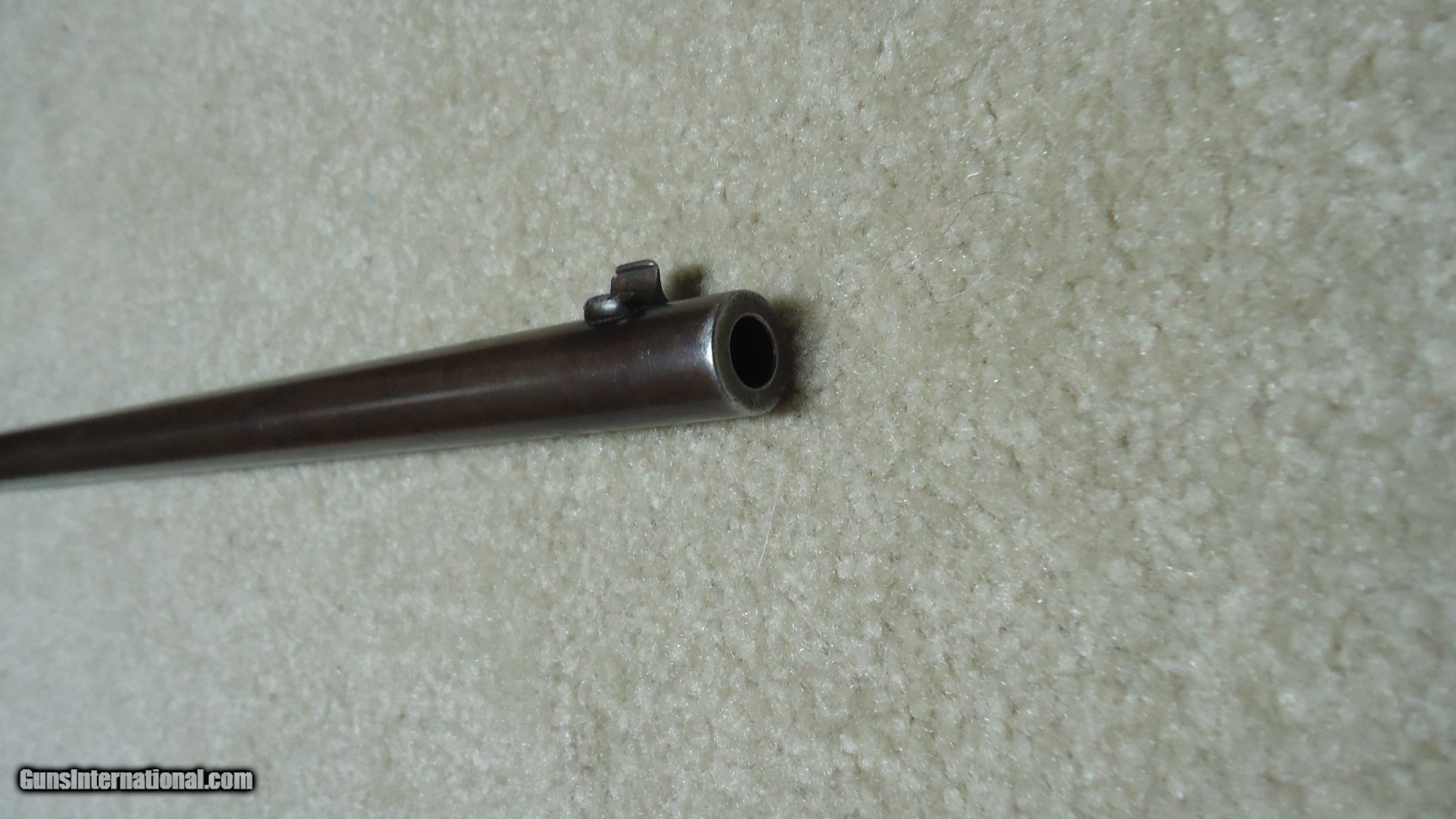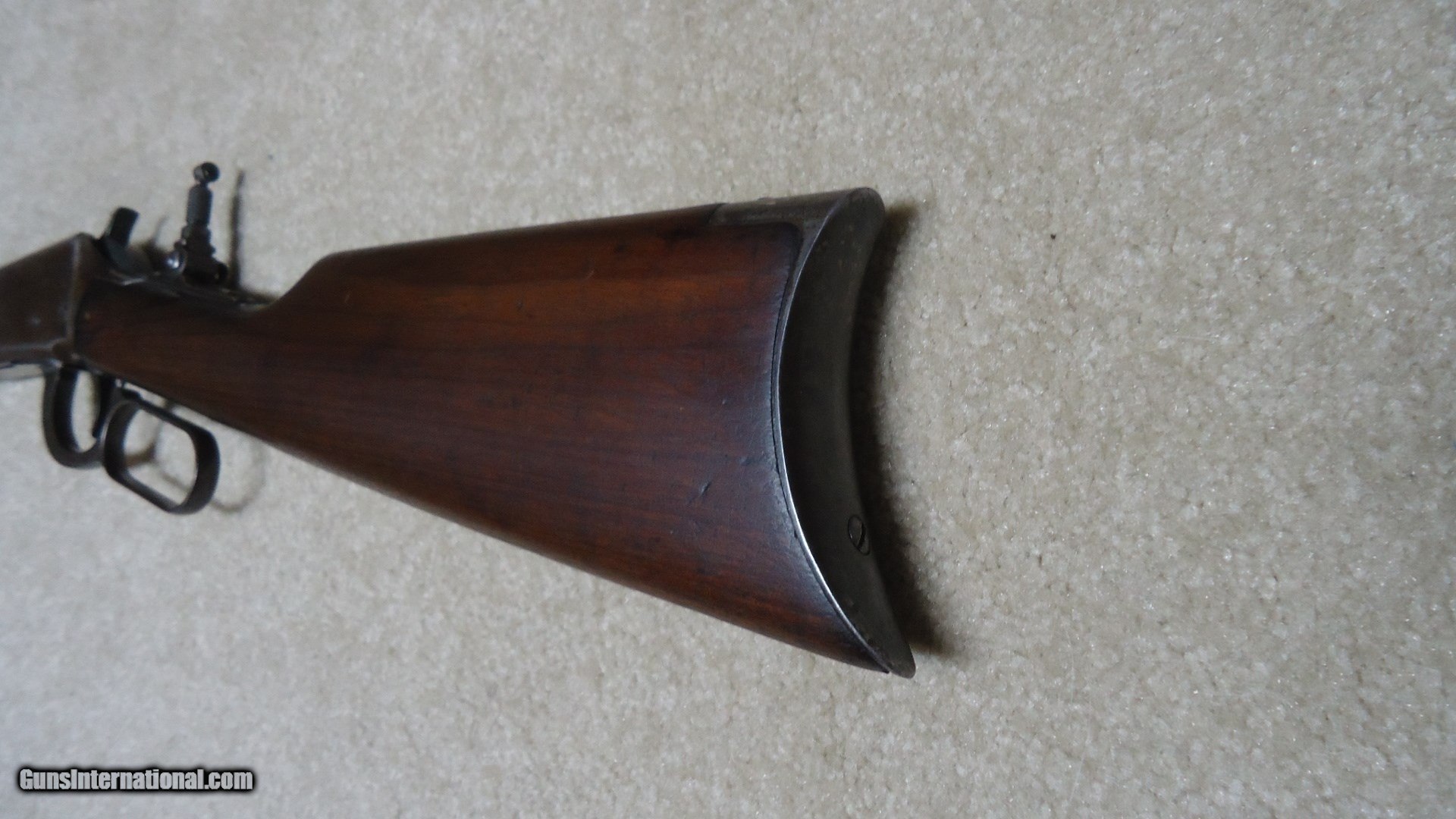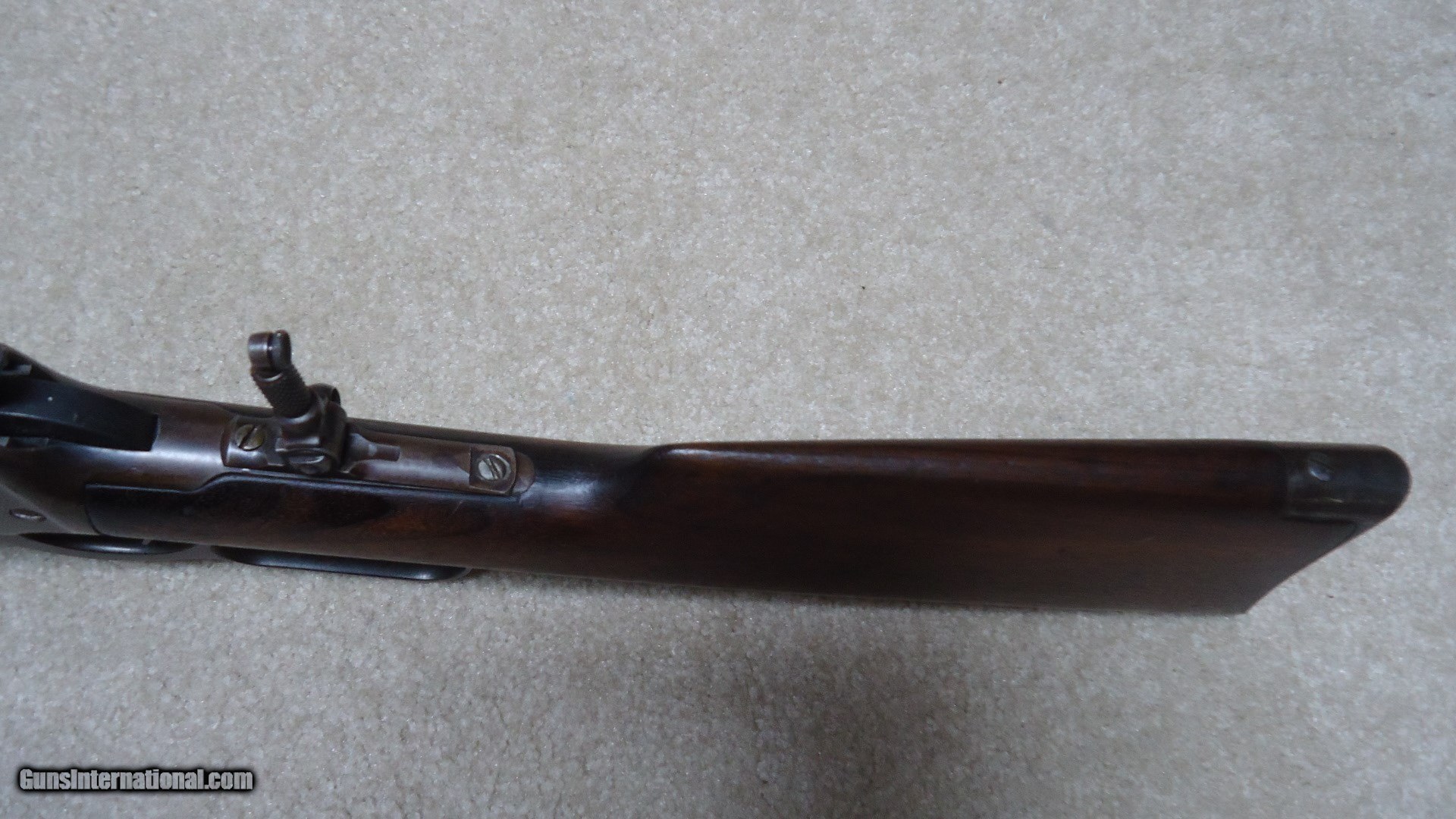 Description: SPECIAL ORDER 1894 .38-55 CALIBER ROUND BARREL RIFLE WITH HALF MAGAZINE (BUTTON MAG), #562XXX, MADE 1911. It is a little known fact that lever action rifles with half magazines tend to be more accurate than full magazine rifles- makes sense as each time a cartridge is pulled from the magazine and lifted into the chamber it changes the weight/balance of the magazine hanging from the bottom of the barrel. That’s why some of the more savvy shooters of the day ordered their big game rifles with half magazines- check out most photos of Theodore Roosevelt holding rifles and they all seem to have half magazines. This one shows fine deeply aged blue on the right side of the receiver with a bit less on the left side where it has flaked a bit. The barrel also shows fine deeply aged blue that has some plum/brown mixing. The wood is fine overall with maybe a couple of age cracks coming forward from the receiver on each side of the forearm that go nowhere and are very tight. Fine bore shows light wear and maybe a bit frost, but a good scrubbing ought help. Lyman tang sight with a small Lyman blade/bead front sight and King patented dovetail filler where the rear sight was removed. Exc. screws, tight action, nice appearance. SOLD Curio/Relic: Yes Manufacturer: Winchester Model: 1894 SPECIAL ORDER RIFLE Serial Number: 562XXX Caliber Info: .38-55 Condition: FINE Barrels: 26" ROUND |