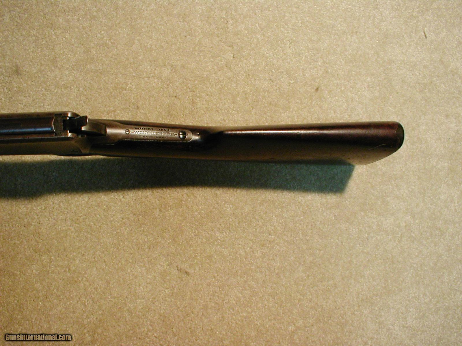 Description: SPECIAL ORDER 1894 RIFLE, 1/2 OCTAGON BARREL, 1/2 MAGAZINE, SHOTGUN BUTT, .30WCF, #436XXX, MADE 1908, fine barrel blue showing light age only, receiver blue naturally aged to a pleasing brown patina with some aged blue on the bolt, loading gate and most protected areas, buckhorn rear sight with small blade front sight, exc. correct Winchester embossed hard rubber shotgun butt plate, wood shows light handling only with tight wood to metal fit, bore is a bit dark with fine rifling and ought to scrub out to near exc., handsome special order '94. SOLD Curio/Relic: Yes Manufacturer: Winchester Model: 1894 SPECIAL ORDER RIFLE Serial Number: 436XXX Caliber Info: .30WCF Condition: fine Barrels: 26" 1/2 Oct. |