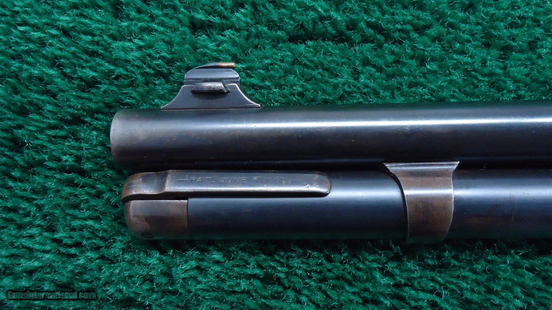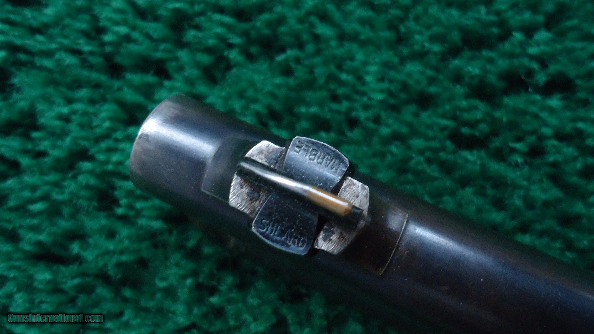 24 inch tapered round barrel chambered in 33 WCF caliber. Full length mag tube and take down frame. Sights include a Marble/Sheard blade front and a Winchester flat top sporting rear. Nice bore with sharp rifling. Overall metal retains a considerable amount of original blue. Crisp tight action. Pistol grip shotgun stock and a hard rubber butt plate. Nice special order Winchester with factory letter.