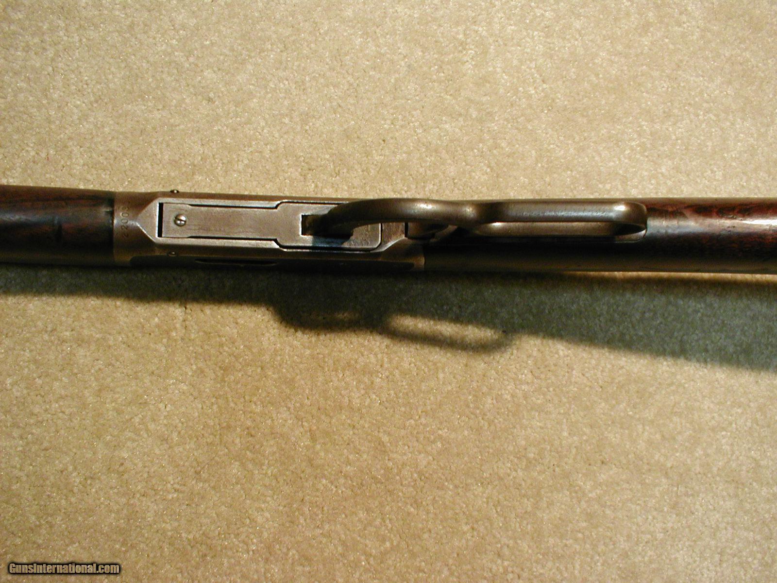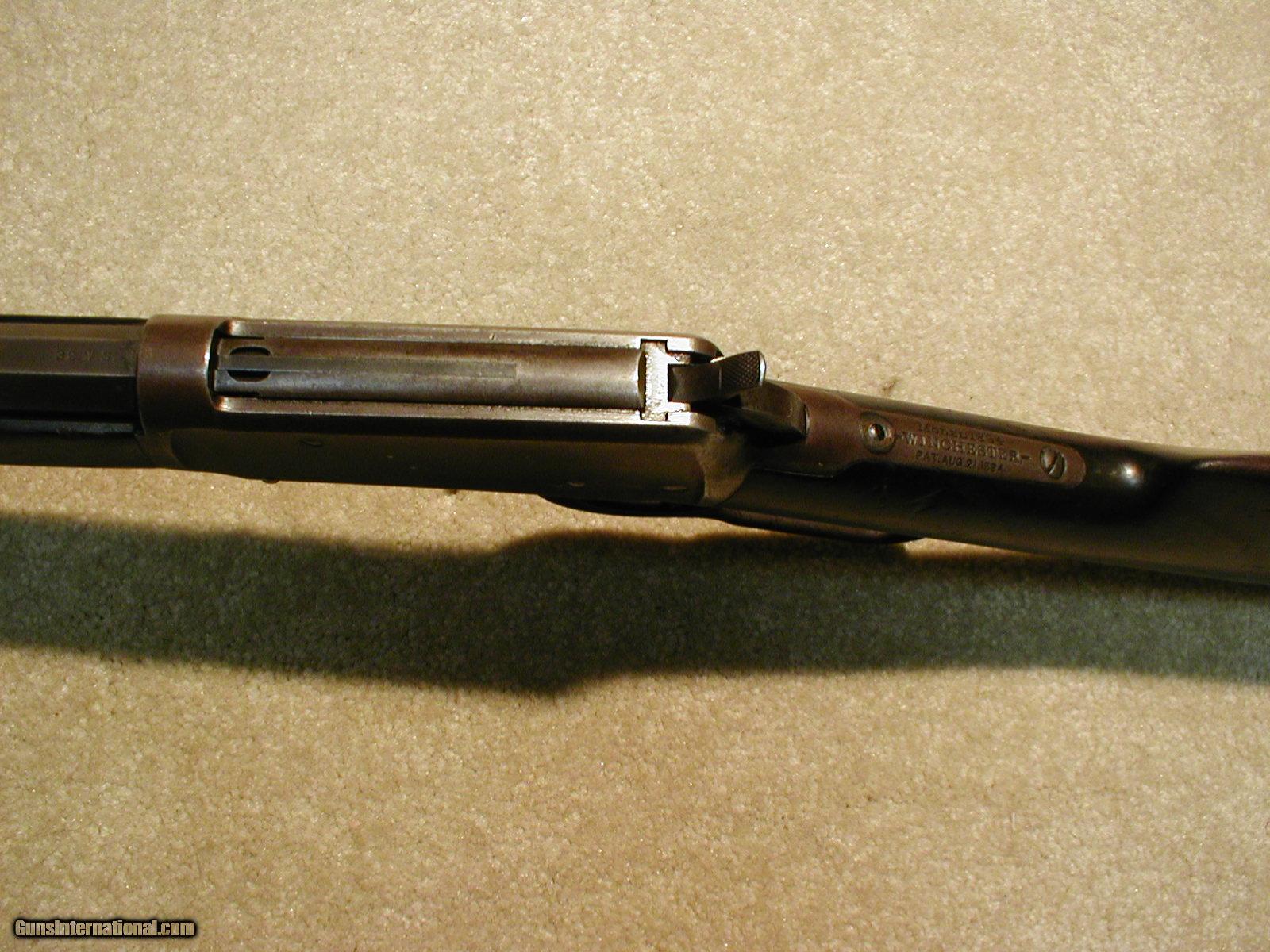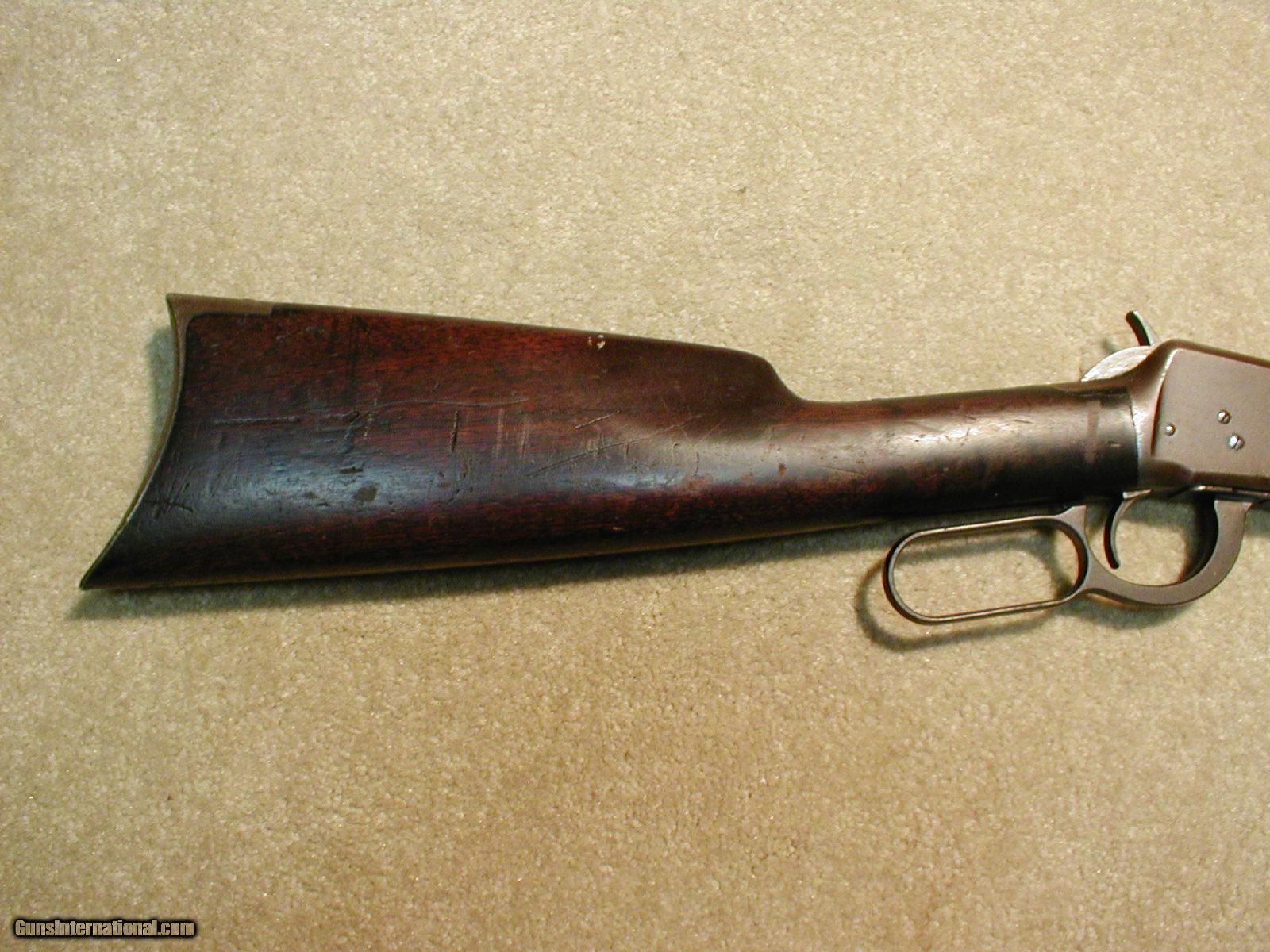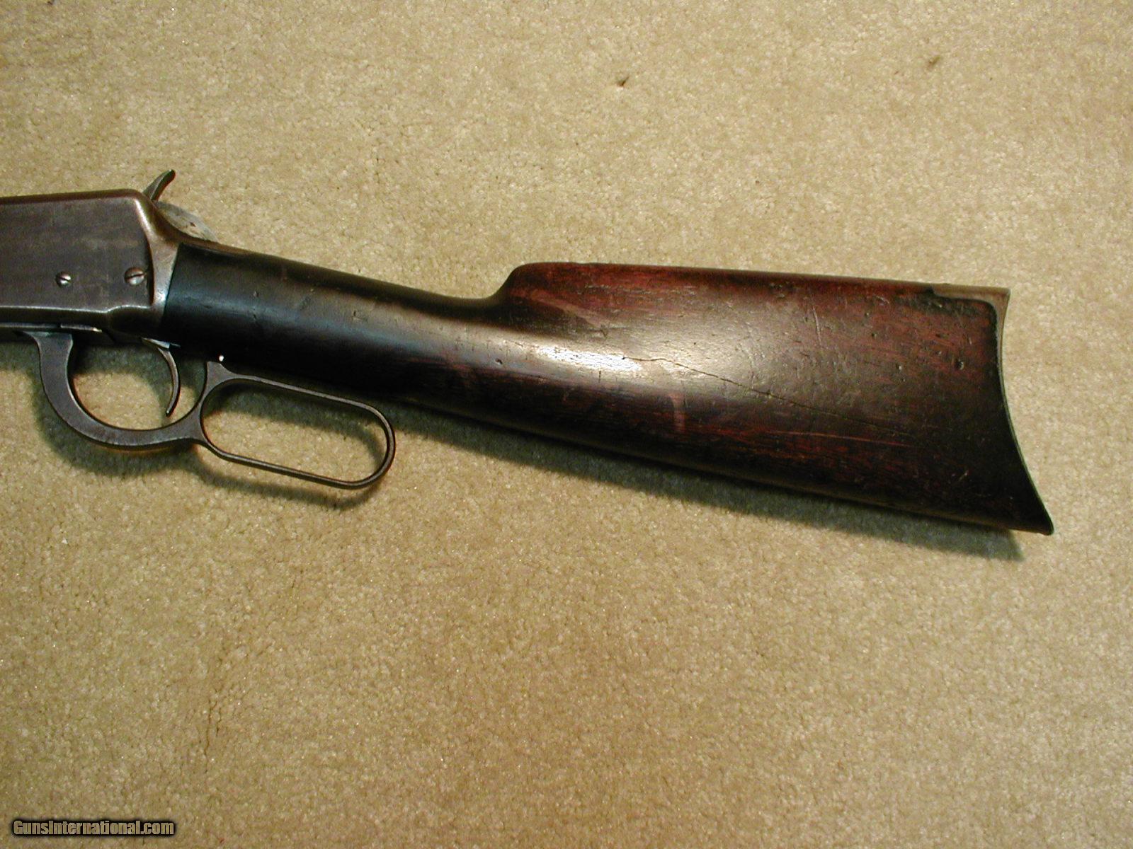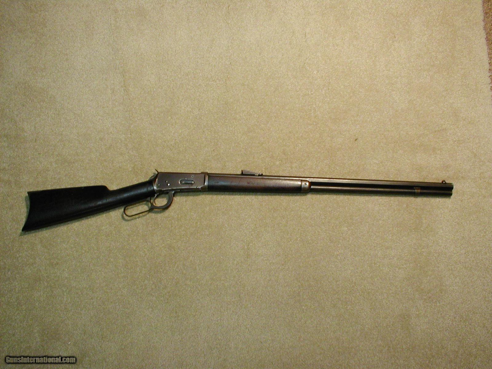 Description: PROBABLY FIRST INTRODUCTORY YEAR MANUFACTURE FOR THE .32WS CARTRIDGE, 1894 OCTAGON RIFLE IN THE 220XXX RANGE, about as early as I've seen for a .32WS chambered 1894 that was introduced in 1902, the serial number on this one would indicate a 1901 manufacture date (no doubt the receiver was in the bin and not used until at least 1902 or later), has the correct "Smokeless Powder" rear sight used only on this model along with a blade/bead front sight, fine aged barrel and mag blue, aged receiver blue mixing heavily plum/brown, exc. screws, fine+ wood with normal light handling marks and tight wood to metal fit, tight action, bore a little dark and frosty, fine appearance and super early without any proof marks as introduced in 1905, attractive uncleaned appearance. SOLD Curio/Relic: Yes Manufacturer: Winchester Model: 1894 OCTAGON RIFLE Serial Number: 220XXX Caliber Info: 32WS Condition: fine Barrels: 26" oct |