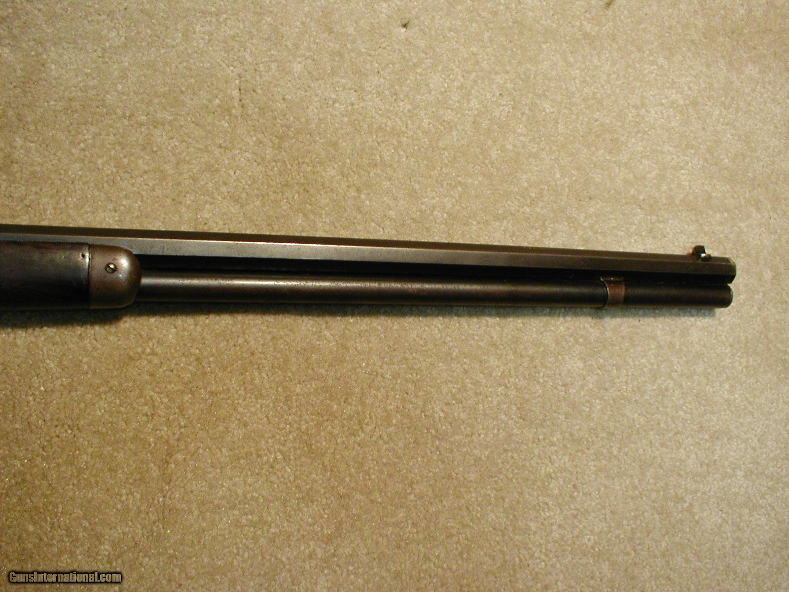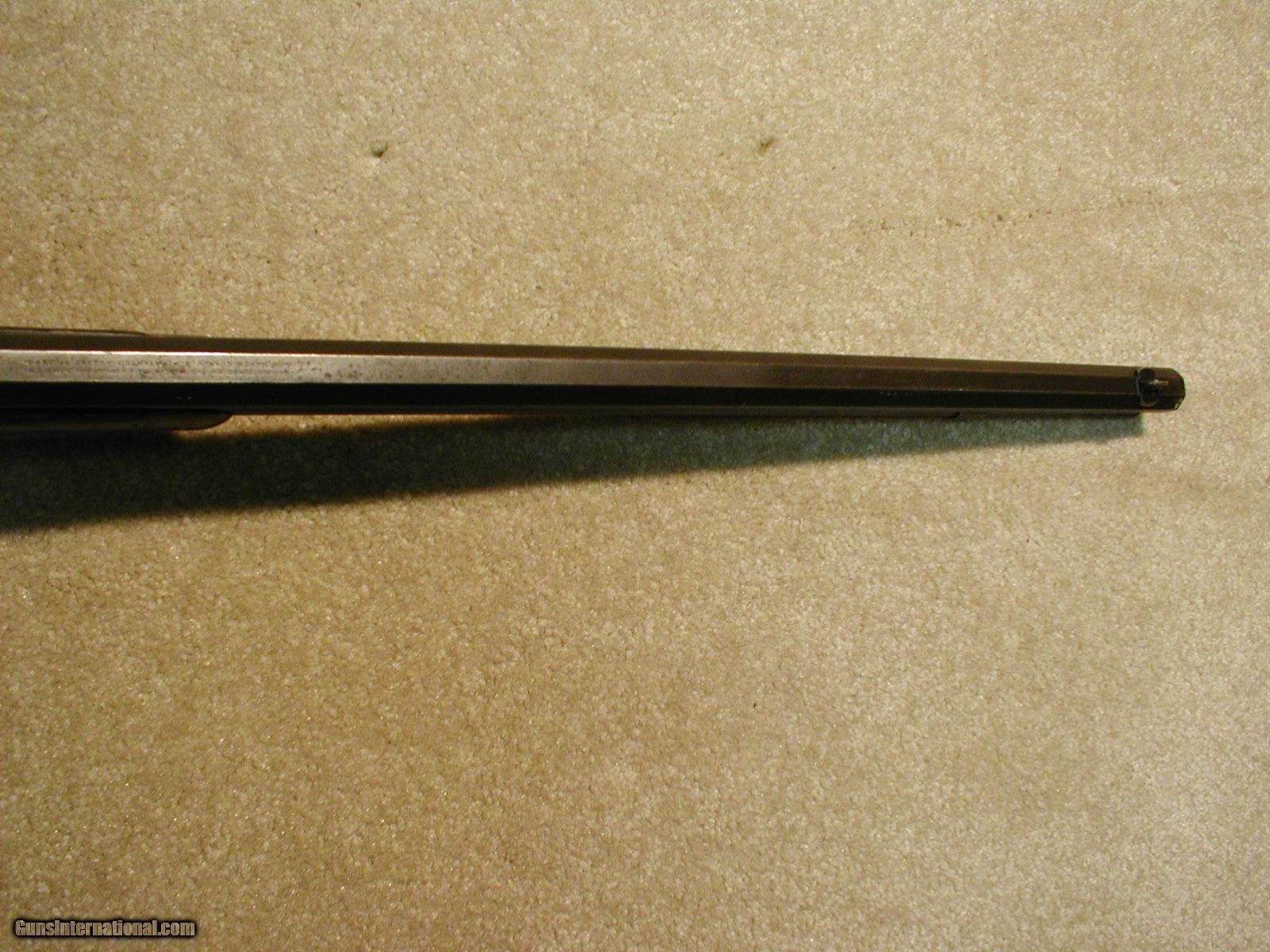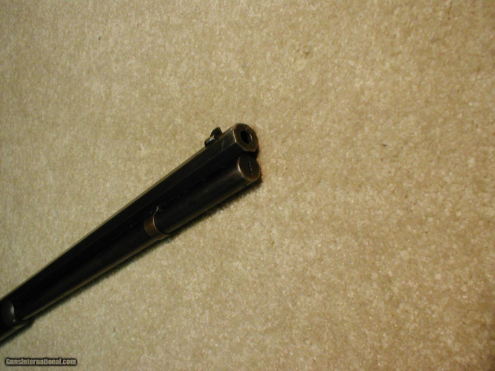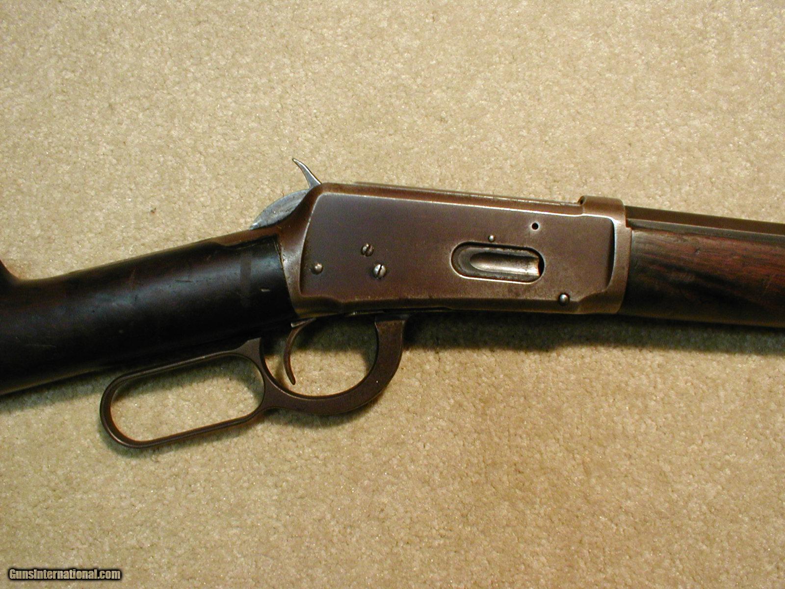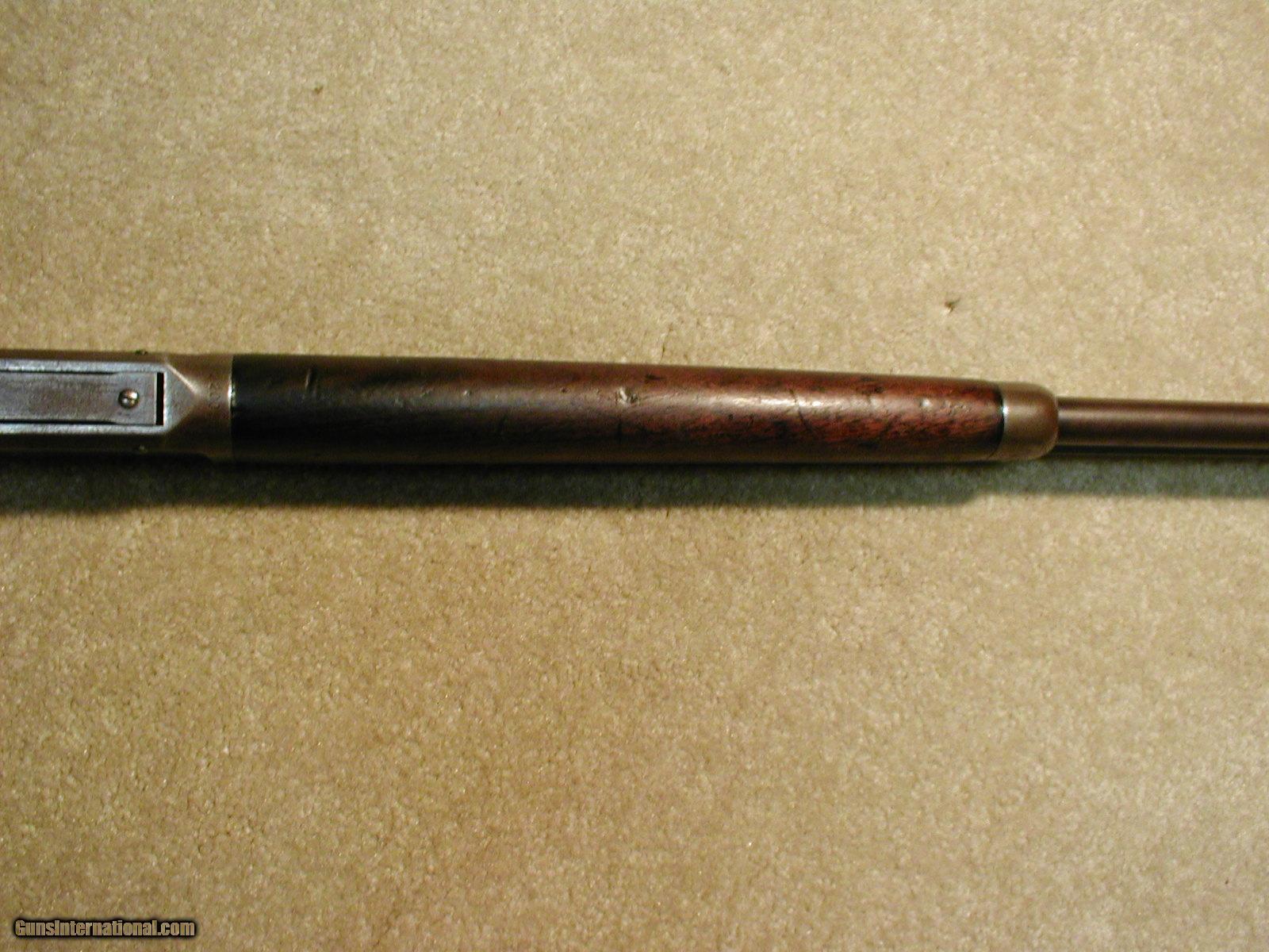 Description: PROBABLY FIRST INTRODUCTORY YEAR MANUFACTURE FOR THE .32WS CARTRIDGE, 1894 OCTAGON RIFLE IN THE 220XXX RANGE, about as early as I've seen for a .32WS chambered 1894 that was introduced in 1902, the serial number on this one would indicate a 1901 manufacture date (no doubt the receiver was in the bin and not used until at least 1902 or later), has the correct "Smokeless Powder" rear sight used only on this model along with a blade/bead front sight, fine aged barrel and mag blue, aged receiver blue mixing heavily plum/brown, exc. screws, fine+ wood with normal light handling marks and tight wood to metal fit, tight action, bore a little dark and frosty, fine appearance and super early without any proof marks as introduced in 1905, attractive uncleaned appearance. SOLD Curio/Relic: Yes Manufacturer: Winchester Model: 1894 OCTAGON RIFLE Serial Number: 220XXX Caliber Info: 32WS Condition: fine Barrels: 26" oct |