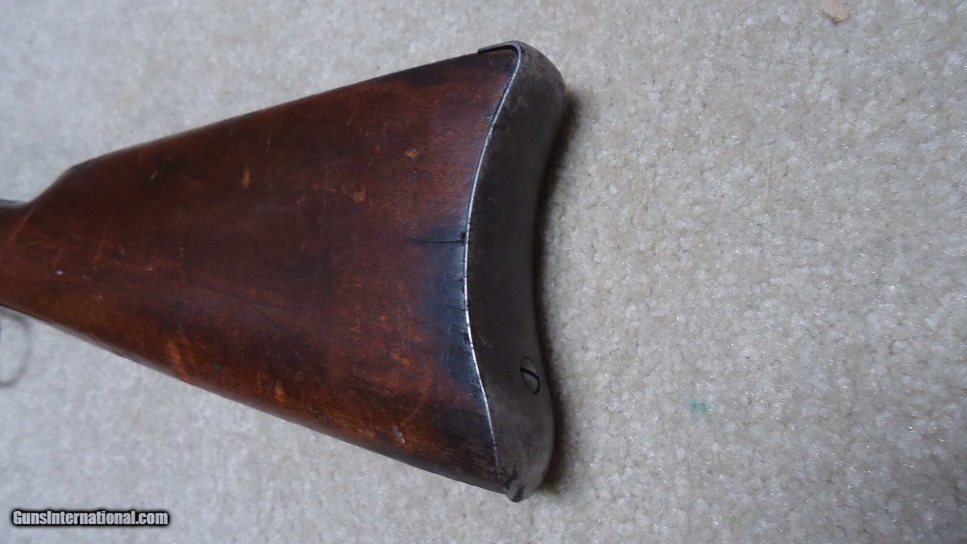 Description: 1894 SADDLE RING CARBINE IN SCARCE .25-35 CALIBER, #414XXX, MADE 1908. This fine condition carbine shows about half good blue on the receiver sides with the balance mixing with some brown and gray. There is fine blue on the bolt and loading gate and the screws appear unturned. The barrel shows fine blue with some light wear/thinning on the forward top section that is minor and still retains blue. The mag tube shows fine deep blue. Forend is excellent and the butt stock shows only normal handling marks with tight wood to metal fit. Tight action, excellent bore and the barrel is fitted with a three leaf express sight with all the leaves intact. This one came out of Arizona. Fine 113 year old saddle ring carbine in a desirable caliber. SOLD Curio/Relic: Yes Manufacturer: Winchester Model: 1894 SADDLE RING CARBINE Serial Number: 414XXX Barrel Length: 20 Condition: FINE+ Bore Condition: EXCELLENT |