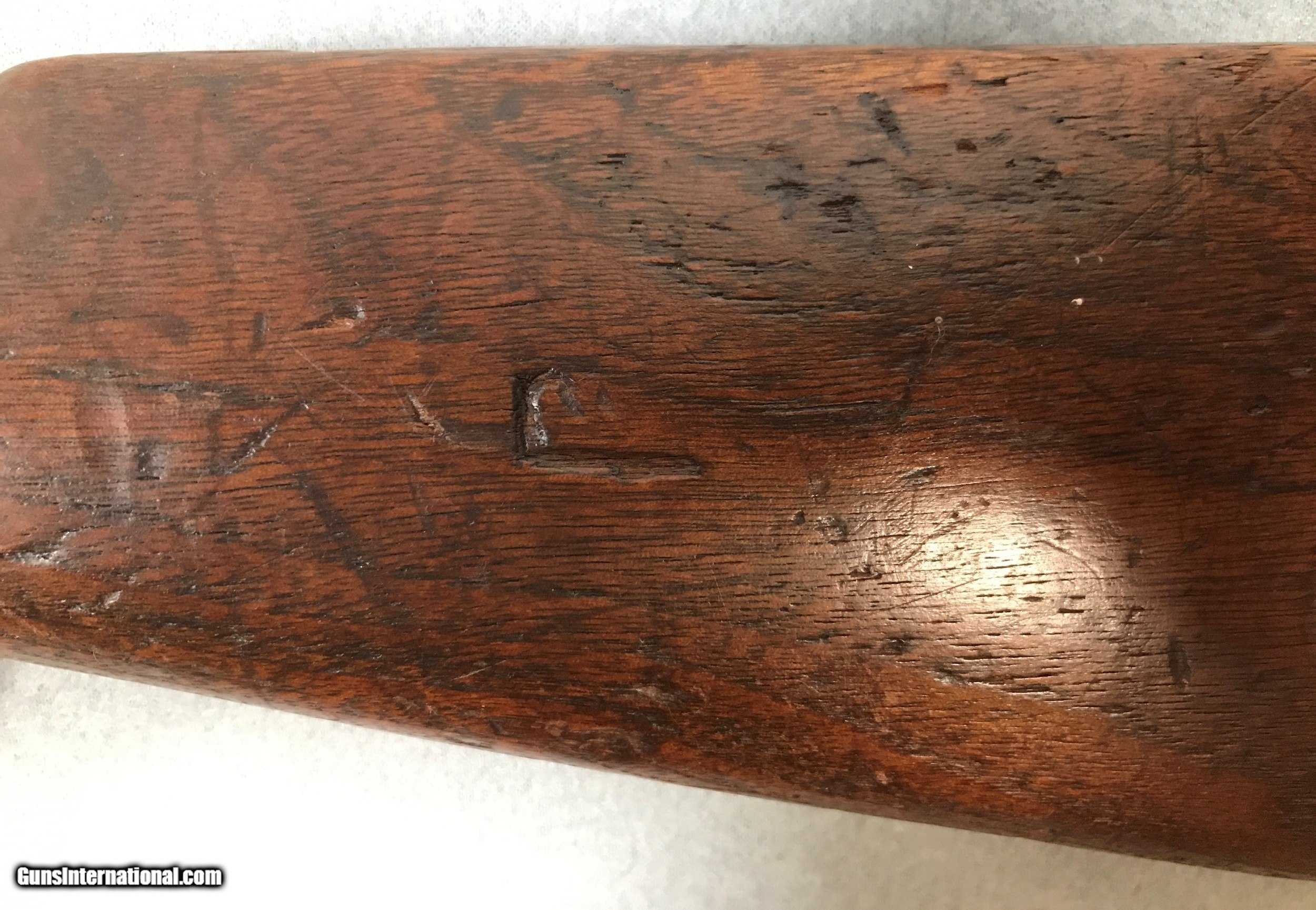 Description: Winchester 1892 Saddle Ring Carbine .25-20 WCF 20" barrel Walnut stock 6lbs 1oz Mfg. 1926 Good-Very Good condition. The gun is well used and there are numerous nicks, dings, scuffs, scrapes and dents. Little to no original finish, metal has probably been scrubbed at some point but is turning a pleasing grey/brown color. A lazy L brand has been carved into the left side of the buttstock and forearm and scratched into the left side of the action. There are two holes in the toe of the buttstock and one in the forearm that may have been to accomodate a sling. There is a crack in the bottom of the forearm foreward of the barrel band and a small sliver of wood missing at the right side of the tang. The barrel is a replacement and has both the circle p and the Winchester proof marks. The magazine tube has some dings and is slightly bowed just behind the barrel hanger. Bore is bright with strong rifling. Sights are correct front and ladder type rear. The gun has a nice light trigger pull and the action works well, it would make someone a fun little coyote/ jackrabbit saddlegun. $50.00 S&H SOLD Curio/Relic: Yes Rifle Caliber: .25-20 Winchester Manufacturer: WINCHESTER Model: 1892 Serial Number: 963262 Barrel Length: 20 Condition: GOOD-VERY GOOD Metal Condition: GOOD Wood Condition: GOOD Bore Condition: VERY GOOD LOP: 13 Weight: 6lbs 1oz |