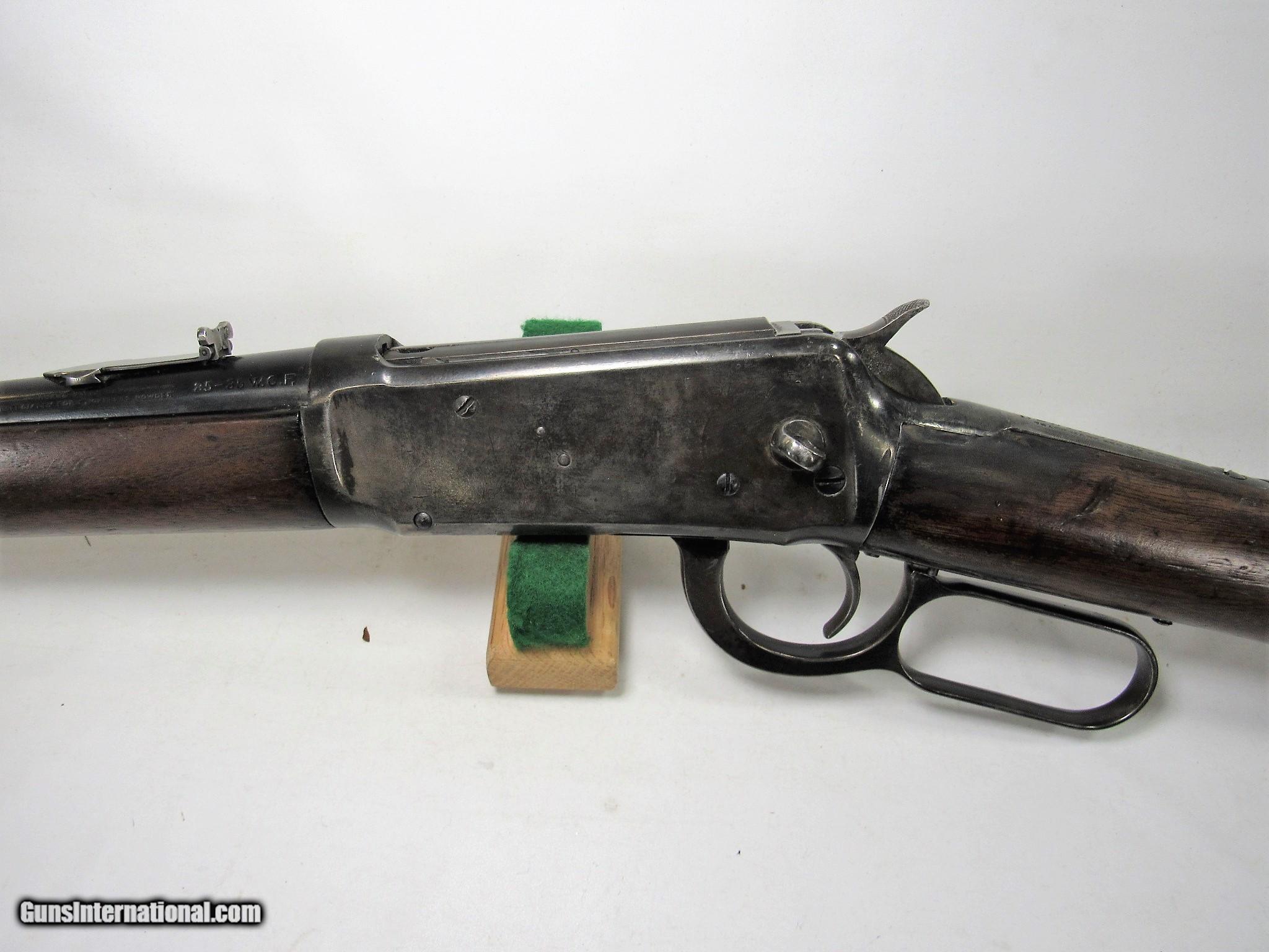 Description: WINCHESTER 1894 25-35 SRC WITH RIFLE WOOD. NICE STRONG BORE BUT A LITTLE DARK. REPAIRED TOP TANG. 60% OLD REBLUE. NICE SHOOTER MADE IN 1916. SOLD Rifle Caliber: .25-35 Winchester |