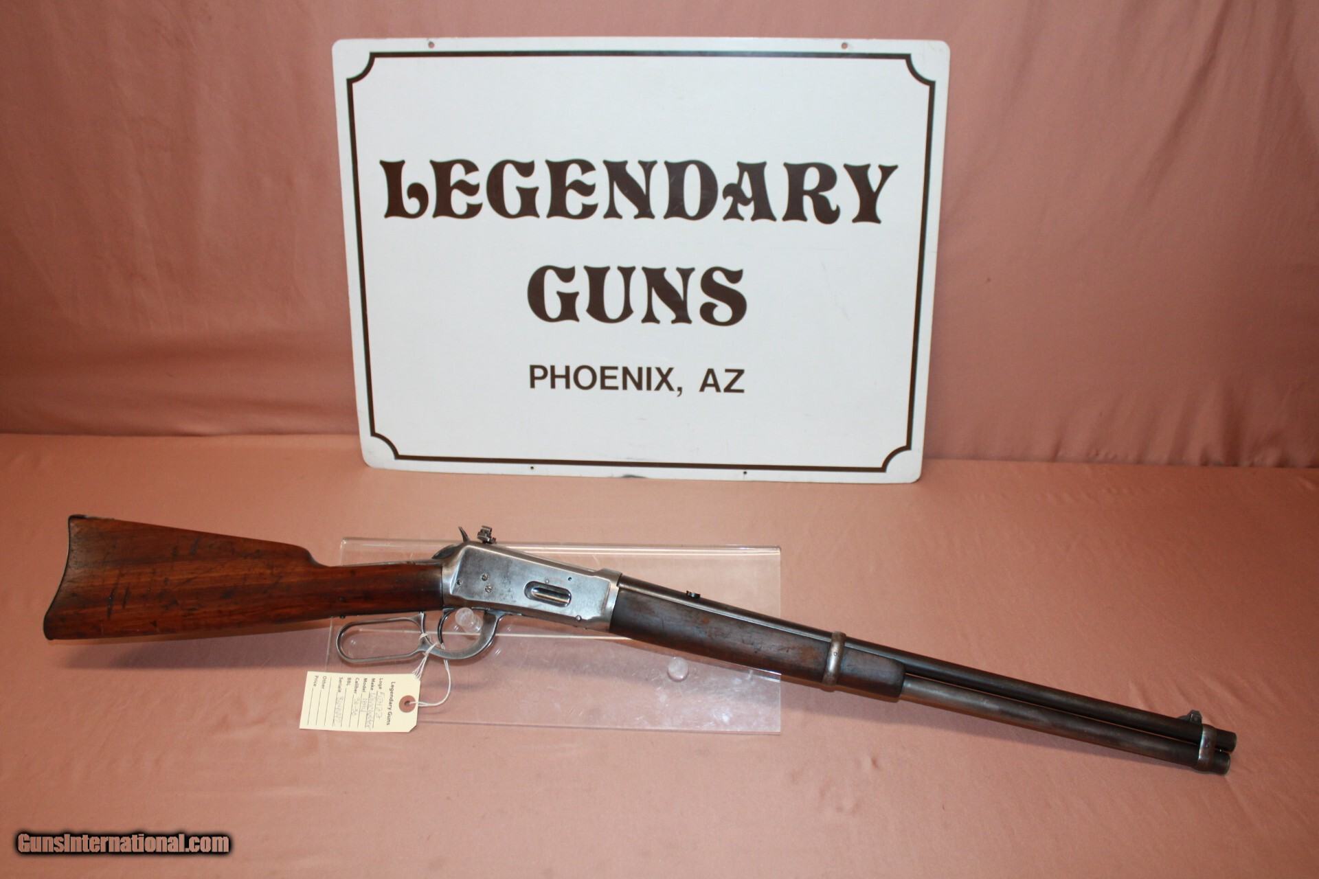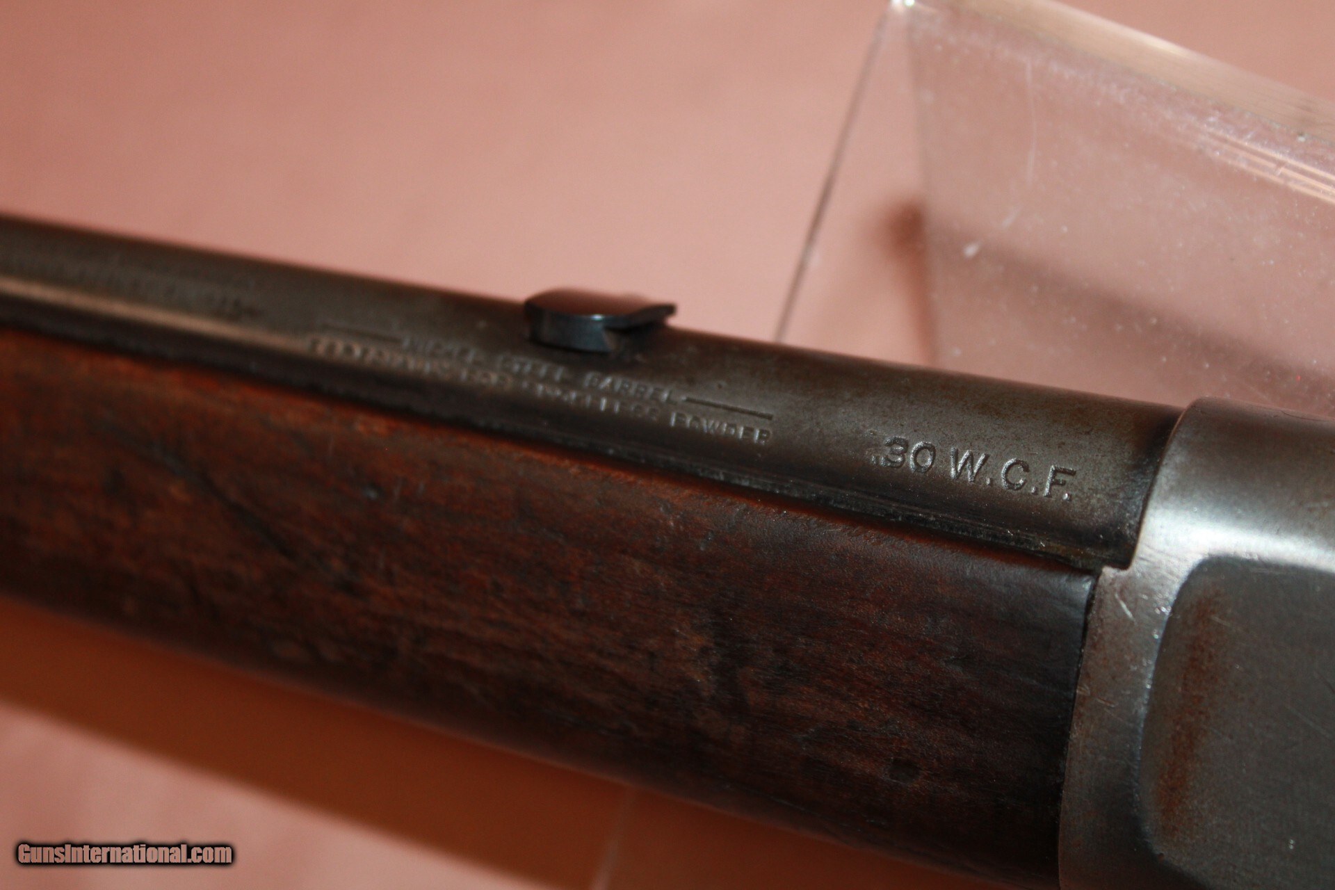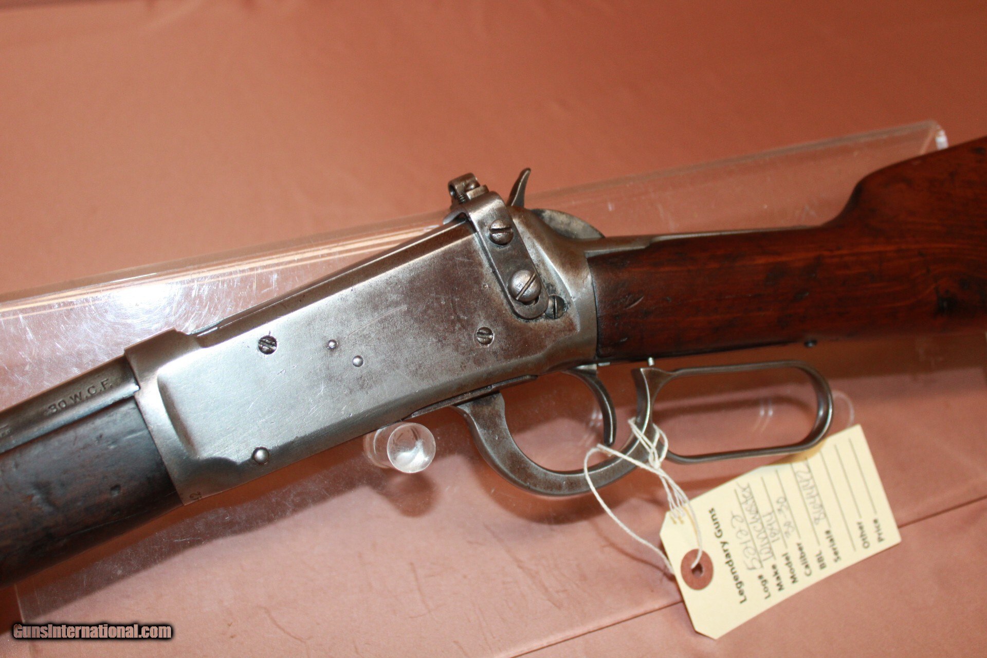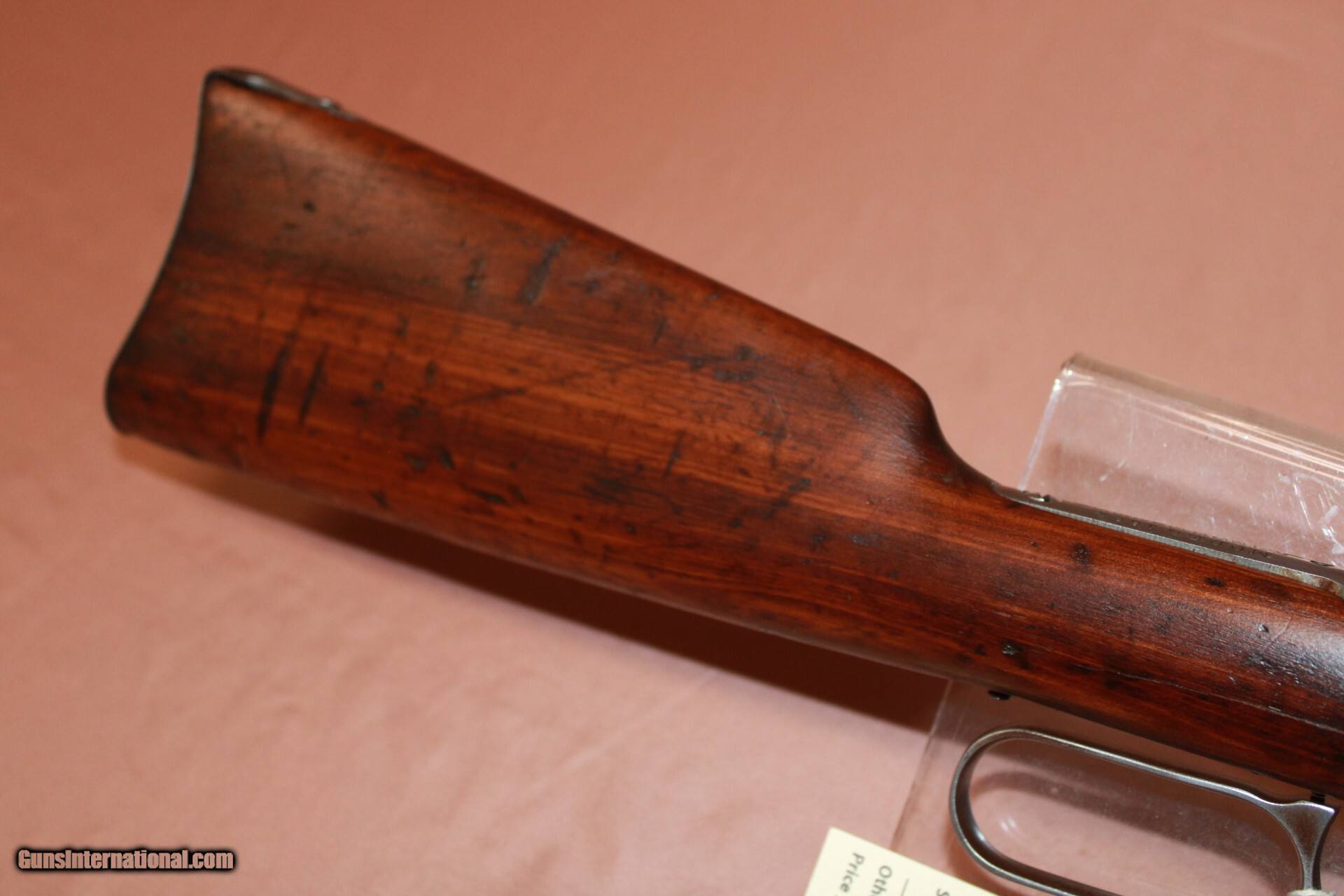 Winchester 1894 in 30-30 with a 20" round barrel, good bore. Rifle has a rear aftermarkert sight, stock is cracked, no rust very nice patina to the metal. Made in 1919