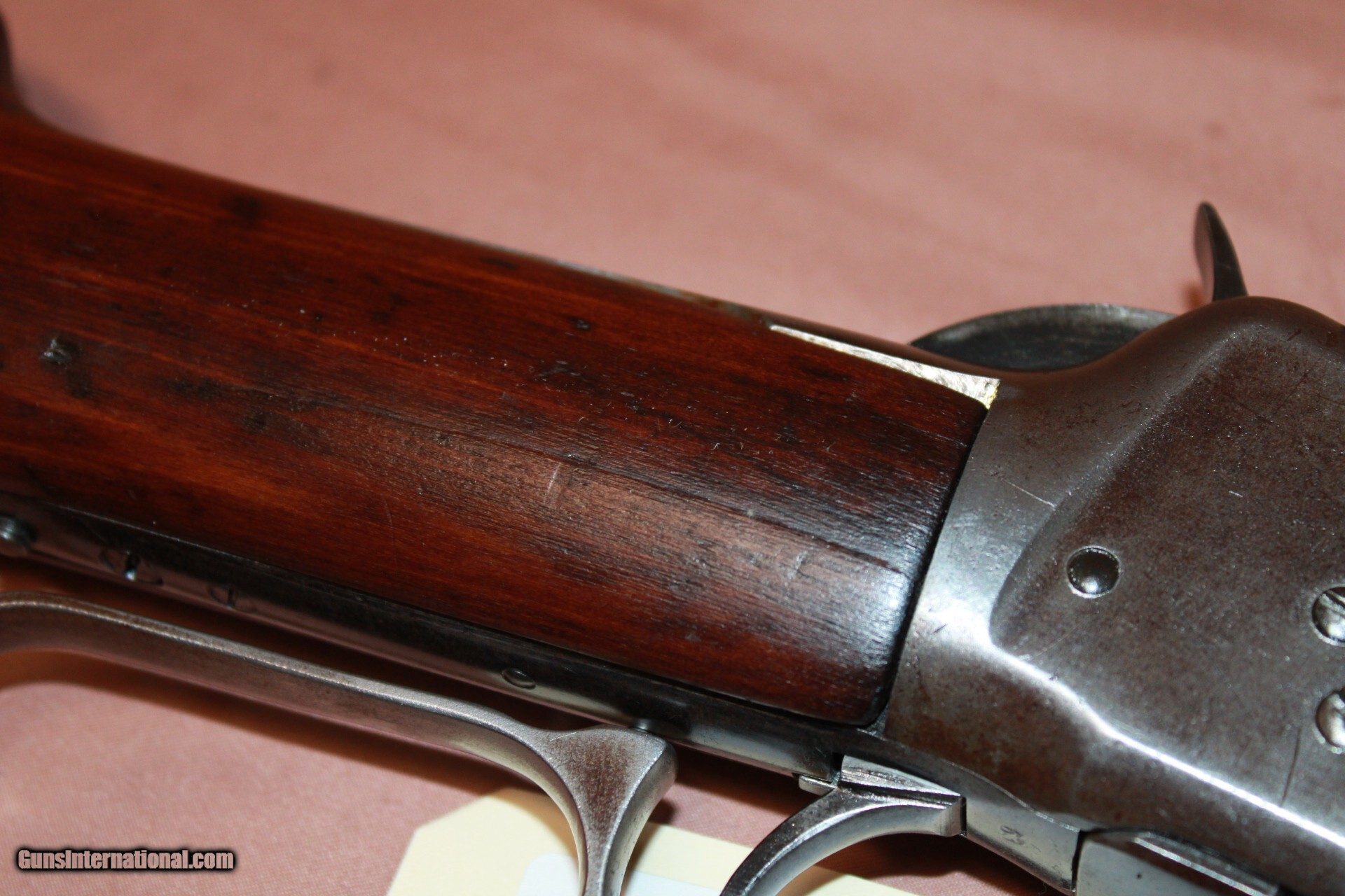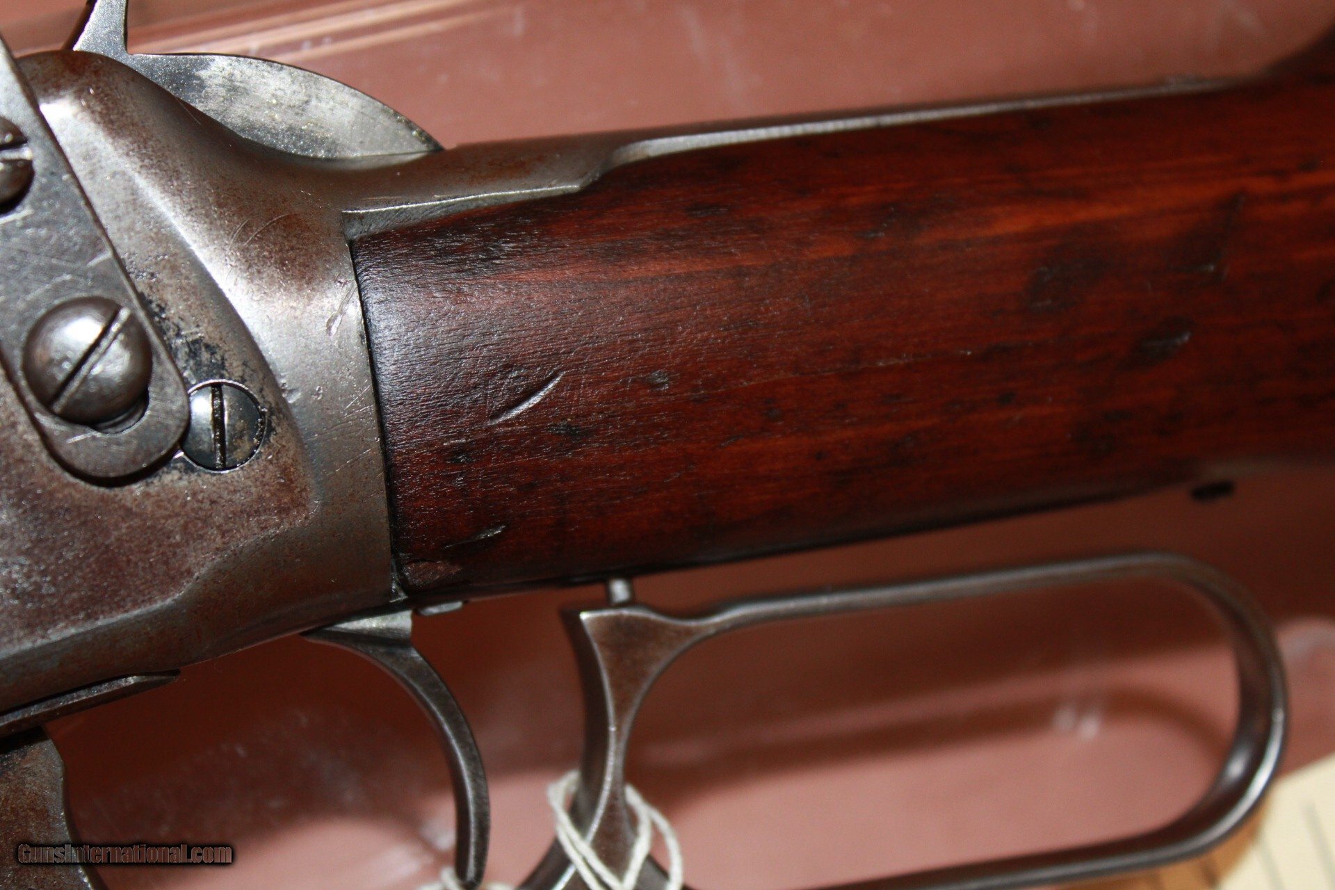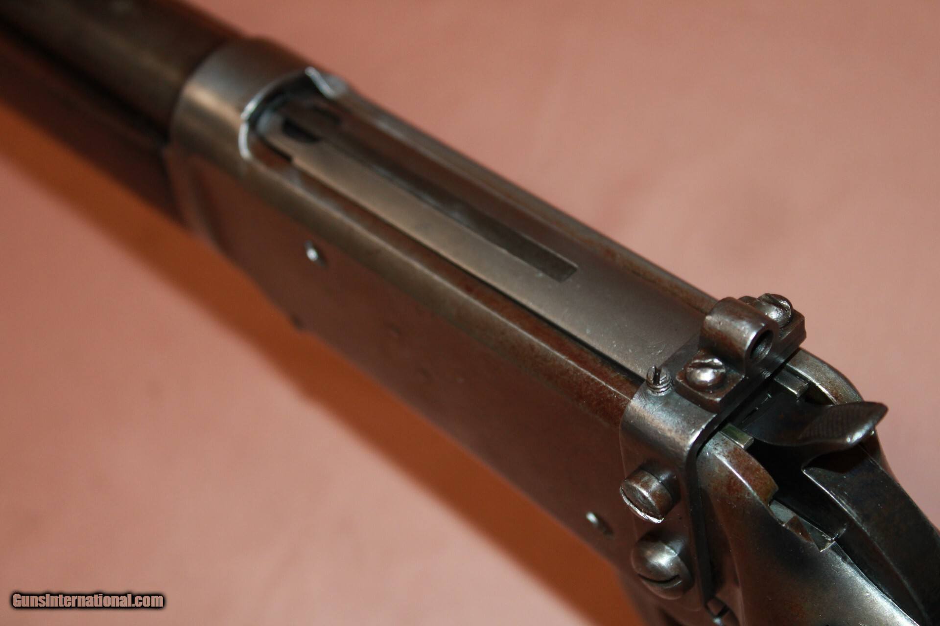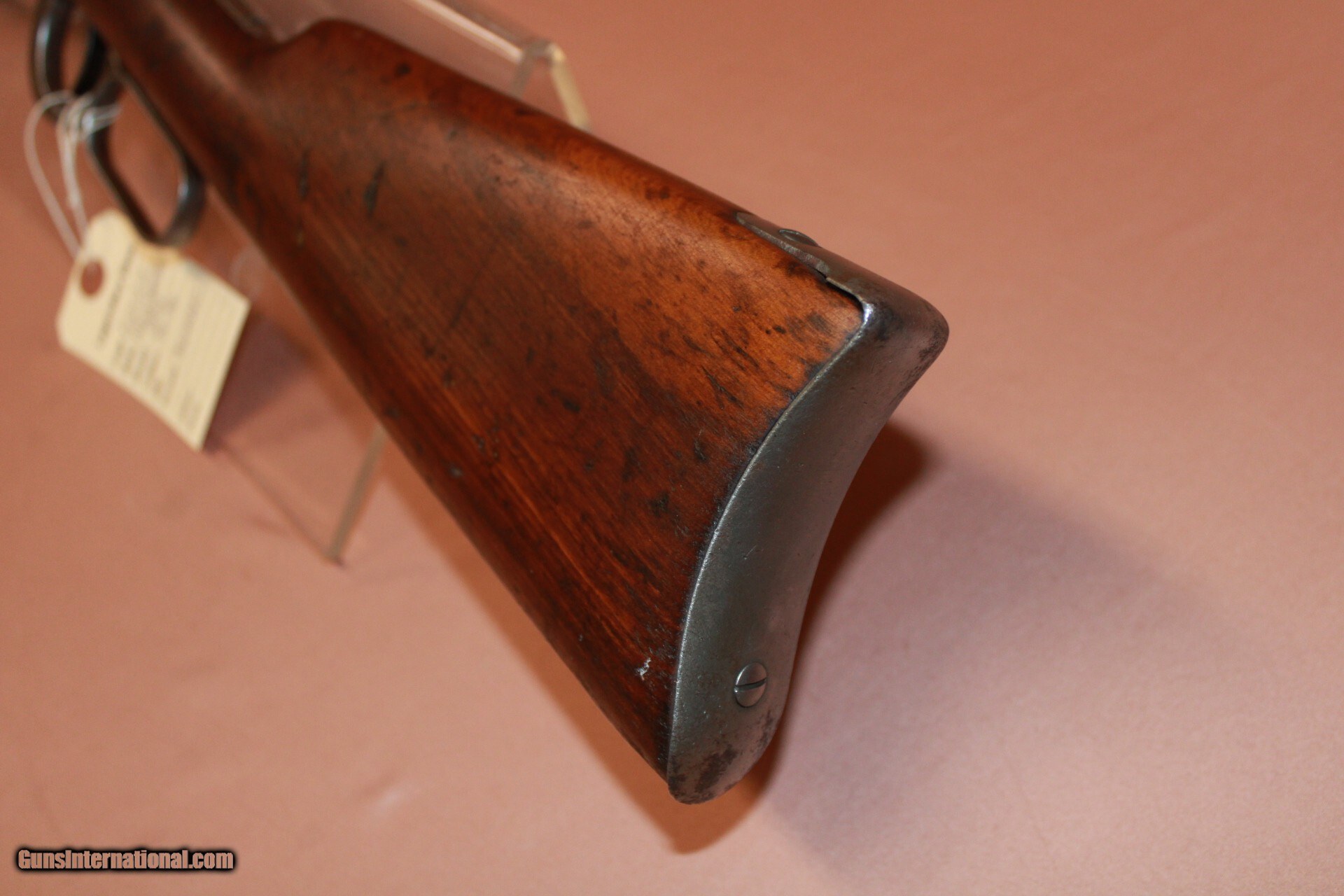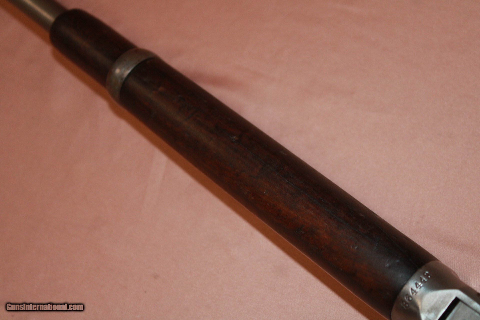 Winchester 1894 in 30-30 with a 20" round barrel, good bore. Rifle has a rear aftermarkert sight, stock is cracked, no rust very nice patina to the metal. Made in 1919