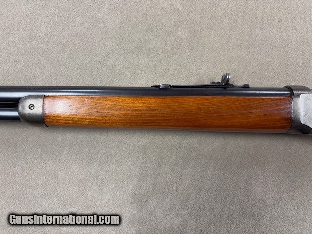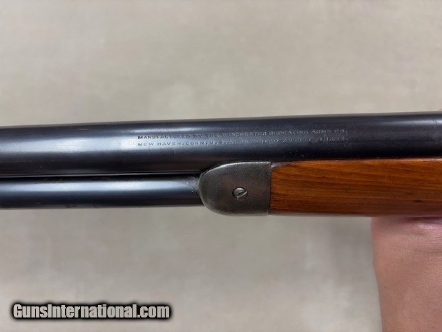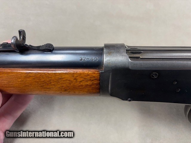 An excellent condition Winchester Model 1894 made in 1913 and in caliber .32-40 with an ecellent bright bore. This the standard 26 inch round barrel rifle, with a curved rifle buttplate and full magazine. Lots of blue on the barrel and magazine tube, not so on the receiver. Original iron sights are present. A delightful rifle worth much more....